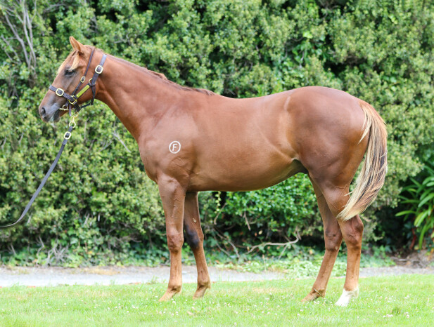 GOLD STANDARD (AUS) (Chestnut 2014-Stud 2018). 2 wins at 1250m, 1500m, ATC Stan Fox S., Gr.2. Sire of 49 rnrs, 23 wnrs, inc. SW Sheeza Belter (BRC JJ Atkins P., Gr.1), SP Gage Roads, Golden Queen and of Sisu Warrior, Kissed by Evie, Merrigold, Golden Hips, Everylittle Breeze, Goldie, Pinchbeck, Crown Crusher, Fear the Sting, Perfect Gold, Zephyrz Zoom, Laura's Gold, Hello Mary, Discovered Gold, Hadrian's Wall, Glorien, etc. 1st dam HEBDEN, by Rubick. Unraced. Half-sister to GRIANTE. This is her first foal. 2nd dam GRAND STRATEGY, by Strategic. Unraced. Half-sister to GRAND JOURNEY, PROLIFERATE, Good and Proper, More Beautiful (dam of KINLOCH). Dam of 9 foals, 6 to race, 5 winners, inc:- GRIANTE (Good Journey). 7 wins-3 in succession-1100m to 1600m, A$1,088,175, ATC Galaxy H., Gr.1, Wenona Girl H., Gr.3, MRC Sportingbet Series Final, Gr.3, Chase Hotel H., Le Pine Funerals P., Sportscover Insures VAFA P., 2d ATC Sapphire S., Gr.2, MRC How Now S., Gr.3, Ipswich TC Gai Waterhouse Classic, L, 3d MVRC William Reid S., Gr.1, Chandler Macleod S., L, 4th SAJC Robert Sangster S., Gr.1, MRC Geoffrey Bellmaine S., Gr.3. Dam of 2 winners- Metro Legend. 6 wins 1200m to 1550m, A$306,655, ATC Darley 2021 Roster H., TAB H., SAJC Thomas Farms H., 4th Oakbank RC Railway S., L. Grand Wish. 2 wins-1 at 2-at 1200m, MRC Ladbrokes Cash in 2YO H. Dam of- What You Wish For (Embellish). 3 wins-1 at 2-at 1300m, 1600m, NZ$124,540, to 2024-25, Hawkes Bay Thank You Resource 2YO S., Matamata RC Hastings to the Core H., 3d Waikato Guineas, Gr.2, 4th Waikato TR James & Annie Sarten Memorial S., Gr.2. Legal Mistress. Winner at 1400m in Aust. Dam of 3 winners- I Am Takingthelot. 3 wins at 1200m, 1350m, A$93,420, in 2023-24, BRC Membership P., Ipswich TC TIACS Foundation P., Great Northern H. GRAND PROSPECT, by Flying Spur. Raced twice. Sister to JOY OF FLIGHT (dam of LANDING). Dam of 12 foals, 10 to race, 8 winners, inc:- GRAND JOURNEY (Good Journey). 5 wins-3 in succession-1400m to 2400m, A$609,850, WATC Derby, Gr.1, Western Australian Oaks, Gr.3, WATC Natasha S., L, 2d WATC Ascot One Thousand Guineas. Grandam of- Kerman Rock (Snippetson). 5 wins 1300m to 2200m, A$262,422, to 2024-25, WATC Morley Growers Market H., Amelia Park H., Envirapest H., 2d WATC Belmont Guineas, L, 3d Western Australian Derby, Gr.2. PROLIFERATE (More Than Ready). 3 wins in succession 1400m to 1800m, A$166,150, VRC Fashion S., L, 2d MRC Autumn S., Gr.2, 4th SAJC Tokyo City Cup, L. Good and Proper (Shooting to Win). 5 wins at 1400m, 1600m, A$466,619, MRC VOBIS Gold Distaff, VRC Auckland Racing Club H., 3d Sale Cup, L. More Beautiful. 5 wins 1400m to 2000m, 3d ATC Instagram H. Dam of-