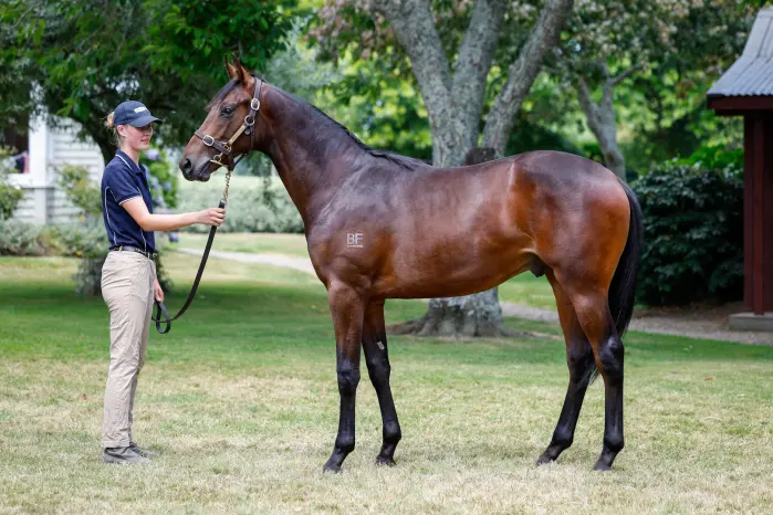 OCEAN PARK (NZ) (Bay 2008-Stud 2013). 8 wins from 1200m to 2050m, MVRC WS Cox P., Gr.1. Leading NZ Sire (Aust/NZ combined) in 2019-20. Sire of 491 rnrs, 302 wnrs, 21 SW, inc. SW Tofane (ATC All Aged S., Gr.1), Kolding, Kovalica, Ocean Billy, Oceanex, Star of the Seas, Fabric, Our Hail Mary, High Emocean, Dionysus, Another Dollar, Out of the Park, Ocean Beyond, Southern Lad, Seaway, Kai, Poser, Southern Ocean, etc. 1st dam LOLLA LEE LOU, by Darci Brahma. Unplaced. This is her fifth foal. Her fourth foal is a 2YO. Her third foal is an unraced 3YO. Dam of two foals to race, inc:- Noble Lee (g by Eminent). Placed to 2024-25. 2nd dam YOUNG AMERICAN, by Charnwood Forest. Placed at 3 in Aust. Half-sister to IMANANABAA, Ms Bowie, C'Est la Vie (dam of ZECORA). Dam of 8 foals, all raced, 7 winners, inc:- Hidden Value. 2 wins at 1400m, HKJC Tamar H., Being Famous H., 2d HKJC Chamber of Commerce Cup, Wangfujing H., 3d HKJC Kau to Shan H. Little Wise Man. Winner at 1400m, HKJC Faculties of Architecture & Engineering H., 2d HKJC Jardine's Lookout H., Jinbao Street H. Forever Joyful. 2 wins at 1150m, 1200m, ARC LA O'Sullivan Shield H., 2d Waikato RC The Meat Warehouse H. Vuela. Winner at 1200m. Dam of 2 winners- Our Absolute (Niagara). Winner at 1100m in 2023-24, 2d Waikato TR Cambridge Breeders' S., Gr.3, Dynavite H. On Excel Star. Winner at 1650m, HKJC O'Brien H., 2d HKJC Cheung Shun H., 3d HKJC Rumsey H., Kose Cosmeport H., Fenwick H. 3rd dam IMAN, by Zemindar. Unraced. Three-quarter-sister to Florins (dam of SCENIC SILVER), half-sister to BORN PRICELESS, Rich Inheritance, Rich Haul (dam of THE HEAVYWEIGHT, BORN WESTERN, HAPPY STRIKE - LISBOA STAND (Mac.), ZEDRICH), Rich Resource (dam of TRIGGER EXPRESS). Dam of 11 foals, 10 to race, 8 winners, inc:- IMANANABAA (Anabaa). 5 wins-1 at 2-at 1200m, 1400m, NZ$326,125, A$57,250, ARC Railway H., Gr.1, Soliloquy S., L, Waikato RC James & Annie Sarten Memorial S., L, 2d Avondale JC Concorde H., Gr.2, Counties RC Auckland Thoroughbred Breeders' S., Gr.2, ARC Darley P., Gr.3, AJC Aspiration H., L, Counties Bowl, L, 3d ARC Railway H., Gr.1, STC Queen of the Turf S., Gr.1, Waikato RC Cal Isuzu S., Gr.2, Counties Challenge S., L, 4th ARC Rich Hill Mile, Gr.2. Producer. Ms Bowie (Anabaa). 4 wins-2 at 2-1000m to 1550m, A$156,690, AJC Energy Australia H., Mosman 2YO H., STC PJ Gallagher's Irish Pubs H., 2d STC Tea Rose S., Gr.2, AJC Leda Holdings H., STC Merrylands RSL Club H., 4th AJC Flight S., Gr.1, Gosford Guineas, L. Dam of 4 winners- Lakers Bay (Magic Albert). 5 wins 1400m to 1750m, CJC Win a Ford at Riccarton Park H., 2d MRC Alannah & Madeline Foundation H., 3d Otago RC White Robe Lodge H., Gr.3, 4th CJC Great Easter S., L. Producer. C'Est la Vie. 2 wins at 1100m, 1200m, 3d Waikato RC Rich Hill Stud H. Set 1100m track record at Rotorua. Dam of 2 winners- ZECORA (Power). 4 wins 970m to 1400m, NZ$170,895, to 2023-24, Waikato TR J Swap Sprint H., Gr.3, Matamata RC NZB Pearl Series H. |