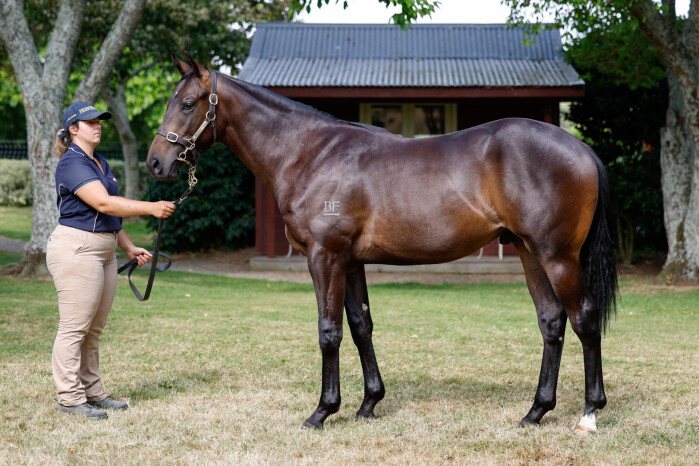 SHOCKING (AUS) (Bay 2005-Stud 2011). 7 wins from 1300m to 3200m, VRC Melbourne Cup, Gr.1. Sire of 386 rnrs, 219 wnrs, 24 SW, inc. SW I'm Thunderstruck (MRC Toorak H., Gr.1), Defibrillate, Fanatic, El Vencedor, Hezashocka, Self Obsession, Surprise Baby, Chocante, Nerve Not Verve, The Hassler - Circuit Hassler (H.K.), Here to Shock, Dragon Storm, Camino Rocoso, Ticket to Ride, Lincoln King, Elephant, Soleseifei, etc. 1st dam STAND FIRM, by Perfectly Ready. 3 wins at 1200m, 1400m, 2d Waikato RC NZI H. Half-sister to SECRET SPIRIT, Sword in Stone - Columbus County (H.K.). This is her fourth foal. Her third foal is a 2YO. Her second foal is an unraced 3YO. Dam of one foal to race- Samid - Winning Wing (H.K.) (g by Preferment). Winner at only start at 1000m in 2023-24 in Aust. 2nd dam SPIRIT OF SANDFORD, by Kilimanjaro. Winner at 2000m. Sister to Bakup. Dam of 7 named foals, 6 to race, 3 winners, inc:- SECRET SPIRIT (Swiss Ace). 4 wins in succession-2 at 2-at 1200m, 1400m, NZ$151,150, ARC Bonecrusher S., Gr.3, Great Northern Foal S., L, Levin RC Ryder S., L, Wanganui JC O'Leary S., L, 3d ARC Soliloquy S., L. Sword in Stone - Columbus County (H.K.) (Redwood). 3 wins at 1600m, 1800m, NZ$17,900, HK$13,792,100, HKJC Reunification Cup, Time Warp H., 2d HKJC Champions & Chater Cup, Gr.1, 3d HKJC Hong Kong Vase, Gr.1, Waikato Guineas, Gr.2, HKJC Jockey Club Cup, Gr.2, 4th HKJC Hong Kong Vase, Gr.1, Sha Tin Trophy, Gr.2, Jockey Club Cup, Gr.2, Queen Mother Memorial Cup, Gr.3, Premier P., Gr.3-twice. DASTARIA, by Stark South. 4 wins at 2000m, 2100m, Waikato RC Ethereal H., Avondale JC Dunstan Stayers' Qualifer, 4th ARC HIH Insurance Classic, L. Half-sister to WALTERMITTY. Dam of 7 foals, 6 to race, 5 winners, inc:- Bakup (Kilimanjaro). 6 wins 2000m to 2500m, NZ$143,750, A$19,365, ARC Auckland Co-Op Taxis H., Hawkes Bay Bluewater Hotel H., 2d CJC Metropolitan Trophy, Gr.3, 3d Manawatu Cup, Gr.3, 4th VRC St Leger, L. Bedford. 10 wins 1600m to 3500m, A$565,605, MRC Ladbrokes Multiverse H., Mal Seccull H., 4th MRC Mornington Cup Prelude, L, BRC Tails S., L. Plymouth Road. 8 wins 1200m to 2400m, A$298,715, ATC Evergreen Turf H. Sheiswhatsheis. 4 wins 1600m to 2200m, 3d Westland RC West Coast Miss Scenicland S., BOP RC Creedence Revisited S. Dam of- Miss Balvenie. 4 wins at 1000m, 1100m, NZ$925, A$83,915, to 2023-24, MRC Ladbroke it H. DARIA'S FUN, by Go Fun. Champion stayer in NZ in 1988. 12 wins 1400m to 3200m, NZ$511,765, A$14,600, Wellington Cup, Gr.1, (3200m course record), ARC Queen Elizabeth H., Gr.3, WRC Trentham S., Gr.3, Counties Cup, L, ARC Epsom Breeders' H., Avondale JC New Zealand Sires' Championship S., 2d Auckland Cup, Gr.1, 3d ARC Queen Elizabeth H., Gr.3, Alison S., L. Dam of 7 foals, 5 to race, all winners- WALTERMITTY (Grosvenor). 5 wins 1600m to 3200m, NZ$163,035, A$10,500, New Zealand Cup, Gr.2, ARC Mitchelson Cup, L. |