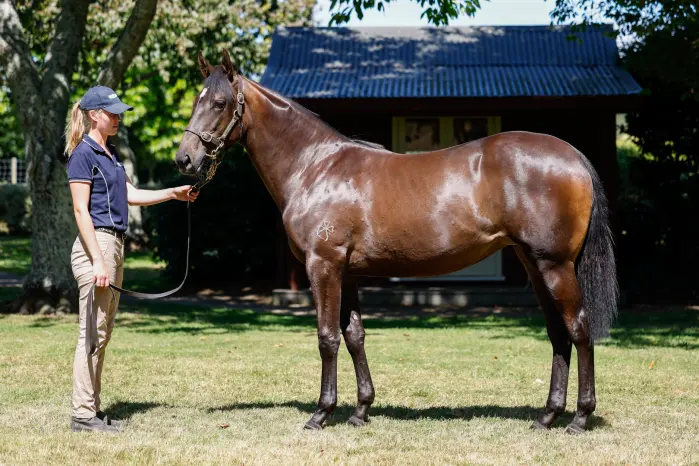 WAR DECREE (USA) (Bay 2014-Stud 2018). 3 wins-2 at 2, Goodwood Vintage S., Gr.2. Sire of 93 rnrs, 46 wnrs, inc. SW Warmonger (BRC Queensland Derby, Gr.1), Val di Zoldo, Luvnwar, SP Third Decree, Hakadecree and of Opawa Jack, Turf War, Northern Decree, Spartan, Stolen Decree, Give Giggles, Miss Take, Enthusiastic - Sunnyvale (H.K.), Fighting Machine, My Degree, Greenwich, Judy's Great, Artillery, etc. 1st dam Beneficial, by Highly Recommended. 5 wins 1200m to 1800m, NZ$195,071, CJC Karaka 2022 Book 2 Now Selling H., 2d CJC Canterbury Breeders S., Gr.3, Easter Cup, L, Inglewood S., L, Timaru Cup, L, CJC Angus Meats Great Autumn H., Woodbine Blue Chip Chris Johnson H., Selwyn Rakaia Vet Services H., Pryde's Easifeed H., Otago RC White Robe Lodge H., Positive Signs H., 3d CJC South Island Thoroughbred Breeders S., Gr.3, Coupland's Bakeries Mile Trial, Coupland's Bakeries Mile Trial H., Hororata Gold Cup, Otago RC Speight's H., Kumara RC Kumara Gold Nuggets H., Gore RC NZB Insurance Pearl Series H., CJC Racecourse Hotel and Motor Lodge H., 4th CJC Canterbury Gold Cup, Gr.3-twice, Otago RC White Robe Lodge S., Gr.3. This is her first foal. 2nd dam LA GENEROSE, by Generous. 7 wins 1400m to 2200m, Avondale JC Auckland Co-Op Taxis H., Video Ezy New Zealand H., 2d CJC Amberley Summer Cup, Peninsular Resort H. Dam of 6 named foals, 4 to race, all winners, inc:- Beneficial (Highly Recommended). 5 wins. See above. Lilly. Winner at 1300m in 2024-25. La Conseille. Winner at 1200m. 3rd dam FONDAROSE, by Conquistarose. 2 wins at 1400m, Avondale JC Mason Pies H., Counties RC Counties Trainers Challenge, 3d ARC Morgan Furniture Progressive H., Avondale JC Westward Ho TAB H., Counties RC Bluebird Foods Championship H. Dam of 6 foals, all raced, 4 winners, inc:- La Generose. 7 wins. See above. 4th dam FONDERELLA, by Markella. Winner at 2 at 850m, 2d CJC Jackpot Promotions S. Half-sister to Golden Anchor, Fondessa. Dam of 2 foals, both winners- 5th dam FONDELLA, by Mussorgsky. Winner at 1600m, 4th Wanganui Guineas, L. Half-sister to Village Oak. Dam of 6 named foals, 4 to race, 3 winners, inc:- Golden Anchor (Sea Anchor). 5 wins 1400m to 2000m, Waikouaiti RC Blue Riband S., 2d Otago RC Noble Bijou H., 3d Southland Guineas, L, 4th New Zealand St Leger, Gr.2, Otago RC Dunedin Gold Cup, Gr.3. Fondessa (Sharivari). 3 wins-2 at 2-at 850m, 1200m, 2d Otago RC Palisade Improvers' H., Jim Brunton H., 3d CJC Canterbury Belle S., L. Producer. |
