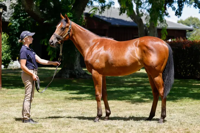 VANBRUGH (AUS) (Bay 2012-Stud 2017). 5 wins-1 at 2, ATC Spring Champion S., Gr.1. Sire of 45 rnrs, 24 wnrs, inc. SW Mustang Valley (Hawkes Bay Livamol Classic, Gr.1), Wild Night, Sheez Dominant and of Miss Balvenie, Don't Look Ethel, Van Diesel, Vanbrugh Castle, Beer Palace, Vantaana, Gingerbread, The Big Heist, Vandelay Style, Truth or Dare, Vanish, Bucks Night, Silkdegrees, Florin, Elle McFearsome, etc. 1st dam CHAZALLO, by Hallowed Crown. Unraced. This is her second foal. Her first foal is a 2YO. 2nd dam CHAZELLE, by High Chaparral. 2 wins at 2100m, 2200m, 2d BOP RC Bethlehem Motor Inn H. Sister to SHOW THE WORLD, blood-sister to Utopia (dam of VOLATILE MIX). Dam of 3 foals, 1 to race, 1 winner, inc:- Exzello. 3 wins at 1400m, 2350m to 2024-25 in NZ and Aust. 3rd dam BAZELLE, by Zabeel. Champion Older Female Stayer in NZ in 2004-05. 7 wins 1400m to 3200m, NZ$358,450, A$90,200, ARC Zabeel Classic, Gr.1, Auckland Cup, Gr.1, Nathans Memorial H., Dunstan Stayers' Championship Qualifier, 2d Moonee Valley Gold Cup, Gr.2, 4th Cambridge JC Travis S., Gr.2. Half-sister to Brighton Dolly, Barbie's Game (dam of LISA'S GAME). Dam of 7 foals, all raced, 6 winners, inc:- SHOW THE WORLD (High Chaparral). 6 wins 1600m to 2200m, NZ$229,370, A$3,250, ARC Championship S., Gr.2, Matamata RC Kaimai S., L, Waikato RC Hamilton Cup, Manawatu RC Marley H., Waikato RC Christmas at the Races H., 2d ARC Champion Stakes Prelude, L, Avondale JC Five Star Horse Transport H., 3d ARC City of Auckland Cup, Gr.3, WRC Trentham S., Gr.3, 4th Auckland Cup, Gr.1. 4th dam SHOW GAMES, by Showdown. Raced twice. Sister to TOY SHOW, Badine, Toy Mistress (dam of BRIGHT KITE), half-sister to Barbero. Dam of 12 named foals, 9 to race, 8 winners, inc:- BAZELLE (Zabeel). 7 wins. See above. Brighton Dolly (Swooping). 3 wins 1500m to 2040m, A$105,975, MVRC Dallas H., Is Don Is Good H., 2d South Australian Oaks, Gr.1, VATC Steeves Lumley S., Chisholm H., 3d SAJC Laelia S., L. Producer. Joie de Vivre. 5 wins 1600m to 2500m, CJC Morrisons on Merrin H., 2d CJC Avon City Ford H., 4th Southland RC Invercargill Gold Cup, Gr.3. Dam of- Utopia (High Chaparral). 2 wins at 1600m, 2d Manawatu Classic, Gr.3. Dam of- VOLATILE MIX (Pentire). 3 wins 1600m to 2500m, A$453,750, South Australian Derby, Gr.1, 2d BRC Grand Prix S., Gr.3, 4th SAJC Chairman's S., Gr.3. Zenno Queen. Unraced. Dam of 4 winners- NEW YORK MINUTE (Iffraaj). 8 wins-1 at 2 -1100m to 1400m, NZ$217,535, Taranaki RC Opunake Cup, L, BOP RC Tauranga Classic, L, 2d Rotorua S., Gr.3, BOP RC Tauranga Classic, L. Barbie's Game. Winner at 2 at 1200m in Aust. Dam of 7 winners- LISA'S GAME (Umatilla). 4 wins 1422m to 2040m, A$432,400, Cranbourne Cup, L, 2d VATC Caulfield Cup, Gr.1, Sandown Cup, Gr.2, 3d SAJC Auraria S., Gr.3, 4th South Australian Oaks, Gr.1. Producer. |