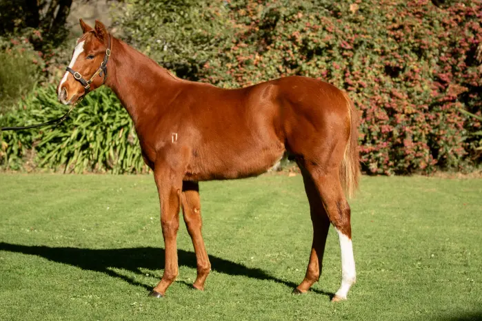 SANTOS (AUS) (Bay 2015-Stud 2019). 2 wins at 2 to 1200m, ATC Skyline S., Gr.2. Sire of 77 rnrs, 37 wnrs, inc. SW Ulanova (Auckland TR Sistema S., Gr.1), West of Dalby, Moorlands Miss, SP Platinum Attack and of Santastico, Victory Win, Prince of Santos, Saulok, Pele Princess, Sandual, Lucky Lily, Khutos, Grand Sage, Hangin' Around, Chop the Ice, Karakaroo, Minesite, Super Trooper, I Eff Oh, Cheap Gas, Frankfurt, etc. 1st dam BRAVISSIMO, by Showcasing. 2 wins at 1200m, 3d ARC Perpetual Pacer H. This is her third foal. Her second foal is a 2YO. Her first foal is an unraced 3YO. 2nd dam RHYTHM'S CHOICE, by Rhythm. Unraced. Dam of 6 foals, 5 to race, 2 winners, inc:- Metasequoia. 4 wins at 2100m, 2200m, 2d Otago RC Tony's Tyre Service H. 3rd dam TRISTRAM'S CHOICE, by Jetball. Unraced. Blood-sister to CELTIC TIGER - OPPOSING FORCE (Mal.). Dam of 6 foals, 5 to race, 2 winners, inc:- Knuckles. 2 wins at 1100m, 1500m, QTC Cleandomain H. 4th dam QUEEN'S CHOICE, by Sir Tristram. 2 wins-1 at 2-at 1200m, 2416m, SAJC Walter Brown S.H., L, Chenel Flowers H., 3d VATC Norman Robinson S., L, SAJC Morphettville Guineas, L. Sister to SOVEREIGN RED, GURNER'S LANE, TRICHELLE, Delia's Choice (dam of FOXWOOD, CELTIC TIGER - OPPOSING FORCE (Mal.)), three-quarter-sister to TRISTRAM'S GOLD, Sinjani (dam of FOORAM), half-sister to Dancer's Glory (dam of FUJI DANCER), Scarlet Robin (dam of ESTIMABLE). Dam of 7 named foals, 6 to race, 4 winners, inc:- Merlos. 8 wins 2000m to 4000m, 2d AJC Thommo's Variety H. 5th dam TAIONA, by Sovereign Edition. Winner at 1220m, 2d VATC Sweet Nell H., 3d VRC Isa H. 1981 (Joint) & 1983 NZ Broodmare of the Year. Half-sister to TRISTRAM'S GOLD. Dam of 12 foals, all raced, 9 winners, inc:- SOVEREIGN RED (Sir Tristram). 10 wins-1 at 2-1000m to 2500m, Victoria Derby, Gr.1, BATC Doomben Hundred Thousand, Gr.1. Sire. GURNER'S LANE (Sir Tristram). 7 wins-1 at 2-1400m to 3200m, VRC Melbourne Cup, Gr.1, VATC Caulfield Cup, Gr.1, AJC St Leger, Gr.2. TRICHELLE (Sir Tristram). 6 wins 1200m to 2200m, A$134,190, VATC Marlboro Cup, Gr.1, SAJC Spring S., Gr.2, Geelong RC Oaks Trial S., L. Delia's Choice. 4 wins 1575m to 2000m, 2d ARC Zabeel H. Dam of 6 winners- FOXWOOD (Centaine). 5 wins-1 at 2-1200m to 1600m, New Zealand Two Thousand Guineas, Gr.1, WRC Captain Cook S., Gr.1. Producer. Keepable. Unplaced. Grandam of- MR BRIGHTSIDE (Bullbars). 19 wins-6 in succession-1400m to 1630m, NZ$200, A$17,382,715, to 2024-25, ATC Doncaster H., Gr.1-twice. Her Dynasty. Unplaced. Grandam of- Missy Moo. 5 wins 1200m to 2050m, 4th Manawatu Breeders, Gr.3. Dam of- KA YING RISING (Shamexpress). 13 wins-12 in succession-at 1200m, 1400m, HK$60,973,200, to 2024-25, Hong Kong Sprint, Gr.1. |