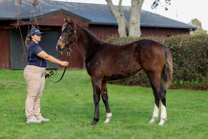 STAPHANOS (JPN) (Bay 2011-Stud 2019). 4 wins-1 at 2, Tokyo Saudi Arabia Royal Cup Fuji S., Gr.3. Sire of SW Pignan (Manawatu Sires Produce, Gr.1), SP Sassy Lass, The Entertainer, Movin Out, Basilinna, Medatsu, Just Kick and of Tsitsipas, Special Sakura, Turned Down, Tokyo Hot Night, Tokyo Fire, Lady Sass, The Green Keeper, Explosive Impact, Don Stefano, Tokyo Run, Blanche, Tokyo Star, Kovanos, Rishiri, etc. 1st dam CHARLTON PARK, by Tavistock. 2 wins at 1280m, 1400m, 2d Hawkesbury RC TAB Highway H. Half-sister to Pinot Grieve (dam of WHANGAEHU). This is her third foal. Her second foal is a yearling. Her first foal is a 2YO. 2nd dam MEMPHIS MINNIE, by Blues Traveller. 4 wins at 1200m, 1400m, Avondale JC New Zealand Bloodstock H., ARC Golf Today H., Avondale JC Carol's TAB Manurewa H., 2d Avondale JC Function Centre H., 3d WRC Central Forklifts H. Half-sister to Shinko Princess (dam of ALINKO PRINCE, THORN PRINCE), La Reine d'Or (dam of MY BENTLEY). Dam of 9 foals, 7 to race, 6 winners, inc:- Pinot Grieve. 4 wins 1200m to 1400m, Hawkes Bay Waspnet H. Dam of- WHANGAEHU (Proisir). 8 wins 1400m to 2400m, NZ$352,095, A$124,900, to 2024-25, WRC Trentham S., Gr.3, Wanganui Cup, L, ATC Agency Real Estate H., Furphy H., Manawatu RC Intowin.co.nz Join a Syndicate H., Andrea O'Donnell Property Brokers 3YO S., 2d ATC Bowermans H., Find Your Star at the Chase H., 3d Waikato TR Herbie Dyke S., Gr.1, Manawatu Cup, Gr.3, 4th Auckland TR New Zealand S., Gr.1. 3rd dam JUBILEE, by Nassipour. Raced 3 times. Half-sister to REGAL AFFAIR. Dam of 5 named foals, 4 to race, 2 winners, inc:- Shinko Princess. Placed. Dam of 6 winners- THORN PRINCE (Thorn Park). 9 wins-4 in succession-1400m to 2500m, Taumarunui Gold Cup, L, 2d Marton JC Metric Mile, Gr.3, Feilding JC Anzac H., L, Wanganui JC Challenge S., L, Feilding Gold Cup, L. ALINKO PRINCE (Alamosa). 6 wins-3 in succession-1400m to 2200m, NZ$186,887, Marton Cup, L, 2d Feilding Gold Cup, L-twice, 3d Auckland Cup, Gr.1, Wellington Cup, Gr.3, Manawatu Cup, Gr.3. La Reine d'Or. Unraced. Dam of- MY BENTLEY (I Conquer). 6 wins 1600m to 2200m, NZ$13,175, A$292,518, Ballarat Cup, L, 2d SAJC Penny Edition S., L. 4th dam ROYAL RELEASE, by Sovereign Edition. Winner at 1600m, 2d SAJC Approved H. Half-sister to DEESSE, Love Life (dam of MAGELLAN), Lady Loch (dam of (HE'S) BACK ON TRACK). Dam of 10 foals, 6 to race, 4 winners, inc:- REGAL AFFAIR (Vice Regal). 8 wins 1150m to 1400m, Clarence River JC Ramornie H., L, 3d BATC Tourist Minister's Cup, Gr.2. Grandam of- PHOENIX PARK (Royal Academy). 5 wins-2 at 2-at 1100m, 1200m, A$699,570, AJC TJ Smith S., Gr.2, STC Concorde S., Gr.3, 2d STC Theo Marks H., Gr.2, AJC Liverpool City Cup, Gr.3, Newcastle JC Spring S., Gr.3, 3d STC Todman Slipper Trial S., Gr.2. Interfere (Royal Academy). 3 wins-1 at 2-at 1100m, 3d STC Missile S., Gr.3. |