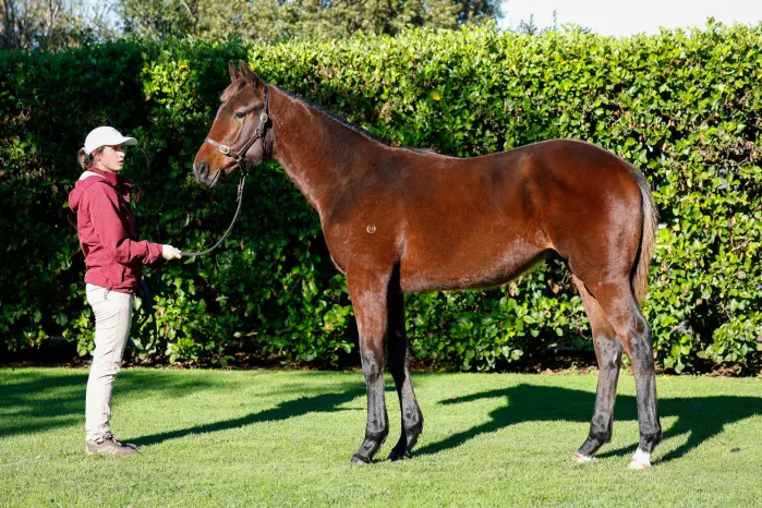 SATONO ALADDIN (JPN) (Bay 2011-Stud 2018). 8 wins-1 at 2, Tokyo Yasuda Kinen, Gr.1. Leading Sire of 2YOs in NZ in 2022-23. Sire of 346 rnrs, 192 wnrs, 11 SW, inc. SW Pennyweka (New Zealand Oaks, Gr.1), Firestorm, Too Sweet, Lantern Way, Tokyo Tycoon, Sacred Satono, Grand Impact, Lupo Solitario, Still Bangon, Raf Attack, Tumuch, SP Nishino Lavanda, Japanese Emperor, Welcome News, Lady Ballantine, etc. 1st dam TWO QUEENS, by Super Easy. Unraced. Half-sister to KATIE LEE, BANCHEE, Eclair Fantastic. This is her fifth living foal. Her fourth foal is a yearling. Her first three foals are unraced. 2nd dam MISS JESSIE JAY, by Spectacularphantom. 9 wins 1200m to 2000m, NZ$153,425, Egmont RC Fayette Park S., Gr.3, CJC Warstep S., L, Levin S.H., L, Manawatu RC CB Norwood 3YO H., Ashhurst Pohangina Cup, Cambridge JC Deputy Governor Trophy, Wanganui JC Prince Ferdinand H., Woodville-Pahiatua Cup, 2d Egmont RC Fayette Park S., Gr.3, 3d WRC Thompson H., Gr.3, Manawatu Classic, Gr.3, Manawatu Breeders' S., L, 4th Wairarapa Thoroughbred Breeders' S., L. 2009-10 NZ Broodmare of the Year. Half-sister to GEE I JANE, Chateau d'Yquem (dam of PHEARSON), Miss Krisdel (dam of QIJI EXPRESS - HAPPY QIJI (H.K.)), Miss Katella (dam of SAN BERNARDINO). Dam of 6 foals, 4 to race, all winners, inc:- KATIE LEE (Pins). Champion 3YO in NZ in 2009-10. 8 wins-2 at 2 and 3 in succession-1000m to 2000m, NZ$1,106,675, New Zealand Two Thousand Guineas, Gr.1, New Zealand One Thousand Guineas, Gr.1, ARC Eight Carat Classic, Gr.2, Waikato RC Sir Tristram Fillies Classic, Gr.2, ARC Eclipse S., Gr.3, Hawkes Bay Traderacks S., Gr.3, Waikato RC James & Annie Sarten Memorial S., L, Esker Lodge 2YO H., 2d ARC Royal S., Gr.2, Manawatu RC Eulogy S., Gr.3, Waikato RC Star Way S., L, 3d Hawkes Bay Gold Trail S., Gr.3, WRC Desert Gold S., Gr.3. Grandam of- PUBLIC ATTENTION (Written Tycoon). 2 wins-1 at 2-at 1200m, NZ$100,000, A$470,375, to 2024-25, ATC Eskimo Prince S., Gr.3, MRC Chairman's Club 2YO H., 2d MRC Caulfield Guineas Prelude, Gr.3, 3d ATC Arrowfield 3YO Sprint, Gr.2, 4th ATC Hobartville S., Gr.2. BANCHEE (Oratorio). Champion 2YO in NZ in 2009-10. 6 wins-3 at 2-1100m to 1600m, NZ$433,225, A$10,000, ARC Diamond S., Gr.1, Matamata Breeders' S., Gr.2, ARC New Zealand Bloodstock Insurance 3YO Mile, Cambridge Stud Yearling Draft 3YO H., 2d ARC Eight Carat Classic, Gr.2, Eclipse S., Gr.3, 3d ARC Karaka Million, RL, 4th Counties RC Auckland Thoroughbred Breeders' S., Gr.2. Grandam of- Mogwai. 3 wins to 1550m, A$176,375, to 2024-25, ATC Schweppes P. Eclair Fantastic (Spectatorial). 5 wins-3 in succession-at 1000m, 1200m, A$94,240, HK$138,000, M$771,500 in Aust. and Macau, MRC Harrolds Fashion P., 2d Macau Spring Trophy, L, 4th Hong Kong Macau Trophy, L. 3rd dam MISS DISTINCTION, by Bletchencore. Winner at 1200m. Dam of 14 named foals, 13 to race, 11 winners, inc:- GEE I JANE (Jahafil). Champion sprinter/miler in NZ in 2005-06. 6 wins at 1200m, NZ$272,500, A$564,550, BTC Cup, Gr.1, WRC Telegraph H., Gr.1. |