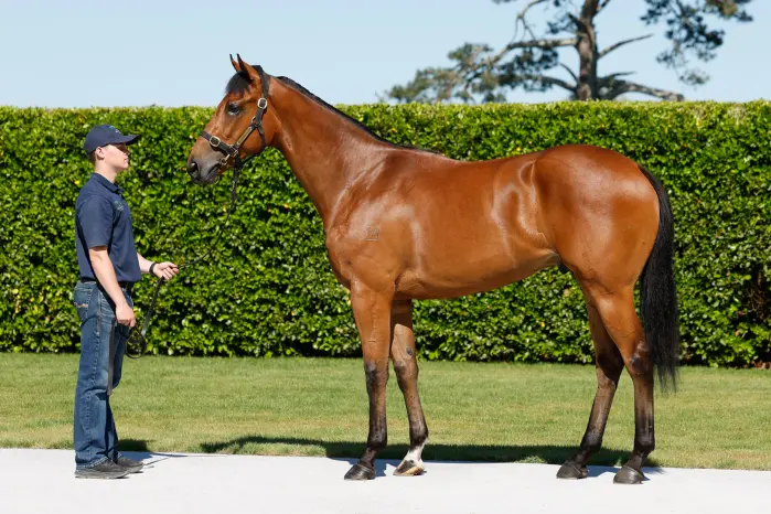 TURN ME LOOSE (NZ) (Bay 2011-Stud 2017). 7 wins-1 at 2, VRC Emirates S., Gr.1. Sire of 223 rnrs, 110 wnrs, inc. SW Lickety Split (Auckland TR Sistema S., Gr.1), Loosespender - Silver King (H.K), Prix de Turn, Wessex, Alabama Gold, Loose Sally, Turn the Ace, Ancient Girl, SP It's Business Time, Electron, Smooth Operator, Verbek, Bond Street Beau, Kia Ora Jewel, Ziggy Stardust and of A Mandarin, Liberami, Bifrost, etc. 1st dam LILIKOI, by Charm Spirit. 3 wins 1200m to 1600m, Manawatu RC Eulogy S., Gr.3, 3d ARC Royal S., Gr.2. This is her second foal. Her first foal is an unraced 3YO. 2nd dam BARBADINE, by Giant's Causeway. 3 wins 1900m to 2300m in Ireland and NZ, 2d Waikato RC Nottingham Castle Hotel H. Half-sister to REQUINTO, Independence Day, L'Explora (dam of TAZARA), Compelling (dam of LAST KINGDOM), Little Fastnet (dam of LITTLE BALLERINA), Filia (dam of DETERMINED KINGDOM). Dam of 8 named foals, 7 to race, 3 winners, inc:- LILIKOI (Charm Spirit). 3 wins. See above. Badea. 2 wins at 1200m, 1600m, 3d Whangarei RC Northland Business Systems H. Dam of- Vega for Luck (Lucky Vega). Winner at 2 at 950m, NZ$220,450, in 2024-25, 2d Auckland TR Karaka 2YO Million, RL, 3d Counties Challenge S., L. 3rd dam DAMSON, by Entrepreneur. Champion 2YO Filly in Ireland in 2004. Joint Champion 2YO Filly in GB in 2004. 4 wins in succession at 2 at 5f, 6f, £61,577, €246,916, Curragh Phoenix S., Gr.1, Royal Ascot Queen Mary S., Gr.2, Naas Swordlestown Stud Sprint S., L, 3d Newmarket Cheveley Park S., Gr.1. Half-sister to GEMINIANI. Dam of 15 foals, 12 to race, 10 winners, inc:- REQUINTO (Dansili). 4 wins at 2 at 5f, Doncaster Flying Childers S., Gr.2, Goodwood Molecomb S., Gr.3, Tipperary S., L. Sire. Independence Day (Dansili). 4 wins-1 at 2-5f to 6f, 2d Curragh S., Gr.3, Tipperary S., L. L'Explora. Winner at 6f in GB. Dam of 2 winners- TAZARA (Blue Point). 2 wins at 1100m, 1200m in 2024, Chantilly Prix de Bonneval, L, Deauville Prix de Gruchy, 2d Chantilly Prix de Seine-et-Oise, Gr.3, Chelmsford City Chelmer S., L, Deauville Prix La Bamba. Compelling. Winner at 7¼f in Ireland. Dam of 3 winners- LAST KINGDOM (Frankel). 5 wins-3 in succession-1600m to 1800m, €111,910, A$5,100, HK$2,830,150, Maisons-Laffitte Prix Daphnis, Gr.3. Mondelice. Unraced. Dam of 3 winners- DUBAI HONOUR (Pride of Dubai). Champion older Horse in France (Long) in 2024. 9 wins-1 at 2- 1643m to 2400m, to 2024-25, ATC Queen Elizabeth S., Gr.1, Tancred S., Gr.1, Ranvet S., Gr.1, Grand Prix de Saint-Cloud, Gr.1, Deauville Prix Guillaume d'Ornano, Gr.2. Little Fastnet. Placed at 2, 3d Leopardstown Irish Stallion Farms 2YO Fillies S. Dam of 6 winners- LITTLE BALLERINA (Vercingetorix). 3 wins at 2 at 1160m, 1200m, R1,183,500, Turffontein South African Fillies Nursery, Gr.2. |