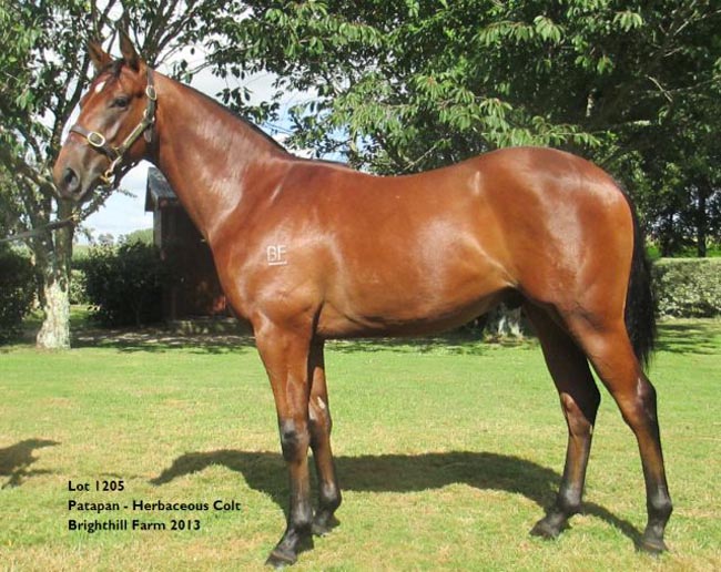 1st dam HERBACEOUS, by Lord Ballina. Winner at 1400m. Half-sister to POMPEII CHIEF. This is her tenth foal. Her ninth foal is a 2YO. Dam of six foals to race, four winners, inc:- BANCHIERE - NEW KUALA DIPANG(Mal.) (g. by Faltaat). 6 wins from 1200m to 2200m, NZ$64,100, 939,985Rgt. in NZ and Malaysia, Marton JC Savabeel 1600, L, Penang TC Yang di Pertua Negeri Gold Cup, L, CJC Millennium Hotel & Resorts H., Perak TC Class 1&2 H., 2d Penang TC Dr Lim Ah Soo Memorial Trophy, 3d WRC Windsor Park Stud Whyte H., Perak TC Class 1 H.-twice, Selangor TC Dato Sir Clough Thuraisingam Memorial Trophy, WRC Smooth as Ford Focus H. Our Court(g. by Pompeii Court). 10 wins from 1000m to 2100m, A$234,500, VRC Even Stevens H., Konica H., MRC Oppressor H., Plato H., Bendigo JC Thomas Jewellers H., 2d MRC Norman Robinson S., Gr.2, Palfresco H., MVRC Visy Closed Loop H., MRC Hyperno H., 3d MRC Orrong H., MVRC 13 Cabs P.H., MRC Abdul H., MVRC Mitsubishi Magna All Wheel Drive H., Wodonga Cup. Gallardo (g. by Monolith). 2 wins at 1300m in Macau. Erbe (f. by High Chaparral). Winner at 1400m in 2011-12. 2nd dam HOLLY HERB, by Clever Trick. Raced once. Sister to POLLY DANIELS. Dam of 8 named foals, all raced, 6 winners, inc:- POMPEII CHIEF(Pompeii Court). 4 wins to 1400m, A$111,080, WATC Fairetha S., L, Muchea H., Springtime H., Pearl & Dean P., 2d WATC Ruabon Sprint H., L, 4th WATC Railway S., Gr.1, Ruabon Sprint H., L. The Blues Sister. Winner at 1200m in Aust. Dam of- Kayeema Jay. 3 wins from 1050m to 1600m to 2011-12, SAJC Coffee Club H., CBUS 25th Anniversary P. Prinsen. 2 wins at 1550m, 1600m, 3d MVRC Truck Sales H., Nye at the Valley H. 3rd dam POLLCAM, by Pollux. 4 wins in Canada. Half-sister to LADY CORNWALL, PAR EXCELLANCE(dam of KHOZAAM), REGAL PATH, Austro, Dream Appeal (dam of SYDNEY'S DREAM, MARSKIN, SETTLERS COVE). Dam of 5 foals, all raced, inc:- POLLY DANIELS(Clever Trick). 3 wins-1 at 2-at 5f, 6f, Curragh Waterford Testimonial S., L, 2d Newmarket Cheveley Park S., Gr.1. Dam of- Himalayan(Mountain Cat). 4 wins at 2, Hollywood Allowance, 2d Turf Paradise Chandler H., L, 3d Santa Anita Santa Ynez S., Gr.2. Power of Polly(Green Dancer). 10 wins-2 at 2-in GB and Italy, 2d Premio Pisa, L, 3d Milan Premio Giuseppe de Montel, L. Delta Flirt. Placed at 2 in U.S.A. Grandam of- Peek a Boo Sara(Great Gladiator). 2 wins at 7f, Woodbine Allowance, 2d Woodbine Victoriana S., L. |