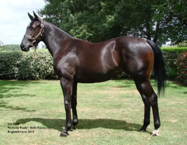 1st dam BELLA RUSSIA, by Ustinov. 2 wins at 2100m, 2400m, WRC Keep the Peace H. This is her first foal. 2nd dam TINTINNABULATION, by Sir Tristram. Unplaced. Half-sister to BELLE DU JOUR, Slav Defence, Elle Duccio (dam of PERFECTLY READY). Dam of 10 named foals, 9 to race, 7 winners, inc:- Speed at Will. Winner at 1650m, HKJC San Po Kong H., 3d HKJC Lau Shui Heung H. Monte Drift. 7 wins to 1400m, 2d AJC Paddock H., 3d AJC Digger's Restaurant H., Mounties H., STC Westpac Life Saver Rescue Helicopter P. Ring a Ding Ding. Winner at 1400m, 2d AJC Cabramatta Inn H., 3d AJC Nina Ricci H., Lilyfield Printing H. 3rd dam DELIGHTFUL BELLE, by Balmerino. 10 wins-2 at 2-from 900m to 1600m, NZ$3,770, A$132,930, VATC CF Orr S., Gr.2, Memsie S., Gr.2, Thoroughbred Club S., Gr.3, Tranquil Star S., Gr.3, MVRC Carlton Draught S., L, 2d VATC Sandown Guineas, Gr.2, 4th VATC Elders Mile H., Gr.1. Dam of 14 foals, 13 to race, 10 winners, inc:- BELLE DU JOUR(Dehere). Champion 2YO Filly in Australia in 1999-2000. Champion Older Female Sprinter in Ireland in 2003. 9 wins-4 at 2-to 1300m, â¬17,465, A$2,997,830, 368,000Dhs, STC Golden Slipper S., Gr.1, VRC Newmarket H., Gr.1, Emirates Classic S., Gr.2, STC Reisling Slipper Trial S., Gr.2, AJC Kindergarten S., Gr.3, VRC Gilgai S., Gr.3, 2d AJC Expressway S., Gr.2, Cork Ballyogan S., Gr.3, GCTC Magic Millions 2YO Classic S., RL, 3d STC Coolmore Classic, Gr.1, AJC Light Fingers S., Gr.2, VRC Emirates Classic S., Gr.2, STC Queen of the Turf S., Gr.2, Theo Marks H., Gr.2, MRC Kevin Heffernan S., L, 4th Nad al Sheba Dubai Golden Shaheen S., Gr.1, Curragh Greenlands S., Gr.3. Slav Defence(Danehill). 3 wins to 1300m in Aust. and Malaysia, SelangorTC Class 1 H., STC Eugene H., Kogarah H., 2d Newcastle JC Spring S., L. Belzero. 3 wins to 1500m, BTC Hahn Premium H. Dam of- Below Zero - Above All(H.K.) (Dehere). 3 wins-1 at 2-at 1300m, 1600m, HKJC Dr G H., Ho Pui H., 3d VRC Sires' Produce S., Gr.2. Ma Belle Cherie. 3 wins to 1350m, SAJC Evesham Gold Trophy H. Dam of- Rokuichi Smile(Kurofune). 2 wins-1 at 2-at 1000m, 1200m, 3d Monbetsu Edelweiss Sho, L, 4th Sonoda Hyogo Junior Grand Prix, L. Golden Award. 2 wins at 2, QTC Jameson's Irish Whiskey H. Elle Duccio. Winner at 1000m in Aust. Dam of- PERFECTLY READY(More Than Ready). 4 wins-2 at 2-to 1400m, A$685,650, SAJC Goodwood H., Gr.1, MRC Moonga S., Gr.3, Blue Diamond Prelude (c&g), Gr.3, 2d MVRC Manikato S., Gr.1. Sire. Duccio(More Than Ready). Winner at 1550m in 2014-15, 2d ATC Dulcify H., L. |