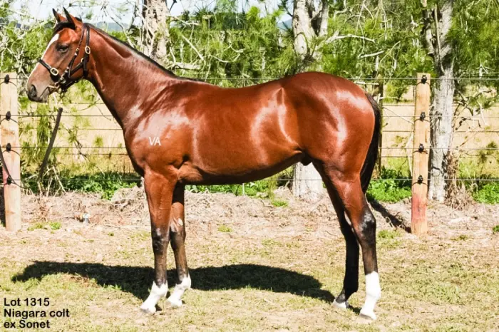 NIAGARA (AUS) (Bay 2008-Stud 2013). 2 wins at 1500m, 1550m, A$238,580, ATC Ajax S., Gr.2, Teachers Eyecare H., 2d MRC Sandown Guineas, Gr.2, ATC Eskimo Prince H., L, 3d MRC Norman Robinson S., Gr.3. Out of half-sister to SW Murjana and to the dam of SW Gathering (WATC Railway S., Gr.1). Related to SW Redouteýs Choice, SW Manhattan Rain, SW Umatilla, etc. His oldest progeny are 2YOs. 1st dam SONET, by Gold Brose. Raced once. This is her eleventh foal. Her tenth foal is a 2YO. Dam of eight foals to race, five winners, inc:- ZONZA(f. by Zabeel). 5 wins from 1400m to 2000m, NZ$79,800, A$111,750, MRC Ladies Day Vase, Gr.3, ARC Celebrating Habibi Mile H., Waikato RC Valachi Downs H., Hawkes Bay Tumu ITM Metric Mile H., 2d ARC Champion Stakes Prelude, L, ATC Lord Mayor's Cup, L, 4th Hawkes Bay Spring Classic, Gr.1, BOP RC Japan-New Zealand International Trophy, Gr.2, ARC Westbury Classic, Gr.3. Our Shakira(f. by Cullen). 2 wins-1 at 2-at 1000m, 1200m, 3d CJC Canterbury Belle S., L, Middle Park P. Dam of- Emilio. 2 wins at 1400m, 1600m to 2015-16, 2d Southland RC Sheet Metalcraft H., 3d Otago RC Speargrass Inn H. Maranello. 2 wins at 1200m, 1400m, 2d Taranaki RC Frederics Restaurant & Bar H., 3d Levin RC Colin Chrystall Memorial H. Burwood. 2 wins at 1200m, 1600m to 2016-17. Lucky Selection (g. by Stravinsky). Winner at 1000m, HKJC Swaine Cup. Materazzi (g. by Faltaat). Winner at 1400m, 3d QTC Valentines Day H. Presenting Win (g. by Starcraft). Winner at 1200m in 2016, Singapore TC Initiation P. Sonobella (f. by Starcraft). Placed at 3. Voncini (g. by Zabeel). Placed. 2nd dam LORELEI'S SONG, by Danehill. 2 wins at 1550m, STC Punchbowl H., Hurlstone Park H., 2d STC Campbellfield H., 3d AJC Winooka H. Half-sister to Staraway (dam of EUTECTIC). Dam of 8 foals, 5 to race, 4 winners, inc:- Cosabella. 4 wins from 1150m to 1600m, Whangarei RC BBS Timbers H., Waikato RC Empire Hotel Stratford H., 2d ARC Stella Artois H. 3rd dam TRAJANA, by Troy. Winner at 2000m in France. Half-sister to COMTESSE DE LOIR(dam of HERON COVE), DELANEIGE, FIRYAL(dam of FIRYAL PURSUIT - CHEERS HONG KONG(H.K.)), ZEIN, Santa Quilla (dam of SILVER SUPREME, PASADOBLE). Dam of 9 named foals, all raced, 8 winners, inc:- Our Diver Dan. 5 wins at 1600m, 1800m, WATC Rock Drill H. Dare to Win. 4 wins from 1600m to 2800m, MVRC Night Racing Series H. Trobis. 4 wins-2 at 2-from 1100m to 1600m, HKJC Beas River H., SAJC Tolhurst 2YO H., Balthasar 2YO H., 4th VATC Mercedes-Benz S., L. Staraway. Unplaced. Dam of- EUTECTIC(Poliuto). 6 wins from 1200m to 1600m, A$189,830, WATC Easter S., Gr.3, Jackson's Restaurant H., Clear Mak P., Henry Walker Eltin H., 2d WATC Belmont Guineas, L, TJ Smith Trophy, L, 3d Western Australian Guineas, Gr.2, WATC Fairetha S., L, Australia Day S., L. |