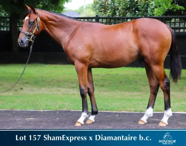 SHAMEXPRESS (NZ) (Bay 2009-Stud 2014). 3 wins-1 at 2-at 1000m, 1200m, A$1,150,475, VRC Newmarket H., Gr.1, Summer Heroes Raceday 2YO P., 2d VRC Sprint Classic, Gr.1, Lightning S., Gr.1, 3d VRC Coolmore Stud S., Gr.1, MRC HDF McNeil S., Gr.3, 4th ATC All Aged S., Gr.1, VRC Newmarket H., Gr.1. Out of a half-sister to SW OýReilly Rose. Related to SW Affinity (VATC Caulfield Cup, Gr.1). His oldest progeny are 2YOs. 1st dam DIAMANTAIRE, by Montjeu. Placed. Half-sister to PHILIDOR. This is her eighth foal. Her seventh foal is a 2YO. Dam of five foals to race, three winners, inc:- THE CENTENARY(f. by Mastercraftsman). 6 wins from 1800m to 2600m, R746,250, Turffontein Yellowwood H., Gr.3, Spook Express H., L, Vaal Pinnacle S., Turffontein Racing It's a Rush H.-twice, 2d Turffontein Gerald Rosenberg S., Gr.2, Greyville Delta Air Lines H., Gr.3, 4th Greyville East Coast H., L. Jagersfontein (f. by Volksraad). 4 wins at 2100m, 2200m, ARC Celebrating Rock Diva H., Rich Hill Yearlings at Karaka H., Te Aroha JC First Credit Union H., 2d ARC Insphire H., Network Visuals H. Artemis (f. by Thorn Park). Winner at 1600m. 2nd dam LA BRILLANTE, by Sir Tristram. Unraced. Sister to KAAPSTAD, Nine Carat (dam of COURT OF JEWELS), three-quarter-sister to OCTAGONAL, MOUAWAD, TRISTALOVE(dam of VIKING RULER, KEMPINSKY, LOVETRISTA, DIAMOND LIKE), ANTWERP(dam of VISCOUNT, HELSINBORG), half-sister to DIAMOND LOVER(dam of DON EDUARDO, PERUZZI), MARQUISE(dam of SHOWER OF ROSES), Cotehele House (dam of DANEWIN, COMMANDS). Dam of 10 named foals, 9 to race, 5 winners, inc:- PHILIDOR(Chief's Crown). 3 wins from 2100m to 2400m, A$96,490, City Tattersall's Club Cup, L, 2400m-in track record time, BTC Courier Mail H. I'm Blessed. Winner at 900m in Aust. Dam of- Awakening(Danewin). 6 wins to 2050m, 3d WATC Aquanita S., L. 3rd dam EIGHT CARAT, by Pieces of Eight. Unplaced. Half-sister to HABIBTI, KNESSET, Great Klaire. Dam of 10 foals, 7 to race, 6 winners, inc:- OCTAGONAL(Zabeel). 1996 Aust. Horse of the Year. 14 wins-3 at 2-from 1100m to 2400m, A$5,892,231, MVRC WS Cox P., Gr.1. Sire. MARQUISE(Gold and Ivory). 9 wins from 1200m to 2000m, WRC Captain Cook S., Gr.1, SAJC Sedgwick Classic S., Gr.2. Dam of- SHOWER OF ROSES(Zabeel). 5 wins from 1200m to 2000m, A$621,010, STC Arrowfield Stud S., Gr.1, AJC Craven P., Gr.3. DIAMOND LOVER(Sticks and Stones). 8 wins to 1400m, NZ$102,225, ARC Railway H., Gr.1, Counties RC Ramarama Country Inn Sprint H. Dam of- DON EDUARDO(Zabeel). Top of the 2001-02 Australasian 3YOClassification (long). 5 wins from 1300m to 2400m, Australian Derby, Gr.1. TRISTALOVE(Sir Tristram). 11 wins-4 at 2, AJC Sires' Produce S., Gr.1. MOUAWAD(Zabeel). Head of The 1996-97 Australasian 3YO Classification. 7 wins from 1200m to 1600m, A$775,456, VRC Australian Guineas, Gr.1. KAAPSTAD(Sir Tristram). 7 wins-4 at 2-from 1000m to 2200m, A$541,850, VRC Sires' Produce S., Gr.1, Ascot Vale S., Gr.2. Successful sire. |