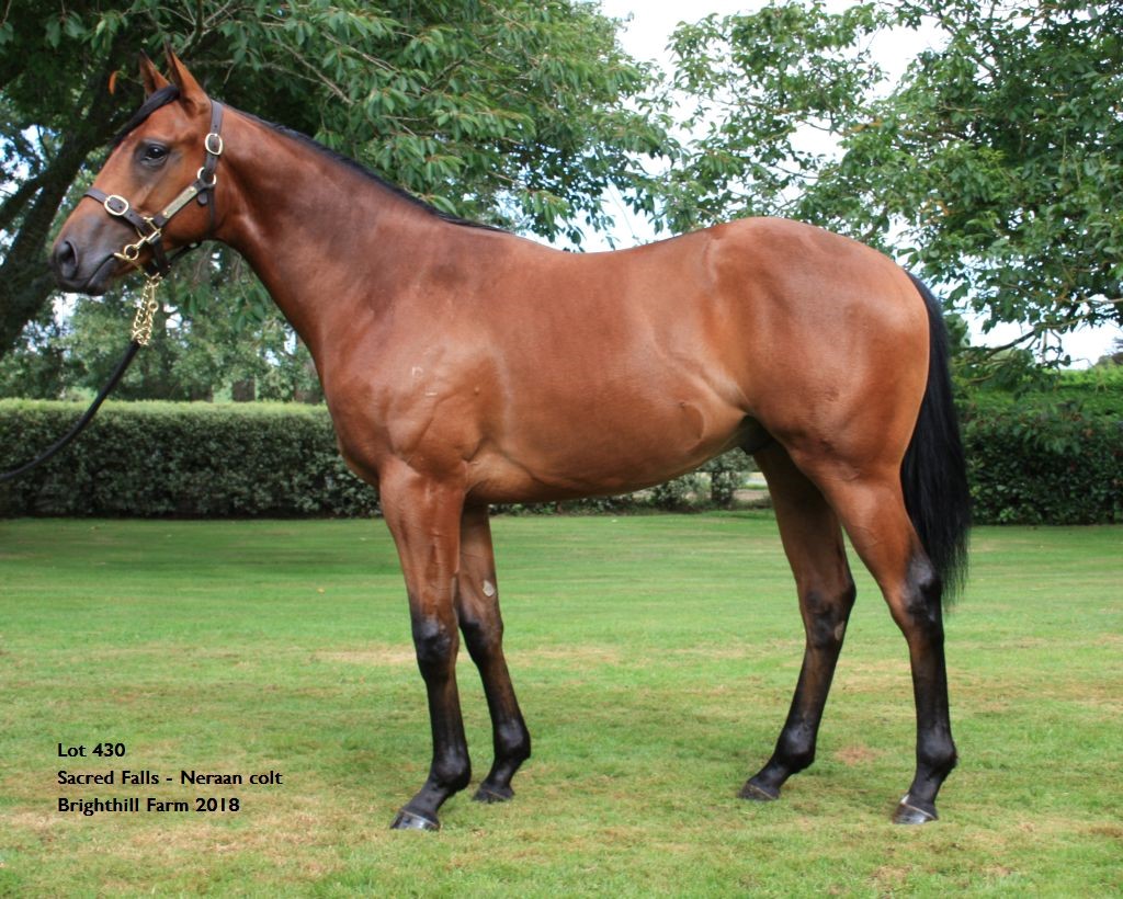 SACRED FALLS (NZ) (Bay 2009-Stud 2015). Joint Top Older Male of 2013-14 Australasian Classification (Mile). Top on the 2012-13 NZ 3YO Free H (1200m-1600m). 9 wins-2 at 2-from 1000m to 1600m, NZ$378,435, A$4,400,300, ATC George Main S., Gr.1, Doncaster H., Gr.1-twice, New Zealand Two Thousand Guineas, Gr.1, Hawke's Bay Guineas, Gr.2. Out of a half-sister to SW Splashing Out. His oldest progeny are yearlings. 1st dam NERAAN, by Elusive Quality. Unraced. Half-sister to BARELY A MOMENT, Lady Mambo (dam of CADENZA). This is her fifth live foal. Her fourth foal is an unraced 3YO. Dam of three foals to race, inc:- Zeina (f. by Murtajill). Winner at 1200m, 2d Southland RC Jesco Hydraulics H., 3d Southland RC PGG Wrightson AON Insurance Brokers H. Mooghamir - Happy Dayz (Sing.) (g. by Pour Moi). Placed at 2. 2nd dam LADY DANNA, by Danehill. Winner at 2 in Aust. Dam of 7 named foals, 6 to race, 5 winners, inc:- BARELY A MOMENT(Gilded Time). 4 wins-2 at 2-from 1200m to 1600m, A$1,295,250, VRC Sires' Produce S., Gr.1, MRC Invitation S., Gr.1, Toorak H., Gr.1, 2d VRC Salinger S., Gr.1, MRC Caulfield Guineas, Gr.1, VRC Ascot Vale S., Gr.2, MRC Memsie S., Gr.2, Sandown Guineas, Gr.2, SAJC Breeders' S., Gr.2, 3d VRC Debonair S., Gr.3. Sire. Timber City - Timber Boy (Ger.). 4 wins from 1200m to 1650m, HKJC Tai Chung H., Salisbury H., Sha Tin Hoi H., Panasonic Lamdash Linear Shaver H. Lady Mambo. 2 wins at 1600m, VRC Hi Jinx H., 2d MRC ET Barnard H., MVRC Ryan & McNulty Sawmillers H., SAJC Be Trackside Cup Day H. Dam of- CADENZA(Oratorio). 4 wins-2 at 2-to 1400m, A$312,637, WATC Magic Millions Perth 2YO Classic, RL, Silver Signature 2YO P., Danmar Homes H., Amelia Park Karrakatta Raceday H., 2d WATC Gimcrack S., L, Super Saturday H., 4th WATC Champion Fillies S., Gr.3. Cloak and Dagger. Winner at 1600m in 2016-17, 3d WATC Devil's Lair H. Major Mambo. Winner at 1400m, 2d WATC Westspeed 3YO H. Moment of Truth - Earl Grey (Mal.). 10 wins from 1400m to 2000m, A$29,150,303,856Rgt., S$68,949 in Aust., Malaysia and Sing, Singapore TC Class 4H. 3rd dam BARE MINIMUM, by Bustino. Unraced. Three-quarter-sister to Bastinado, half-sister to JOKING APART(dam of DEADLY SERIOUS, SANS BLAGUE), STRATHSPEY(dam of RIVER SPEY, SPINNING), Serpentine (dam of CLONFERT). Dam of 7 named foals, all raced, 4 winners, inc:- Hacienda. 4 wins from 5f to 1m, 2d Newmarket Maloney & Rhodes H. 4th dam STRIP THE WILLOW, by Native Dancer. Placed at 3, 4th Newmarket Nell Gwyn S., Gr.3. Dam of 8 foals, 7 to race, 6 winners, inc:- STRATHSPEY(Jimmy Reppin). 4 wins-1 at 2-at 6f, 1m, Ascot Fern Hill S., L, Newmarket Duchess of Montrose H., L, 2d York Strensall S., L. Producer. JOKING APART(Jimmy Reppin). 3 wins-1 at 2-at 6f, 1m, York Strensall S., L, 3d The One Thousand Guineas, Gr.1. Grandam of- RUNYON(Sadler's Wells). 4 wins from 1800m to 2000m, VATC Underwood S., Gr.1, Leopardstown Derby Trial S., Gr.3, 2d Curragh Gallinule S., Gr.2. |
