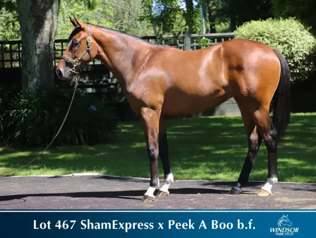 SHAMEXPRESS (NZ) (Bay 2009-Stud 2014). 3 wins-1 at 2-at 1000m, 1200m, A$1,150,475, VRC Newmarket H., Gr.1, Summer Heroes Raceday 2YO P., 2d VRC Sprint Classic, Gr.1, Lightning S., Gr.1, 3d VRC Coolmore Stud S., Gr.1, MRC HDF McNeil S., Gr.3, 4th ATC All Aged S., Gr.1, VRC Newmarket H., Gr.1. Out of a half-sister to SW OýReilly Rose. Related to SW Affinity (VATC Caulfield Cup, Gr.1). His oldest progeny are 2YOs. 1st dam PEEK A BOO, by Thorn Park. Unraced. Half-sister to CLEAN SWEEP. This is her second foal. Her first foal is an unraced 3YO. 2nd dam EIDERCROWN, by Regal Classic. 3 wins at 7f, 8½f in Canada. Half-sister to GAL IN A RUCKUS, PIRATE'S QUILL, Rambuckus, If Dubai (dam of HOLY WARRIOR), Miss Sobriety (dam of HABIBTI). Dam of 13 named foals, 9 to race, 8 winners, inc:- CLEAN SWEEP(End Sweep). 4 wins-2 at 2-from 800m to 1600m, NZ$355,737, New Zealand Two Thousand Guineas, Gr.1, Rotorua RC Lion Red P., Gr.3, ARC Mercedes Super Bonus Fillies' Prelude, 2d Hawkes Bay Highview S., Gr.3, 3d ARC Auckland Thoroughbred Breeders' S., Gr.2, 4th New Zealand One Thousand Guineas, Gr.1, Hawkes Bay Stoney Bridge S., Gr.1, GR Kelt Memorial H., L. Dam of- Zinzi. Winner at 2 in 2016-17, Qld Tatt's RC Southbank Insurance 2YO H. Divine Diya. 3 wins at 1200m, 1400m, HK$2,648,100, HKJC Primula H., Three Lions H., Mount Parker H., 2d HKJC Pak Tam Chung H. 3rd dam QUILLUMMO, by Gummo. Winner at 2 in U.S.A. Half-sister to BACCALAUREATE, ALLQUILLO(dam of DIANNE'S LADY), SHARP-EYED QUILLO, Classy Quillo (dam of BARAQUILLO, MONEY BY ORLEANS), Just Plain Polly (dam of JUST PLAIN SMART), Bonquill (dam of REGAL QUILLO). Dam of 15 foals, 13 to race, 9 winners, inc:- GAL IN A RUCKUS(Bold Ruckus). 5 wins-1 at 2-from 6½f to 9f, US$507,869, Churchill Downs Kentucky Oaks, Gr.1, Woodbine Canadian Oaks, L, Churchill Downs Dogwood S., L. Producer. PIRATE'S QUILL(Pirate's Bounty). 3 wins-2 at 2-from 6f to 1m, Exhibition Park Surrey S., L, 2d Exhibition Park Fantasy S., L. Producer. Rambuckus(Bold Ruckus). 5 wins, 2d Woodbine HA Hindmarsh S., L, 3d Fort Erie Bison City S., L. Grandam of- VALENTINE FEVER(Stormin Fever). 5 wins-2 at 2-to 1m, Turfway Park Valdale S., L, 2d Turfway Park Bourbonette Oaks, Gr.3. Dam of- VENUS VALENTINE(Congrats). 2 wins-1 at 2-at 6f, 8½f, Fair Grounds Rachel Alexandra S., Gr.2, 4th Arlington-Washington Lassie S., L. Highbury. 2 wins at 1900m, 2000m in France. Grandam of- SOFT FALLING RAIN(National Assembly). Champion 2YO Colt in South Africa in 2011-12. 8 wins-4 at 2-from 1000m to 1600m, Turffontein South African Nursery P., Gr.1, Newmarket Joel S., Gr.2. Miss Sobriety. Unraced. Dam of- HABIBTI(Tabasco Cat). 3 wins at 2, US$564,851, Hollywood Starlet S., Gr.1, Del Mar Debutante S., Gr.1, 2d Santa Anita Oaks, Gr.1. Dam of- ELDAAFER(A.P. Indy). 13 wins from 8¼f to 1¾m, US$1,031,835, Belmont Brooklyn H., Gr.2, Breeders' Cup Marathon S., Gr.3. |