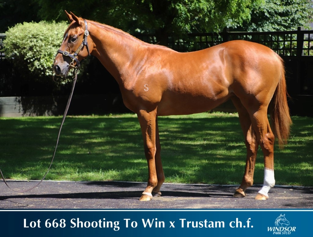 SHOOTING TO WIN (AUS) (Chestnut 2011-Stud 2015). 4 wins-2 at 2-from 1200m to 1600m, A$996,225, MRC Caulfield Guineas, Gr.1, ATC Stan Fox S., Gr.2, TAB Early Quaddie 2YO H., 2d ATC Ming Dynasty H., Gr.3, 3d ATC Golden Rose S., Gr.1, Randwick Guineas, Gr.1, 4th ATC Hobartville S., Gr.2. Brother to SW Deep Field (VRC Tab.com.au S., Gr.2). Out of SW Listen Here. His oldest progeny are yearlings. 1st dam TRUSTAM, by Stratum. 4 wins-1 at 2-at 1000m, 1200m, A$107,880, SAJC Tattsbet Adelaide Cup Raceday H., Anthony Scopelitis Memorial H., 2d MRC Sportingbet Best Tote H., BMW H., MVRC City Jeep H. Half-sister to WEREGOINGTOGETCHA. This is her first foal. 2nd dam SWEETNESS 'N LIGHT, by Entrepreneur. 6 wins from 1400m to 1800m, A$132,850, VRC Jayco 30th Anniversary H., MRC Rooney P., Valley of Georgia H., 2d MRC Saxony H. Three-quarter-sister to Jacilo (dam of MISS KEEPSAKE, VILLIFYE), half-sister to LA SIZERANNE(dam of ZA MOULIN ROUGE), Imperial Lass, Joy's Choice, Napa Sky, Sara Ann (dam of TAVAGO). Dam of 6 named foals, 5 to race, 3 winners, inc:- WEREGOINGTOGETCHA(Testa Rossa). 5 wins-1 at 2-from 1200m to 2300m, NZ$197,000, Manawatu Cup, Gr.3, Manawatu RC Ecolab H.,Rich Hill Stud 3YO S., 2d ARC Zabeel Classic, Gr.1, Levin RC Ryder S., L, 3d Waikato Guineas, Gr.2, Manawatu RC Pioneer H., WRC Hutt NewsH. Sweet Talkin Woman. 6 wins from 1150m to 1900m, A$200,640, ATC Lest We Forget H., Australian Turf Club H., Broadmeadow H., 2d ATC Iconic RaceH. 3rd dam Tricia Ann, by Zabeel. 2 wins at 1600m, Avondale JC Prestige Carpets H., Hawkes Bay Be Happy Be Healthy H., 3d ARC Championship S., Gr.2. Sister to Ana Zeel(dam of ESTELLE COLLECTION), three-quarter-sister to GROSVENOR, NATIONAL GALLERY, KYRIE ELEISON, GARFUNKEL, half-sister to MY MARSEILLAISE(dam of BON CHER, DE LISLE), Concia (dam of MAHAYA, SHADEA). Dam of 12 named foals, 9 to race, all winners, inc:- LA SIZERANNE(Stravinsky). 6 wins-1 at 2-to 1500m, NZ$232,950, A$280,700, Qld Tatt's RC Winter S., Gr.2, ARC King's P., Gr.3. Dam of- ZA MOULIN ROUGE(Street Cry). Winner at 2, SAJC Queen Adelaide S., L. Imperial Lass(Tavistock). 3 wins from 1500m to 2050m, MVRC Jeep H., 3d BRC Queensland Oaks, Gr.1, MRC Ethereal S., L, Werribee Cup, L. Joy's Choice(Redoute's Choice). 2 wins at 1600m, Waikato RC Ready to Run Sale H., 2d ARC Sunline Vase, L, 3d ARC Royal S., Gr.2. Napa Sky(Stravinsky). 3 wins-1 at 2-at 1000m, 2d STC Research S., Gr.3. Sara Ann. Unraced. Dam of- TAVAGO(Tavistock). 4 wins from 1600m to 2400m, NZ$70,775, A$1,578,250, to 2016-17, ATC Australian Derby, Gr.1, Sky High S., Gr.3, Levin RC Wellington S., Gr.3, 3d ARC Karaka 3YO Mile, RL. Miss Kitt Ann. Unraced. Dam of- Kitt Ann Miss(Rock of Gibraltar). 3 wins at 1150m, 1200m, NZ$82,325, ARC Resene Paints H., 2d ARC Newmarket H., L, 3d ARC Darley P., Gr.3. Could be Pearls(Alamosa). 3 wins at 1200m, 1400m to 2017, Singapore TC Class 4 H.-twice, 2d Singapore 3YO Classic, L. |