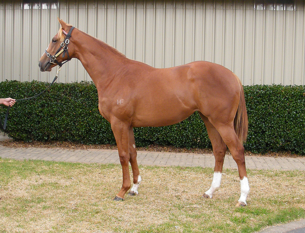 SHOWCASING (GB) (Bay 2007-Stud 2011). 2 wins at 2, York Gimcrack S., Gr.2. Leading NZ Sire of 2YOs in 2014-15. Sire of 377 rnrs, 218 wnrs, 19 SW, inc. SW Quiet Reflection (Royal Ascot Commonwealth Cup, Gr.1), Prize Exhibit, Tasleet, Projected, Showboy - Jade Fortune (H.K.), Cylinder Beach, Toocoolforschool, Conselice, Cappella Sansevero, Caorunn, Maximum Aurelius, De Bruyne Horse, Be Bee, Moonlit Show, etc. 1st dam HUKBA, by Shamardal. Winner at 2, MRC Boardwalk Angel 2YO H., 3d VRC Flemington Finals Day 2YO H. Half-sister to Joiya (dam of NIKI PIKI MILO). This is her sixth foal. Her fifth foal is a 2YO. Dam of four foals to race, two winners- Astor (f. by Iffraaj). 2 wins-1 at 2-at 800m, 1100m to 2017-18, 3d Waikato RC Skycity Waikato Cup 10th December 2YO S., Matamata RC Fairview Motors Matamata H., 4th Hawkes Bay Gold Trail S., Gr.3. Mucker (g. by Nadeem). Winner at 1300m in 2016-17 in Aust. Master Magic Al (g. by Magic Albert). Placed at 2, 3d BRC Shannons Air Conditioning 2YO P. Western Dream (g. by Reaan). Placed, 3d ATC Significant Prelude 2YO H. 2nd dam DODUO, by Danehill. 2 wins-1 at 2-at 1000m, VATC April 2YO H., 2d AJC Turner Freeman H., VATC Arborea H. Sister to HILLFA(dam of WALK WITH ATTITUDE), Love Jeddah, three-quarter-sister to MASSARRA(dam of NAYARRA, GUSTAV KLIMT, WONDERFULLY, CUFF), Kodiac, Al Anood(dam of PRIDE OF DUBAI, ENAAD, AL ANEED), half-sister to Impulsive Dream. Dam of 11 named foals, 9 to race, 6 winners, inc:- Joiya. 3 wins at 1200m, Avondale JC Integrated Print Solutions H. Dam of- NIKI PIKI MILO(Librettist). 3 wins-2 at 2-to 1200m, Levin RC Ryder S., L, Waikato RC Print House S., 3d Wanganui JC Fordell O'Leary S., L. Bella Gioia(Swiss Ace). 2 wins-1 at 2-at 1100m, 1200m, NZ$83,000, to 2016-17, Waikato RC Safewise 2YO S., 2d New Zealand One Thousand Guineas, Gr.1, 4th Hawkes Bay Gold Trail S., Gr.3. The Dom(Swiss Ace). 2 wins at 1200m, 1400m to 2016-17, ARC Norman Disney & Young H., 3d Levin RC Ryder S., L. 3rd dam Fayfa, by Slip Anchor. Winner at 2, 2d Newbury Fillies Trial S., L, 4th Newmarket Pretty Polly S., L. Three-quarter-sister to Al Widyan, half-sister to RAFHA(dam of INVINCIBLE SPIRIT, ACTS OF GRACE, SADIAN, MASSARRA), CHIANG MAI(dam of CHINESE WHITE), Franky Furbo, Al Anood(dam of PRIDE OF DUBAI, ENAAD, AL ANEED), Chamela Bay, Wosaita (dam of WHAZZIS, WHAZZAT), El Jazirah (dam of MOUNT ELBRUS). Dam of 16 foals, 13 to race, 9 winners, inc:- HILLFA(Danehill). 2 wins-1 at 2-to 1400m, VRC Desirable H., L. Dam of- WALK WITH ATTITUDE(Hussonet). 2 wins at 1300m, 1400m, A$165,570, VRC Lexus Hybrid P., L, 2d SAJC Morphettville Guineas, L. Impulsive Dream(Encosta de Lago). Winner at 2, A$113,794, 2d QTC Sires' Produce S., Gr.2, 3d BTC Champagne Classic, Gr.2. Love Jeddah(Danehill). Winner at 1100m, 2d VRC Maribyrnong P., Gr.2. She's Alluring. 2 wins at 2000m, VATC Frank O'Brien H. Dam of- Fast and Sexy(Fastnet Rock). 3 wins-1 at 2, 3d ATC Champagne S., Gr.1. |