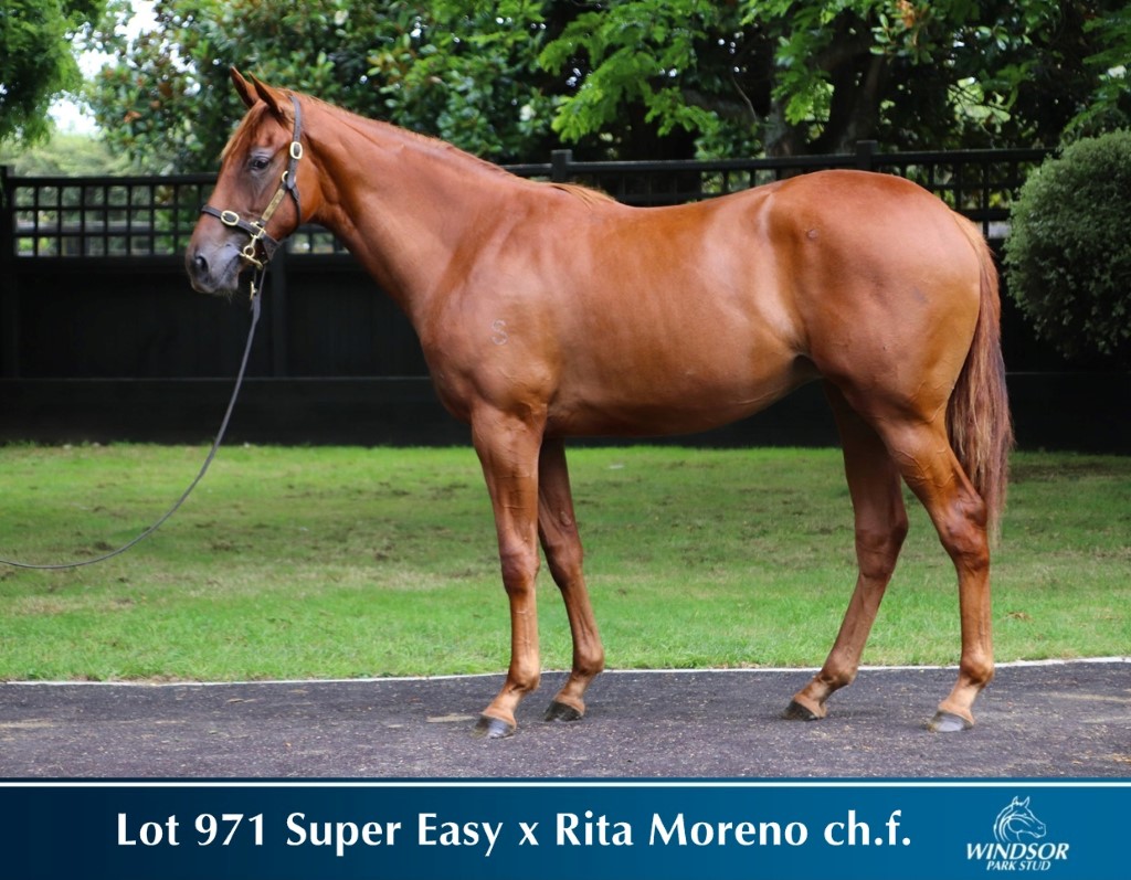 SUPER EASY (NZ) (Bay 2008-Stud 2013). 15 wins-1 at 2-to 1600m, Singapore Guineas, L. Half-brother to SW Tiger Tees, SW Terravista and SW Ball of Muscle. Sire of SW Prom Queen (Whangarei RC Northland Breeders' S., Gr.3) and of Easy Beast, Easy Eddie, Lisdoonvarna, Easy Does It and of the placegetters Firestarter, Holyfield, Landsdowne Lass, Sheeznoteasy, Way Too Easy, etc. His oldest progeny are 3YOs. 1st dam RITA MORENO, by King's Chapel. Unraced. Half-sister to NATALIE WOOD(dam of MALUCKYDAY), RICHARD BEYMER, Chita Rivera (dam of BARSIDE - SICHUAN LEGEND(H.K.)). This is her third foal. Her second foal is an unraced 3YO. Dam of one foal to race. 2nd dam WESTSIDE STORY, by Star Way. Winner at 2100m, Hawkes Bay Air NZ Link H. Half-sister to ST ELMO'S FIRE. Dam of 13 foals, 9 to race, 7 winners, inc:- NATALIE WOOD(Yachtie). 3 wins at 1200m, 1600m, ARC Eight Carat Classic, Gr.2, GE Capital Fleet Services H. Dam of- MALUCKYDAY(Zabeel). 5 wins from 1400m to 2500m, A$1,432,600, VRC Lexus S., Gr.3, City Tattersalls Club Cup, L, AJC Soho Square H., STC TAB H., 2d VRC Melbourne Cup, Gr.1, Bart Cummings H., L, 3d ATC Ranvet S., Gr.1, STC Tulloch S., Gr.2, 4th ATC Chipping Norton S., Gr.1, Ranvet S., Gr.1, ATC Cup, L, Christmas Cup, L. Darciwood(Darci Brahma). 5 wins to 1200m, A$194,875, to 2016-17, ATCDodo H., Bledisloe Cup Festival H., 3d Canberra RC National Sprint H., L. Woodshebe. 2 wins at 1600m, 2100m, ARC Dunstan Feeds H. RICHARD BEYMER(Volksraad). 11 wins-1 at 2-to 1200m, NZ$374,250, Waikato RC Sprint H., L, Counties Bowl, L-twice, Avondale JC Integrated Print Solutions H., Taranaki RC Schweppervescence H., Whangarei RC Rosvall ITM H., Hawkes Bay Linnell Building & Joinery H., Zee U at Zabeels H., 2d ARC Darley P., Gr.3, Waikato RC Foxbridge P., Gr.3, 3d ARC Railway H., Gr.1, WRC Lightning H., L. Parramatta - It's My Magic (Sing.). 6 wins from 1600m to 2200m in NZ, Malaysia and Singapore, Singapore TC Compassion Trophy. Chita Rivera. Winner at 1150m. Dam of- BARSIDE - SICHUAN LEGEND(H.K.) (Tobougg). 2 wins at 1400m, 1500m, Wellington Guineas, Gr.2. Bajour(Volksraad). 4 wins from 1400m to 2400m, WRC Mitsubishi Electric H., MRC Bigscreencompany.com.au H., 3d New Zealand St Leger, L. Montwest. Unraced. Dam of- Amazing. 3 wins from 1600m to 2000m, Singapore TC Rocket Man S. 3rd dam Antipathy, by Sallust. Winner at 2, 2d Phoenix Park One Thousand Guineas Trial, L. Half-sister to SHINDELLA. Dam of 6 foals, 4 to race, all winners, inc:- ST ELMO'S FIRE(Volksraad). 4 wins at 1100m, 1200m, A$137,150, MRC Zeditave S., L, Joe Brown H., New Gleam H. Blazing Century. 6 wins from 1200m to 1600m, A$86,448, WATC Trafalgar H. Search. Winner at 1600m, Waikato RC Calder & Lawson 3YO H. Dam of- Castlebar(Volksraad). 5 wins-1 at 2-from 1200m to 2100m, NZ$122,275, WRC Capital City Ford 2YO H., Taranaki RC Oaks Trial, 2d Manawatu Classic, Gr.3, Masterton RC Lowland S., Gr.3. |