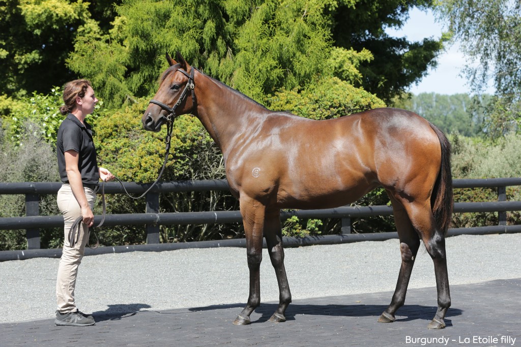BURGUNDY (NZ) (Bay 2008-Stud 2013). 7 wins from 1200m to 1600m, Cambridge Breeders' S., Gr.3. Half-brother to SW Darci Brahma. Sire of 51 rnrs, 18 wnrs, inc. SW Dijon Bleu (Waikato RC Sir Tristram Fillies Classic, Gr.2), Hard Merchandize, SP Bringer of War and of Smokin' Oak, Nucleonic, Pinot Grey, Vincent, Flying Amiga, Little Master, Burkaan, Midnight Brawler, Baxstreetboy - Play to Win (H.K.), Dark Poppy, etc. 1st dam LA ETOILE , by Thorn Park. 5 wins at 1400m, 1600m, NZ$152,212, A$76,000, ARC Rich Hill Mile, Gr.2 , Hawkes Bay Te Runga Stud H., Manawatu RC Hong Kong Jockey Club 3YO Trophy, Levin RC Greyhound Racing NZ H., 2d BRC Spear Chief H., L , Gold Coast Bracelet, L , Waikato RC Rich Hill Stud H., 3d Queensland Guineas, Gr.2 , Rotorua S., L , Waikato RC Credit Union North H., 4th New Zealand One Thousand Guineas, Gr.1 , BTC Doomben Roses, Gr.3 , Qld Tatt's RC Centenary Classic Mile, L . This is her fifth foal. Her fourth foal is a 2YO. Dam of three foals to race, inc:- Zastella (f. by Zabeel). Winner at 1600m. Cape Etoile (g. by Cape Blanco). Placed at 3 in 2017-18 in Aust. 2nd dam DESERT WINE, by Deputy Governor. Unplaced. Sister to (KIWI) HERO , Dominant , three-quarter-sister to Trio (dam of SALE OF CENTURY ). Dam of 7 foals, all raced, 5 winners, inc:- LA ETOILE (Thorn Park). 5 wins. See above. Dominica. Winner at 1200m, 2d WRC Mercedes Super Bonus H. Dam of- Glenealy Prize. 2 wins at 1200m, 1800m to 2017-18, HKJC Dengshikou H. Pretoria. Placed, 2d CJC Braxton Car Lights H. Dam of- Endean Rose (Savabeel). 6 wins 1400m to 2000m, NZ$123,360, BOP RC Bayleys Real Estate H., 2d Cambridge JC Travis S., Gr.2 , aikato RC Hamilton Taxis H., 3d Hawkes Bay Livamol Classic, Gr.1 . 3rd dam DOMINO , by Grosvenor. Second top filly on The 1989-90 NZ 3YO Free H. 4 wins 1200m to 2400m, NZ$203,550, A$340,420, AJC Oaks, Gr.1 , New Zealand Oaks, Gr.1 , ARC Nassipour H., 2d ARC Ladies Mile, Gr.3 . Three-quarter-sister to WESTMINSTER , Clear Mandate , Lavender Blue , Brown Eyed Girl (dam of HALIBERY ), half-sister to SUPER NATURAL , Court (dam of GIMMICK ). Dam of 9 foals, all raced, 8 winners, inc:- (KIWI) HERO (Deputy Governor). 15 wins 1200m to 1600m, NZ$487,175, A$27,200, New Zealand Two Thousand Guineas, Gr.1 , Otaki Maori RC WFA S., Gr.1 , Hawkes Bay Mudgway Partsworld S., Gr.2 . Dominant (Deputy Governor). 2 wins at 1400m, 1600m, 3d Counties Challenge S., L , 4th Waikato RC Star Way S., L . Dam of 6 winners- Hot Pursuit (Spartacus). 3 wins at 1580m, 2100m, 2d ARC Championship S., Gr.2 , 4th ARC Champagne S., L . Dam of- Trail Blazer (Roc de Cambes). Winner at 2000m in 2017-18, 2d Levin RC Wellington S., Gr.3 . About the Journey (Darci Brahma). 12 wins 1600m to 3300m to 2017-18, MRC Peninsula Home Hospice H., 3d VRC St Leger, L . Evergreen. 4 wins to 1200m, Waikato RC Te Atatu Farm H. Grandam of- Easy Man (Ishiguru). 5 wins at 1100m, S$234,391, 2d Singapore TC Aushorse Golden Horseshoe, L . |