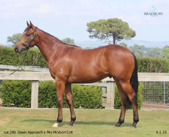 DAWN APPROACH (IRE) (Chestnut 2010-Stud Ire. 2014, Aust. 2014). 8 wins-6 at 2, The Two Thousand Guineas, Gr.1. Sire of 148 rnrs, 55 wnrs. His oldest SH-bred progeny are 3YOs and inc SP Alyaasaat, Dawn Patrol, Gongs, Tahitian Dancer and of Condemned, Approach Discreet, etc. His NH-bred progeny inc SW Madhmoon (Leopardstown Champions Juvenile S., Gr.2), Musis Amica, Second Generation, Haddaf, etc. 1st dam MRS MCVOOM, by Aussie Rules. Winner at 1100m in Aust. Half-sister to LOVEMELIKEAROCK , LOVETORN . This is her third foal. Dam of two foals to race, both winners- Raiza Flame (g. by Statue of Liberty). 3 wins at 1008m, 1200m to 2017-18 in Aust. Heart of Eden (f. by Wanted). 2 wins at 1100m in 2017-18 in Aust. 2nd dam LOVE ALL, by Mt. Livermore. Raced twice. Half-sister to Just Out (dam of OUTTA HERE ). Dam of 8 named foals, 7 to race, 6 winners, inc:- LOVEMELIKEAROCK (Fastnet Rock). 3 wins 1300m to 1600m, A$265,440, Newcastle JC Spring S., Gr.3 , AJC Angst S., L , Private Steer H., 2d AJC Sweet Embrace S., Gr.3 , 3d AJC Furious S., Gr.2 . Dam of- Fifty Ways. Winner at 2 at 1000m, ATC Schweppes 2YO H. LOVETORN (Giant's Causeway). 6 wins at 2000m, 2400m, R337,750, Arlington Jockey Club S., L , 3d Arlington Walmer H. Producer. Ichiban. 3 wins at 1400m, 1600m, HKJC Swaine Cup, Lucky Star H. Love One. Unraced. Grandam of- Stephenstihls (Smart Missile). 3 wins 1400m to 1650m to 2017-18, Marton JC Norbrook Laboratories S., 2d CJC Canterbury S., L . 3rd dam DOUBLES MATCH, by Danzig. Winner at 1m in U.S.A. Three-quarter-sister to Danseur Fabuleux (dam of ARAZI , NOVERRE ), half-sister to JOYEUX DANSEUR , DOUBLES PARTNER , FABULEUX DANCER , Sakura Patrick , Fancy Clancy (dam of FANCY FUSAICHI , FANCY POINT ), Jane's the Name (dam of SILENT ROAR ). Dam of 13 named foals, 11 to race, 9 winners, inc:- Just Out. Unraced. Dam of 8 winners- OUTTA HERE (Dehere). 3 wins-2 at 2-at 1m, 9f, US$557,167, 368,000Dhs, Delta Jackpot S., L , 2d Santa Anita Tokyo City H., Gr.3 , Hollywood Juvenile Championship S., Gr.3 , 3d Hollywood Park Swaps S., Gr.2 . Just Outta Here. Winner at 5½f in U.S.A. Grandam of- TAYLOR'S SPIRIT (Algorithms). 4 wins at 2 to 1m in 2018, Louisiana Downs Happy Ticket S., L , Prairie Meadows Prairie Gold Lassie S., L . 4th dam FABULEUX JANE , by Le Fabuleux. 4 wins-1 at 2-1600m to 2600m, Deauville Prix de Pomone, Gr.3 , Longchamp Prix des Belles Filles, L , Prix de la Porte de Passy, L , 2d La Coupe de Longchamp, Gr.3 , 3d Chantilly Prix de Diane, Gr.1 , Longchamp Prix Vermeille, Gr.1 , Prix de Royallieu, Gr.3 . Half-sister to AJDAL , FLYING PARTNER , FORMIDABLE , Bev Bev (dam of SPECTACULAR BEV ), Northerly Native , Key Partner (dam of KEY DANCER , KEY FLYER ), Farewell Partner (dam of LAKESHORE ROAD , SECRET PARTNER ). Dam of 14 foals, 12 to race, 8 winners. |