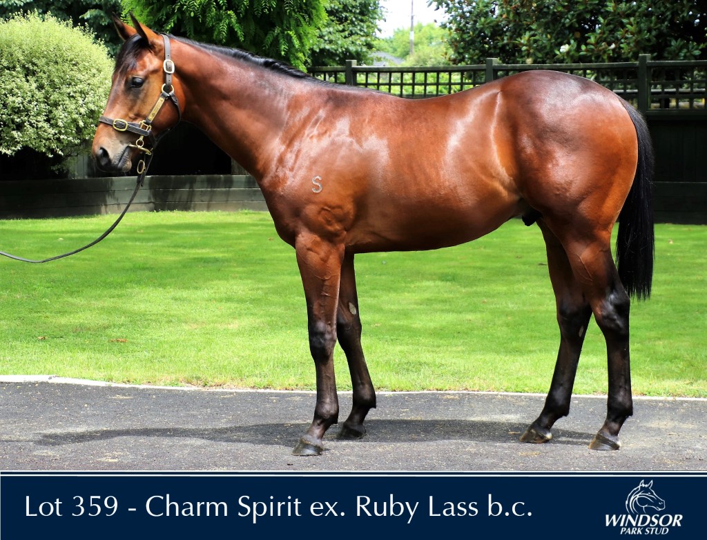 CHARM SPIRIT (IRE) (Bay 2011-Stud GB 2015, NZ 2015). 6 wins-1 at 2, Ascot Queen Elizabeth II S., Gr.1. Grandson of a half-sister to SW Russian Bond. Sire of 73 rnrs, 25 wnrs. His oldest SH-bred progeny are 2YOs and inc the placegetters Media, O'Charm, etc. His NH-bred progeny inc SW Yourtimeisnow (Salisbury Dick Poole S., Gr.3), SP Charming Kid and of Aquarius, Chicago May, Epistrophy, Kick On, Shendam, etc. 1st dam RUBY LASS, by Volksraad. Unraced. Half-sister to GOLD ONYX , Prince Dande Lion . This is her fourth foal. Her third foal is a 2YO. Dam of one foal to race- Bonville (g. by O'Reilly). 3 wins 1400m to 2000m to 2018-19 in Aust. 2nd dam EGOLI LASS , by Kaapstad. 7 wins at 1400m, 1600m, NZ$82,925, A$1,000, Hawkes Bay Horlicks P.H., L , 2d Manawatu RC DB Draught 1600 H., L , 3d Wairarapa Thoroughbred Breeders' S., L , 4th Counties RC Auckland Thoroughbred Breeders' S., Gr.2 , Manawatu Challenge S., L . Half-sister to WISE LASS (dam of WISE SON ), Rationaine (dam of AMALFI ), Rationable (dam of JOEY MASSINO , VIGOR , VINCENT MANGANO ), Rationality (dam of OPTIONS ). Dam of 8 foals, 7 to race, 6 winners, inc:- GOLD ONYX (Black Minnaloushe). 7 wins-2 at 2-1100m to 1900m, R1,942,450, Greyville Premier's Champion S., Gr.1 , Clairwood Cup Trial, Gr.3 , Turffontein Protea S., Gr.3 , Scottsville Sledgehammer H., L , 2d Kenilworth J&B Metropolitan H., Gr.1 , Premier Trophy, Gr.2 , Scottsville Michael Roberts H., L , Clairwood Easter H., L , 3d Greyville Gold Cup, Gr.1 , Kenilworth Queen's P., Gr.1 , Greyville Betting World 1900, Gr.2 , Mango H., Gr.3 -twice, King's Cup, Gr.3 , Michaelmas H., L . Prince Dande Lion (Generous). 3 wins at 2419m, A$132,750, MRC Neerim H., 3d VRC St Leger, L , Duke of Norfolk S., L , 4th AJC Sydney Cup, Gr.1 . 3rd dam RATIONALE , by Sound Reason. 6 wins-3 at 2-1150m to 2000m, NZ$259,460, A$8,000, ARC Great Northern Guineas, Gr.2 , 2d Avondale Cup, Gr.1 , 3d ARC Ellerslie Sires' Produce S., Gr.1 . Half-sister to Top Grade , In the Country (dam of SONATA ), Miss Jubilee (dam of (MY) STEELY DAN , PRINCE STANDAAN , BEKS ). Dam of 9 foals, 7 to race, 5 winners, inc:- WISE LASS (Straight Strike). 10 wins 1200m to 1600m, Levin S., L . Dam of- WISE SON (Montjeu). 3 wins-1 at 2-1600m to 3000m, R376,325, Greyville Gold Vase, Gr.2 , 3d Turffontein South African Classic, Gr.1 . EGOLI LASS (Kaapstad). 7 wins. See above. Rationaine. Winner at 1200m, AJC Double Bay H. Dam of 7 winners- AMALFI (Carnegie). 4 wins-1 at 2-1200m to 2500m, A$1,015,900, Victoria Derby, Gr.1 , VATC Norman Robinson S., Gr.2 . Sire. Petit Verdot. Placed at 3 in Aust. Dam of 5 winners- ANTONIO LOMBARDO (Pins). 13 wins-3 at 2-880m to 1400m, Hawke's Bay Guineas, Gr.2 , 2d Manawatu Sires' Produce S., Gr.1 . Rationable. Unraced. Dam of 8 winners- VIGOR (O'Reilly). 8 wins 1500m to 2520m, A$935,955, VRC Makybe Diva S., Gr.2 , 2d VRC Blamey S., Gr.2 , 3d MRC Caulfield Cup, Gr.1 . JOEY MASSINO (O'Reilly). 7 wins-1 at 2-at 1400m, 1600m, NZ$360,275, Avondale Guineas, Gr.2 , WRC Wellington S., Gr.3 . |