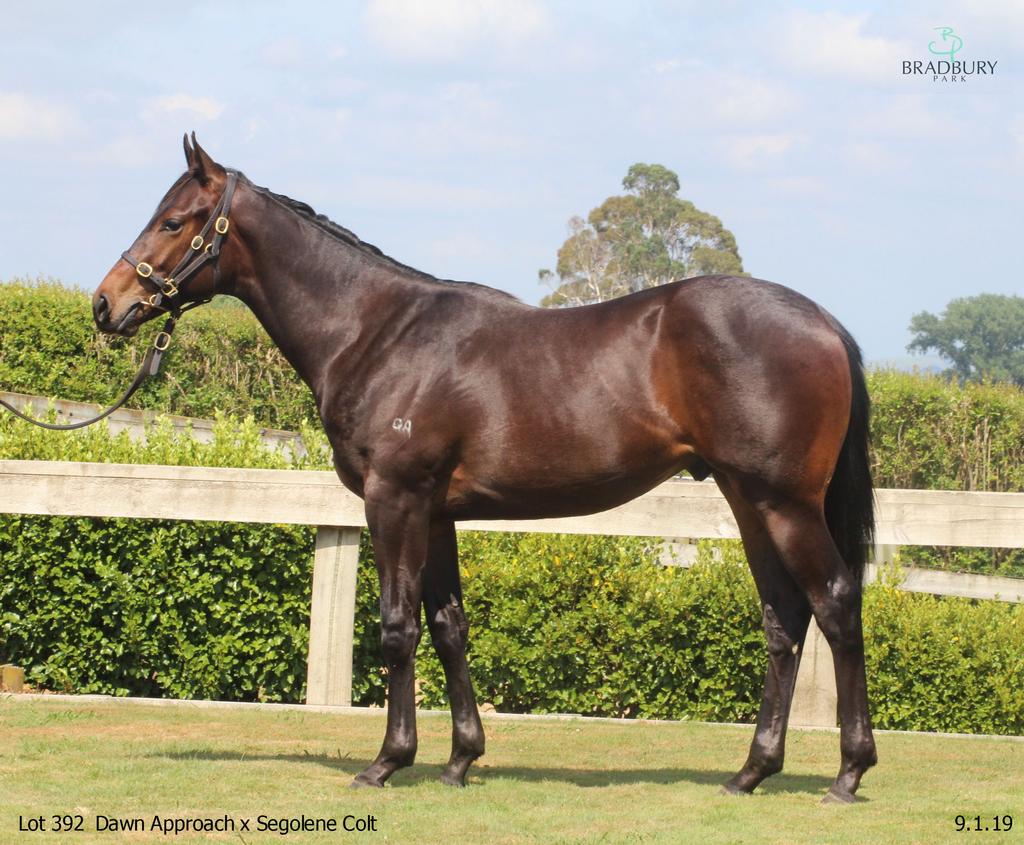 DAWN APPROACH (IRE) (Chestnut 2010-Stud Ire. 2014, Aust. 2014). 8 wins-6 at 2, The Two Thousand Guineas, Gr.1. Sire of 148 rnrs, 55 wnrs. His oldest SH-bred progeny are 3YOs and inc SP Alyaasaat, Dawn Patrol, Gongs, Tahitian Dancer and of Condemned, Approach Discreet, etc. His NH-bred progeny inc SW Madhmoon (Leopardstown Champions Juvenile S., Gr.2), Musis Amica, Second Generation, Haddaf, etc. 1st dam Segolene , by Lonhro. 2 wins-1 at 2-at 1100m, 1200m, A$84,780, Illawarra TC Colemans Fencing 2YO Classic, 3d MRC Debutant S., L , STC Freeway Republic Beer H., 4th VRC Ottawa S., L . Sister to QUIDNUNC . This is her seventh living foal. Dam of six foals to race, all winners- Fragonard (f. by New Approach). 5 wins 1200m to 1400m, A$216,185, to 2017-18, ATC TAB Rewards H., MVRC Dr Sheahan P., MRC Le Pine Funerals H., 2d VRC Mittys H., MRC Ladbrokes Back Yourself H., Pancare Foundation H., 4th MRC Geoffrey Bellmaine S., Gr.3 . Occitan (f. by Street Cry). Winner at 2 at 1000m, A$77,200, ATC TAB Rewards 2YO P. Mitigate (g. by Medaglia d'Oro). 5 wins at 1000m, 1100m in Aust. Petain (g. by Commands). 2 wins at 1400m, 1625m in 2018-19 in Aust. Berrichon (f. by New Approach). 2 wins at 1300m, 1540m in Aust. Segalas (f. by Poet's Voice). Winner at 1350m in 2018-19 in Aust. 2nd dam Dorky , by Grand Lodge. 2 wins at 2 at 1100m, A$215,800, STC AOG 2YO Fillies H., Safilo Eyewear 2YO H., 2d AJC Kindergarten S., Gr.3 , PJ Bell H., L , BTC Tommy Smith Slipper S., L , QTC CE McDougall 2YO S., 3d AJC San Domenico S., Gr.2 , Silver Shadow S., Gr.2 , STC Reisling Slipper Trial S., Gr.2 , Darby Munro S., L , 4th VRC Ascot Vale S., Gr.2 , Gilgai S., Gr.3 . Dam of 10 named foals, 6 to race, 5 winners, inc:- QUIDNUNC (Lonhro). 5 wins-1 at 2-1200m to 1400m, A$305,530, ATC Nivison S., L , 2d ATC Wenona Girl H., L , Angst S., L , Gosford RC Belle of the Turf S., L , 4th ATC PJ Bell S., L , Festival S., L . Dam of- Little Hunter. 3 wins 1300m to 1400m to 2018-19 in Aust. Segolene (Lonhro). 2 wins. See above. Dissolute. 4 wins-1 at 2-1000m to 1300m, Swan Hill JC Gold Elvstroem 2YO Classic. Art Nouveau. 3 wins 1200m to 1300m, A$121,742, ATC Colin Tuck Farewell H. 3rd dam BOOGIE, by Procol Harum. Winner at 2 at 1200m, QTC Lucky Cloud 2YO H. Sister to Requests , half-sister to Screech (dam of COMTESSE LA GRAN ). Dam of 10 named foals, 9 to race, 8 winners, inc:- Dorky (Grand Lodge). 2 wins. See above. Boogielicious. 6 wins 1200m to 2000m, A$156,855, MVRC Jeep H. 4th dam PLAY MY TUNE, by Kaoru Star. Raced once. Half-sister to ELKABAYO , El Conquista . Dam of 11 foals, 10 to race, 6 winners, inc:- Requests (Procol Harum). 4 wins-1 at 2-at 1100m, 1200m, A$78,803, STC Cammeray Women's Bowling Club H., 2d SAJC Cinderella S., L . Screech. Unplaced. Dam of 3 winners- COMTESSE LA GRAN (Saxon). 3 wins at 1200m, 1400m, A$113,410, Bunbury TC Western Australian Breeders' Classic, L . |