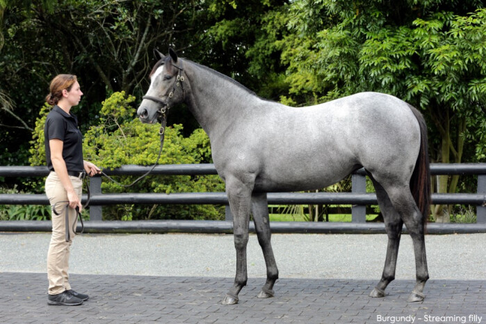 BURGUNDY (NZ) (Bay 2008-Stud 2013). 7 wins from 1200m to 1600m, Cambridge Breeders' S., Gr.3. Half-brother to SW Darci Brahma. Sire of 51 rnrs, 18 wnrs, inc. SW Dijon Bleu (Waikato RC Sir Tristram Fillies Classic, Gr.2), Hard Merchandize, SP Bringer of War and of Smokin' Oak, Nucleonic, Pinot Grey, Vincent, Flying Amiga, Little Master, Burkaan, Midnight Brawler, Baxstreetboy - Play to Win (H.K.), Dark Poppy, etc. 1st dam STREAMING, by Stravinsky. Unraced. This is her second foal. Dam of one foal to race- Pinot Grey (f. by Burgundy). Winner at 2 at 1000m in 2017-18, 3d ARC NZB Insurance Pearl Series 2YO H., 4th Counties Challenge S., L . 2nd dam BYZANTIUM, by Silver Bluff. Placed at 2, 4th Woodbine South Ocean S., L . Half-sister to BYZANTINE , PETE'S FANCY (dam of TRES BORRACHOS , CHINGLISH ), ROSES 'N' WINE (dam of HAMPTON COURT ). Dam of 6 foals, 4 to race, 3 winners, inc:- Avastin. Winner at 1200m, 2d Marton JC New World Marton H. 3rd dam REGENT'S FANCY, by Vice Regent. 4 wins-2 at 2-6f to 8½f, 4th Woodbine La Prevoyante S., L . Three-quarter-sister to Katsura (dam of RAMBUSHKA ), Glamourous Dancer , half-sister to Russian Noble . Dam of 12 foals, all raced, 7 winners, inc:- PETE'S FANCY (Peteski). 10 wins 5f to 8½f, US$405,586, Fort Erie Matchmaker S., L , 2d Woodbine Algoma S., L , 3d Woodbine Royal North H., Gr.3 , 4th Woodbine Seaway S., L . Dam of 6 winners- TRES BORRACHOS (Ecton Park). 5 wins-1 at 2-1m to 9f, US$1,046,233, Del Mar San Diego H., Gr.2 , Hollywood Park Swaps S., Gr.2 , 2d Hollywood Gold Cup, Gr.1 , Santa Anita San Pasqual S., Gr.2 , Hollywood Park Affirmed H., Gr.3 , Native Diver H., Gr.3 , 3d Breeders' Cup Dirt Mile S., Gr.1 , Oaklawn Park Arkansas Derby, Gr.2 . CHINGLISH (War Front). 5 wins 1m to 8½f, Pimlico James W Murphy S., L . BYZANTINE (Quiet American). 8 wins 7f to 9f, US$565,590, Woodbine River Memories H., L -twice, 3d Woodbine Nassau S., Gr.2 , Dance Smartly H., Gr.3 , Belle Geste S., L , Halton S., L , 4th Woodbine Belle Geste S., L . ROSES 'N' WINE (Broken Vow). 4 wins-1 at 2-at 7f, 8½f, US$336,180, Woodbine Algoma S., L , 2d Woodbine Wonder Where S., L , Hill 'n' Dale S., L , Carotene S., L , 3d Woodbine Maple Leaf S., L . Dam of 4 winners- HAMPTON COURT (Redoute's Choice). 3 wins-1 at 2-1400m to 2000m, A$398,230, ATC Spring Champion S., Gr.1 , Dulcify H., L . 4th dam NOBLE FANCY, by Vaguely Noble. Winner at 1m. Sister to TRILLIONAIRE , half-sister to SOLAR CURRENT . Dam of 12 foals, 10 to race, 8 winners, inc:- Katsura (Northern Dancer). 2 wins-1 at 2-at 7f, 1½m, 2d Curragh Brownstown S., Gr.3 , 3d Leopardstown Silken Glider S., Gr.3 . Dam of- RAMBUSHKA (Roberto). 3 wins-1 at 2-at 7f, 1¼m in GB and U.S.A, Newcastle Virginia S., L , 2d Newmarket Pretty Polly S., L . Grandam of- MAKYBE DIVA (Desert King). Australian Horse of the Year twice. 15 wins 1400m to 3200m, A$14,526,685, VRC Melbourne Cup, Gr.1 -3 times, MVRC WS Cox P., Gr.1 , STC BMW S., Gr.1 . Producer. |