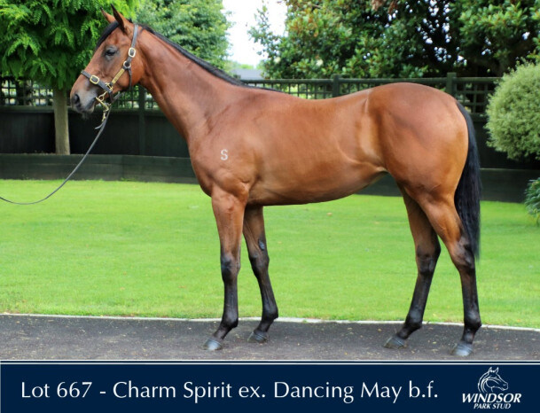 CHARM SPIRIT (IRE) (Bay 2011-Stud GB 2015, NZ 2015). 6 wins-1 at 2, Ascot Queen Elizabeth II S., Gr.1. Grandson of a half-sister to SW Russian Bond. Sire of 73 rnrs, 25 wnrs. His oldest SH-bred progeny are 2YOs and inc the placegetters Media, O'Charm, etc. His NH-bred progeny inc SW Yourtimeisnow (Salisbury Dick Poole S., Gr.3), SP Charming Kid and of Aquarius, Chicago May, Epistrophy, Kick On, Shendam, etc. 1st dam DANCING MAY, by Dane Shadow. Winner at 2025m, 2d MVRC Essendon Hyundai P. Sister to SHADOWS IN THE SUN , half-sister to STONE CANYON . Thisis her third foal. Her second foal is a 2YO. Her first foal is an unraced 3YO. 2nd dam BEST OUT WEST, by Best Western. Placed at 3 in Aust. Dam of 9 foals, 8 to race, 6 winners, inc:- SHADOWS IN THE SUN (Dane Shadow). 4 wins-1 at 2-1400m to 2500m, A$480,100, South Australian Derby, Gr.1 , ATC Australia Day Cup, L , MRC Pura Light Start P., 3d ATC Carbine Club S., Gr.3 , 4th BRC TJ Smith Classic, Gr.1 , ATC Tulloch S., Gr.2 , Tattersalls Club Cup, L . STONE CANYON (Rubiton). 2 wins at 2 at 1010m, 1600m, A$88,970, AJC Fernhill H., L . Shadow West. Winner at 1200m, ATC Grand Pavilion H., 4th ATC Flight S., Gr.1 . 3rd dam Mother Courage , by Battle-Waggon. 4 wins 1600m to 2400m, AJC Wallace H., Indian Summer H., 2d AJC Summer Cup, Gr.3 , STC Christmas Cup, L , 3d STC Lord Mayor's Cup, L . Three-quarter-sister to MANAWAPOI , half-sister to DISTANCIA . Dam of 7 foals, 5 to race, 1 winner, inc:- Courageous Cowboy. 3 wins-1 at 2-1400m to 2200m, AJC Holsworthy . 4th dam SHOP TALK, by Agricola. 4 wins 1900m to 3200m, STC Cranebrook H., AJCRandwick S., STC Enfield H. Half-sister to MANAWAPOI , RED NOSE , Pin Mate , Altisette , Zaragon . Dam of 8 foals, 6 to race, all winners, inc:- DISTANCIA (Century). 10 wins 1300m to 2200m, A$139,175, Ipswich Cup, Gr.3 , Toowoomba Cup, L -twice, 2d QTC Metropolitan H., L . Court Circular. Winner at 1400m, AJC Lawn H. Grandam of- EUREKA JEWEL (Semipalatinsk). 5 wins-2 at 2-1100m to 2000m, A$305,235, VRC AV Kewney S., Gr.2 , AJC Adrian Knox S., Gr.3 , VATC Schweppes Cup, L , 2d AJC Australian Oaks, Gr.1 . Dam of 6 winners- SERMON (Octagonal). 7 wins-1 at 2-1100m to 2500m, A$384,664, Cranbourne Cup, L , 3d STC Gloaming S., Gr.3 . GOLCONDA (Snitzel). Winner at 2 at 1000m, A$191,800, MRC Merson Cooper S., L , 3d VRC Oaks, Gr.1 . Kisses of Gold. 2 wins at 2 at 1400m, 1643m, BATC Sprite 2YO S. Dam of- SPURRED ON (Flying Spur). 4 wins 1300m to 2000m, A$245,540, AJC Frank Packer P., Gr.3 , Carbine Club S., L . LIVE THEATRE - ASALI (H.K.) (King's Theatre). 6 wins 1600m to 2200m, A$68,720, HK$2,678,500, Geelong RC Derby Trial S., L . Enchanting Royal. Unplaced. Dam of 2 winners- ENCHANTING WATERS (Dolphin Street). 7 wins 1100m to 2600m, A$229,594, SAJC Lord Reims S., Gr.3 . |