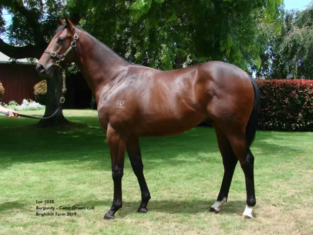 BURGUNDY (NZ) (Bay 2008-Stud 2013). 7 wins from 1200m to 1600m, Cambridge Breeders' S., Gr.3. Half-brother to SW Darci Brahma. Sire of 51 rnrs, 18 wnrs, inc. SW Dijon Bleu (Waikato RC Sir Tristram Fillies Classic, Gr.2), Hard Merchandize, SP Bringer of War and of Smokin' Oak, Nucleonic, Pinot Grey, Vincent, Flying Amiga, Little Master, Burkaan, Midnight Brawler, Baxstreetboy - Play to Win (H.K.), Dark Poppy, etc. 1st dam CELTIC DREAM, by Casual Lies. 6 wins 1400m to 2147m, CJC Brackenfield Hunt H., 2d CJC Schweppes H., 3d CJC Great Autumn H., Gold Club H., Westenra Cup. This is her fifth foal. Her fourth foal is a 2YO. Her third foal is an unraced 3YO. Dam of one foal to race- WON WON TOO (g. by Tavistock). 2 wins at 1400m, 2400m, A$129,115, in 2017-18, MRC Galilee Series Final H., L . 2nd dam GLOCCA MORRA, by Oak Ridge. Winner at 2100m. Dam of 8 named foals, 5 to race, 4 winners, inc:- Finian's Rainbow. 5 wins 1800m to 2500m, CJC Great Autumn H., Braxton Car Lights H., 2d Otago RC Dunedin Club Trophy. Hei Hei Posh. 4 wins at 1800m, 2200m, HK$3,028,050, HKJC Ventris H., Koyoto H., Pui O H., Tai Shue Wan H., 2d HKJC Kwong Wah H. 3rd dam SONG QUEEN, by Vice Regal. Unraced. Blood-sister to Missile Launcher , Regal Mary (dam of BAYREMAH ), three-quarter-sister to Tupelo Honey (dam of DOMINO , SUPER NATURAL ). Dam of 6 named foals, 5 to race, 2 winners, inc:- Copacabana. 4 wins 1200m to 2000m in Korea. Producer. Regal Choice. Unplaced. Dam of 2 winners- Brigadier Babe. Winner at 1200m, 2d ARC Auckland Co-Op Taxis H. 4th dam TUNES OF GLORY, by Ardistaan. 4 wins 1000m to 1600m in Aust. Sister to Roll of Honour , Belle of the Ball (dam of MARSCAY BOY ), half-sister to TOP OF THE POPS (dam of TAKE A WALK , VELOSO , GANSER MACHER , CODEWORD ), Pasadena (dam of PETERSBURG ), Apple Blossom (dam of WESTMINSTER ), Tupelo Honey (dam of DOMINO , SUPER NATURAL ). Dam of 5 foals, 4 to race, all winners, inc:- All That Jazz. 2 wins at 1200m, 1400m in Aust. Dam of 4 winners- Play Magic (Blazing Keel). 6 wins 1200m to 1600m, Manawatu RC Mobil Awapuni H., CJC Millennium Hotels & Resorts H., Hawkes Bay Westshore Hotel & TAB H., 3d Manawatu Challenge S., L . 5th dam MARY POPPINS, by Fair's Fair. 2 wins at 2 at 5f, 6f, ARC Nursery H., 4th ARC Eclipse S., L. Dam of 11 foals, 9 to race, all winners, inc:- TOP OF THE POPS (Bismark II). 3 wins-2 at 2, ARC Welcome S., L. Dam of- VELOSO (Zamazaan). 6 wins-3 at 2, AJC Spring Champion S., Gr.1 . Apple Blossom. Unraced. Dam of 8 winners- WESTMINSTER (Grosvenor). 9 wins-1 at 2, VRC Ampol S., Gr.1 . |