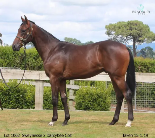 SWEYNESSE (AUS) (Bay or Brown 2011-Stud 2016). 4 wins-1 at 2-from 1400m to 1800m, A$612,900, ATC Gloaming S., Gr.3, Newcastle JC Spring S., Gr.3, ATC TAB Early Quaddie H., 2d ATC Randwick Guineas, Gr.1, Hobartville S., Gr.2, 3d ATC Spring Champion S., Gr.1, 4th ATC Rosehill Guineas, Gr.1. Half-brother to SW Rimraam (VRC Vanity S., Gr.3). Related to SW Designed For Luck, etc. His oldest progeny are yearlings. 1st dam DARCYBEE , by Fasliyev. 4 wins-1 at 2-1000m to 1200m, NZ$85,740, CJC Pegasus S.H., L , ARC Crombie Lockwood H., 2d CJC Stewards S.H., Gr.3 , Cambridge Breeders' S., Gr.3 , ARC Newmarket H., L , Avondale JC 2YO Fillies S., L , ARC Jacks Fruit Supply 3YO H., 3d Hawkes Bay Friday Flash H., Waikato RC Ready to Run Sale H., 4th Hawkes Bay Highview S., Gr.3 . Half-sister to LORD PYRUS , TEHAMA . This is her seventh foal. Her sixth foal is a 2YO. Dam of four foals to race, three winners- Exceed Express (g. by Exceed and Excel). 5 wins 1000m to 1200m, S$270,515 in Singapore. Triple Trio (g. by Sebring). 2 wins from only 4 starts at 1100m, 1400m in 2018 in Singapore. Providence (g. by Flying Spur). Winner at 1100m in Singapore. World Way (g. by Encosta de Lago). Placed at 2, 3d HKJC Topaz P. 2nd dam EMINENT WALK, by Gaius. Winner at 2 at 1200m, CJC Television New Zealand H. Half-sister to CLASSIC WALK . Dam of 10 foals, 8 to race, 7 winners, inc:- LORD PYRUS (Pyrus). 5 wins 1300m to 1800m, A$267,198, MRC TS Carlyon Cup, Gr.3 , St Razzle H., 2d Sale Cup, 4th MRC Eclipse S., Gr.3 . DARCYBEE (Fasliyev). 4 wins. See above. TEHAMA (Centaine). 2 wins at 1400m, 2000m, CJC Warstep S., L , Racecourse Hotel Motor Lodge H. Dam of 2 winners- Fastplus Master. 2 wins at 1400m, HKJC Quicken Away H., Port Shelter H. Figeac. 3 wins at 1600m, 2000m, CJC Dunstan Stayers' Qualifier. Producer. 3rd dam SHARP WALK , by Sharp Edge. Second top filly on The 1980-81 Australasian 2YO Classification. 3 wins at 2 1000m to 1200m, VRC Ottawa S., L , STC Astarita H., 2d VATC Blue Diamond S., Gr.1 , 3d AJC Flight S., Gr.2 . Half-sister to CHEYNE WALK , JUBILEE WALK , Elegant Walk (dam of BOARDWALK ANGEL ). Dam of 7 foals, 5 to race, all winners, inc:- CLASSIC WALK (Grosvenor). 7 wins 1200m to 1800m, CJC South Island Thoroughbred Breeders' S.H., L , Egden Wignall H., Gimcrack H., WRC Scollay H., 3d WRC Cuddle S.H., Gr.3 . Dam of 2 winners- Chandrani (Centaine). 2 wins at 2 at 970m, 1150m, ARC Cellular One Racing Service Juvenile H., 3d ARC Ra Ora S., L . Producer. Majestic Walk. Unraced. Grandam of- DURHAM TOWN (Falkirk). 8 wins at 1200m, NZ$416,975, A$7,000, ARC Concorde H., Gr.2 , Darley P., Gr.3 -twice, CJC Stewards S., Gr.3 , ARC Cambridge Stud H., Speight's H., 2d ARC Darley P., Gr.3 , 3d ARC Railway S., Gr.1 -twice, Darley P., Gr.3 -twice, Concorde H., Gr.3 , CJC Stewards S., Gr.3 , Rotorua RC Lion Red P., L , 4th ARC Railway S., Gr.1 , WRC Telegraph H., Gr.1 -twice, Qld Tatt's RC WJ Healy S., Gr.3 . |