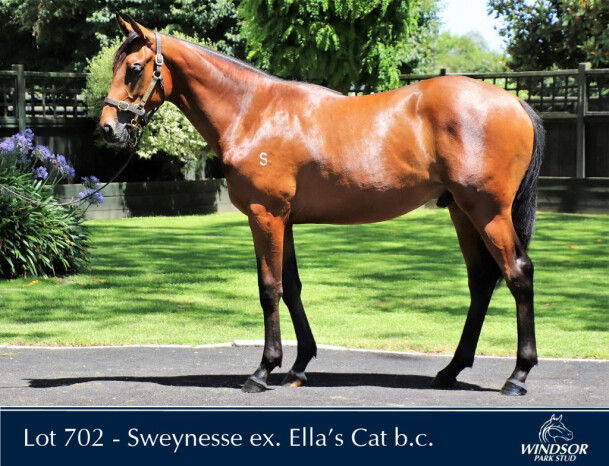 SWEYNESSE (AUS) (Bay or Brown 2011-Stud 2016). 4 wins-1 at 2-from 1400m to 1800m, A$612,900, ATC Gloaming S., Gr.3, Newcastle JC Spring S., Gr.3, ATC TAB Early Quaddie H., 2d ATC Randwick Guineas, Gr.1, Hobartville S., Gr.2, 3d ATC Spring Champion S., Gr.1, 4th ATC Rosehill Guineas, Gr.1. Half-brother to SW Rimraam (VRC Vanity S., Gr.3). Related to SW Designed For Luck, etc. His oldest progeny are yearlings. 1st dam ELLA'S CAT, by Catbird. Winner at 1550m, STC Cathay Pacific H., 3d STC Ranvet H. Half-sister to BISHOPS ROCK . This is her eighth living foal. Dam of six foals to race, five winners, inc:- Geographer (g. by Iglesia). 3 wins from only 5 starts at 1200m, 1400m, Waikato RC PGG Wrightson Grain H., Hawkes Bay Elbow Sports Bar H. Crookshanks (f. by Rip Van Winkle). Winner at 1200m, 2d WRC Blue Star H. Great River (g. by Thewayyouare). 2 wins at 1500m in Macau. Twentysixtwelve (g. by Pour Moi). Winner at 1400m. Ri'gah Brook (g. by Volksraad). Winner at 1400m. 2nd dam RADIUM SPRINGS, by Sir Tristram. Unraced. Three-quarter-sister to RIVERINA CHARM (dam of PAOLINO , SARWATCH ), GREAT VINTAGE (dam of GREAT ANNA ), OUR YANGTZE RIVER , Phocion , Te Akau Jo (dam of PARTEE ). Dam of 10 named foals, 9 to race, 4 winners, inc:- BISHOPS ROCK (Redoute's Choice). 7 wins-1 at 2-1000m to 2200m, R719,910, Turffontein Colorado King S., Gr.2 , Greyville Astrapak H., Gr.2 , Scottsville Michael Roberts H., L , 2d Turffontein South African Nursery P., Gr.1 , Protea S., Gr.2 , 3d Newmarket Sea Cottage S., L . 3rd dam LAKE LOUISE, by Kings Lake. 3 wins 1055m to 1410m, SAJC Cheong Sam H., 2d SAJC Pewsey Vale Vineyard S. Half-sister to Phocion , Country Charm (dam of RIVERINA CHARM ), Great Care (dam of GREAT VINTAGE , LA GRANGE MUSIC ). Dam of 8 named foals, 5 to race, 2 winners, inc:- OUR YANGTZE RIVER (Zabeel). 5 wins 1600m to 2150m, NZ$17,250, A$108,625, SAJC Birthday Cup, Gr.3 , Oakbank RC Onkaparinga Cup, L , SAJC Editorial Works H., Waikato RC CKL Surveys H. Dam of 4 winners- Royal Yangtze. 2 wins at 1300m, 1815m, SAJC SA Unions H., Distinctive Homes H., 2d SAJC Walter Brooke & Associates H. Dam of 5 winners- River Racer (Hidden Dragon). 2 wins-1 at 2-at 1200m, A$338,325, to 2017-18, BRC Hamilton Hotel P., Countdown to Carnival P., 2d BRC Vo Rogue P., Gr.3 , Mick Dittman P., L , 3d BRC Calaway Gal S., L , SCTC Glasshouse H., L , 4th BRC Fred Best Classic, Gr.3 . 4th dam BE GYRFUL, by Gyr. 2 wins-1 at 2-at 5f, 3d Haydock Preston H. Three-quarter-sister to GODZILLA , half-sister to GENTLY , SOROCO , Regality , Be Noble (dam of DARINE ). Dam of 13 named foals, 9 to race, 5 winners, inc:- Phocion (Sir Tristram). 4 wins-1 at 2-1300m to 3000m, A$87,480, AJC Thirteen Squadron Association H., 3d Onkaparinga Cup, L . Country Charm. 2 wins at 9f, Ayr Fairlie H. Dam of 5 winners- RIVERINA CHARM (Sir Tristram). 7 wins-1 at 2-880m to 2000m, ARC Air New Zealand S., Gr.1 , STC Canterbury Guineas, Gr.1 . Producer. |