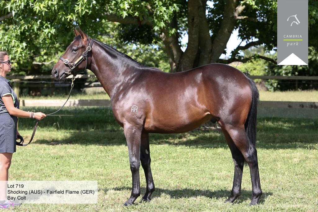SHOCKING (AUS) (Bay 2005-Stud 2011). 7 wins from 1300m to 3200m, VRC Australian Cup, Gr.1. Sire of 174 rnrs, 82 wnrs, inc. SW Fanatic (New Zealand Oaks, Gr.1), Chocante, The Hassler - Circuit Hassler (H.K.), Shocking Luck - Zilong (H.K.), Formidable - Tianchi Monster (H.K.), Pure Pride, SP Camino Rocoso, Hello M'Lady, Antonio Giuseppe, Megawatt, Mental Telepathy, Electric Aura, High Class and of Scandalo, etc. 1st dam Fairfield Flame , by Oasis Dream. 3 wins 1600m to 2800m, MRC Ahern's at Highways H., Rotorua RC Motorsports Car Sales H., 2d Newmarket NightsH., 3d Waikato Gold Cup, Gr.2 , Sandown Panmure Gordon Corporate Finance H., Hawkes Bay Stella Artois H. Half-sister to BAHAMIAN DANCER - INDUSTRIAL SUCCESS (H.K.). This is her sixth foal. Her fifth foal is a 2YO. Her fourth foal is an unraced 3YO. Dam of three foals torace, inc:- Beyond Beautiful (f. by Shocking). Winner at 2050m in Aust. Tara Iti (g. by Shocking). Placed at 3, 3d MRC Grand Hotel Frankston P. 2nd dam FANTASTIC FLAME, by Generous. Winner at 1¼m in GB. Sister to GERMANO , half-sister to MOON SOLITAIRE , FANTASTIC BID , FANTASTIC DON , Fairy Lights (dam of KEYORA , ROC DE CAMBES ). Dam of 10 foals, 9 to race, 7 winners, inc:- BAHAMIAN DANCER - INDUSTRIAL SUCCESS (H.K.) (Bering). 5 wins-1 at 2-1700m to 2400m, £33,983, HK$4,683,800, HKJC Queen Mother Memorial Cup, L , 2d Ascot Royal Lodge S., Gr.2 , 4th HKJC Sha TinTrophy, L . Fairfield Flame (Oasis Dream). 3 wins. See above. Fait Accompli. Winner at 1600m in Germany, 3d Saint-Cloud Prix Nikellora. Dam of 2 winners- Felix (Jukebox Jury). 2 wins-1 at 2-at 1300m, 2600m to 2018 in Czech and Slovakia, Bratislava Zlatý Pohár, 3d Vichy Prix Frederic de Lagrange, L . 3rd dam GAY FANTASTIC, by Ela-Mana-Mou. Unraced. Sister to GAY HELLENE (dam of NASH TERRACE ), three-quarter-sister to GAY CAPTAIN , half-sister to Glad Tidings (dam of STOP PRESS ). Dam of 14 foals, 12 to race, 11 winners, inc:- MOON SOLITAIRE (Night Shift). 5 wins 7f to 1¼m, £101,123, US$325,420, Woodbine King Edward H., Gr.2 , 3d Belmont Kelso H., Gr.2 , Bowling Green H., Gr.2 , 4th Woodbine Atto Mile S., Gr.1 . Sire. GERMANO (Generous). 4 wins-1 at 2-at 7f, 1¼m, £106,237, Sandown Gordon Richards S., Gr.3 , Goodwood Festival S., L , 2d Royal Ascot Hardwicke S., Gr.2 , Haydock Rose of Lancaster S., Gr.3 . Sire. FANTASTIC BID (Auction Ring). 4 wins at 1600m, Longchamp Prix de Saint-Cyr, L , 4th Longchamp Prix Casimir Delamarre, L . Producer. FANTASTIC DON (Sovereign Dancer). 4 wins-1 at 2-1600m to 2000m, Del Mar Sandshark H., L , Saint-Cloud Prix d'Angeville, Prix le Gosse. Sire. Fairy Lights. Unplaced. Dam of 9 winners- KEYORA (Bachelor Duke). 6 wins 1300m to 1600m, NZ$185,985, A$20,000, Hawke's Bay Guineas, Gr.2 , Wellington Guineas, Gr.2 . ROC DE CAMBES (Red Ransom). 4 wins 1800m to 2200m, 189,226,000¥, Nakayama RF Radio Nippon Sho St Lite Kinen, L . Sire. |