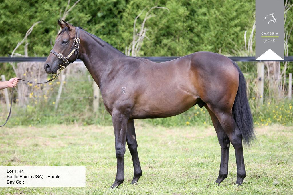 BATTLE PAINT (USA) (Bay 2004-Stud 2010). 3 wins-2 at 2, 2d Longchamp Grand Criterium, Gr.1. Sire of 94 rnrs, 53 wnrs, inc. SW Battle Time (CJC Coupland's Bakeries Mile H., Gr.2), Affleck, SP Annie Okay, Skywalk, Battle Plan - Pegasus Junior (Sing.), Jet Trac and of Going to War - Sun Sun Fa Fa (H.K.), Alphastar, Glittering Armour, Imblaze, Just Sugar, Not Available, Shades of Pearl, Sugar Rush, Ulysses, Battlefield, etc. 1st dam PAROLE, by Towkay. 8 wins-3 in succession-1000m to 1400m, CJC Middle Park P., 2d Otago RC Gen-I H., CJC First Sovereign Trust Charring Cross H., 3d CJC Skelton Brothers H., Otago RC Mosgiel Tavern H. This is her sixth foal. Her fifth foal is a 2YO. Her fourth foal is an unraced 3YO. Dam of three foals to race, two winners- Super Mario (g. by Zabeel). 5 wins 1300m to 2025m to 2017-18 in Aust. Tenacious (f. by Niagara). Winner at 2100m in 2018-19. Summoned (f. by Iffraaj). Placed at 2. 2nd dam OUT ON BAIL, by Justice Prevails. 3 wins at 1000m, 2d Wanganui JC McCarthys H. Half-sister to HONOR BABE , Powerplaya . Dam of 7 named foals, all raced, 6 winners, inc:- Acquit. 10 wins 1355m to 2000m, NZ$89,438, CJC Lindauer H., 2d CJC Yaldhurst Hotel H., Southland RC Elmwood Catering H. Surf Patrol. 7 wins-2 at 2-1200m to 2040m, NZ$92,700, BOP RC Zest H., Marton JC Rayner Building H. 4th Manawatu RC Eulogy S., Gr.3 . Dam of- Son of Surf. Winner at 1200m in 2017-18, 3d Marton JC Rangitikei Tyres H. Ocean Storm. 4 wins 1400m to 2060m, ARC Lance Hutchison H., WRC JR & N Berkett H., 2d Bay of Plenty Cup, 3d ARC ZM H. 3rd dam REPREMAND, by Kreisler. Placed, 3d HBJC INT Insurance Brokers H. Half-sister to VENDEE (dam of KIWI GOLFER ). Dam of 14 foals, 12 to race, 7 winners, inc:- HONOR BABE (Honor Grades). Champion Stayer in NZ in 2002-03. 6 wins 1400m to 3200m, NZ$85,225, A$627,360, AJC Sydney Cup, Gr.1 , Marton Cup, L , Avondale JC Mondiale Freight H., Waikato RC Fayette Park H., 2d AJC Chairman's H., Gr.2 , 3d STC Epona S., L . Dam of 4 winners- Sheezababe (Zabeel). Winner at 2060m, 2d New Zealand St Leger, L . Powerplaya (Bachelor Duke). 5 wins 1350m to 2100m, BOP RC New World Summer Cup, Classic Hits H., 3d Matamata RC Kaimai S., L . Nuclear Fusion (Power). 2 wins at 2 at 1200m, Marton JC Rayner Building 2YO S., 2d Levin RC Ryder S., L . 4th dam REMAND, by Test Case. 5 wins 1911m to 2212m, Stratford RC Waipari H., 3d Manawatu RC Kelvin H. Sister to Fully Tested (dam of JUST A REBEL , ROYAL TEST ). Dam of 11 foals, all raced, 5 winners, inc:- VENDEE (Royal Noble). 7 wins 1400m to 2080m, Otago Mannequin S., L , Greymouth JC WR Kettle Memorial H. Dam of 6 winners- KIWI GOLFER (Cocky Golfer). 16 wins-2 at 2-1200m to 2475m, ARC Great Northern Challenge S., Gr.3 , 2d ARC Easter H., Gr.1 . |