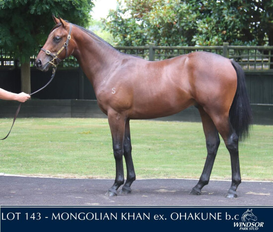 MONGOLIAN KHAN (AUS) (Bay 2011-Stud 2016). Horse of the Year & Champion Stayer in NZ in 2014-15 & 2015-16. Champion 3YO in NZ in 2014-15. 8 wins from 1400m to 2400m, NZ$625,500, A$3,363,250, New Zealand Derby, Gr.1, Australian Derby, Gr.1, MRC Caulfield Cup, Gr.1, Avondale Guineas, Gr.2, Waikato Guineas, Gr.2. Half-brother to SW Young Centaur (Wellington Cup, Gr.1). His oldest progeny are 2YOs. 1st dam OHAKUNE, by Volksraad. Unraced. Sister to CARBON COPY , three-quarter-sister to MILITARY MOVE . This is her third foal. Her second foal is a 2YO. Dam of one foal to race. 2nd dam MARDI GRAS, by Kaapstad. Unraced. Three-quarter-sister to CATALAN OPENING , half-sister to MILITARY MOVE , DAVINCI , Party Royal (dam of EMBRACE ME ). Dam of 5 named foals, 3 to race, all winners, inc:- CARBON COPY (Volksraad). 9 wins 1200m to 2400m, 788,831Rgt., S$18,742 in Malaysia and Singapore, Perak Derby, L , 2d Penang TC 4YO Stayers' Challenge, 3d Penang Sprint Trophy, L , Perak Derby, L . Master of Speed - Tai Smart (H.K.). 2 wins at 2100m, Waikato RC Joe Black Munns Man Store H., 2d HKJC Lin Fa Shan H., Percival H. Fairy Fingers. Unraced. Dam of 2 winners- Falkirk Lass. 3 wins at 1400m to 2018-19, BOP RC Bulk Lines H. 3rd dam ALL NIGHT PARTY, by Just a Dancer. 3 wins 1400m to 2000m, STC Greenacre H., 2d ARC Nathans Memorial H., Otaki Maori RC St Leger Trial. Half-sister to CATALAN OPENING . Dam of 8 named foals, 7 to race, 4 winners, inc:- MILITARY MOVE (Volksraad). 7 wins 1200m to 2400m, NZ$1,579,275, A$70,000, HK$2,796,250, New Zealand Derby, Gr.1 , Manawatu Cup, Gr.3 , 2d New Zealand Two Thousand Guineas, Gr.1 , Manawatu RC Awapuni Gold Cup, Gr.2 , ARC Bonecrusher S., L , 3d Wellington Guineas, Gr.2 , 4th Waikato Guineas, Gr.3 , BRC Queensland Cup, L . DAVINCI (Mastercraftsman). 8 wins 1400m to 2000m, 408,543Rgt., S$200,445 in Malaysia and Singapore, Penang TC Yang di Pertua Negeri Gold Cup, L , 2d Perak TC Coronation Cup, L , Perak Derby, L , 3d Selangor Gold Cup, L , 4th Piala Emas Sultan Selangor, L . Party Royal. Unplaced. Dam of 3 winners- EMBRACE ME (Shamexpress). 4 wins-1 at 2-at 1115m, 1200m, A$243,400, to 2018-19, MVRC Typhoon Tracy S., Gr.3 , $99 Summer Membership H., Ausmeter H., 4th MRC WW Cockram S., Gr.3 . 4th dam DAWN MUSIC, by Mussorgsky. 3 wins 1200m to 1600m, ARC Aaron Court H. Half-sister to OUR DAWN STAR . Dam of 5 foals, all raced, 4 winners, inc:- CATALAN OPENING (Kaapstad). 9 wins-1 at 2-1200m to 1600m, A$1,800,328, HK$4,021,450, AJC Doncaster H., Gr.1 , VRC Chrysler S., Gr.1 , AJC Royal Sovereign S., Gr.2 , STC Theo Marks H., Gr.2 , Hong Kong International Bowl, Gr.2 , STC Ajax S., Gr.3 -twice, 2d VRC Newmarket H., Gr.1 , AJC All-Aged S., Gr.1 , VATC Toorak H., Gr.1 , STC Star Kingdom S., Gr.3 , 3d VATC Caulfield Cup, Gr.1 , AJC Spring Champion S., Gr.1 , All-Aged S., Gr.1 -twice, Queen Elizabeth S., Gr.1 . |