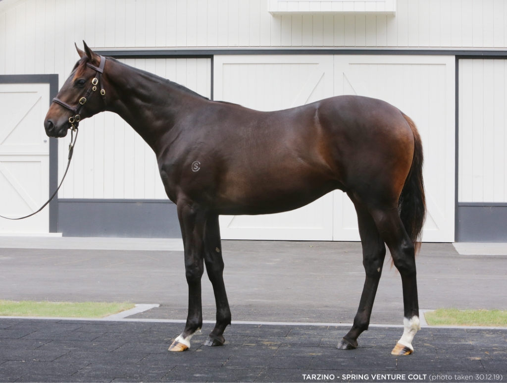 TARZINO (NZ) (Bay 2012-Stud 2017). Champion 3YO Colt in Australia in 2015-16. 4 wins from 1400m to 2500m, A$1,647,050, Victoria Derby, Gr.1, ATC Rosehill Guineas, Gr.1, 2d VRC Australian Guineas, Gr.1, 3d MVRC Dilmah Vase, Gr.2, 4th ATC Australian Derby, Gr.1, MRC Autumn S., Gr.2. Half-brother to the dam of SP Ragnaar - Fast Ball (H.K.) (3d ARC Great Northern Foal S., L). His oldest progeny are yearlings. 1st dam SPRING VENTURE, by Encosta de Lago. Unraced. This is her fifth foal. Her fourth foal is a 2YO. Her third foal is an unraced 3YO. Dam of one foal to race- The Golden Hind (g. by Tavistock). 2 wins at 1400m, 1600m in 2018-19 in Aust. 2nd dam LOVETRISTA , by Rock of Gibraltar. 3 wins at 1400m, 2400m, NZ$189,200, Waikato Gold Cup, Gr.2 , ARC Soliloquy S., L , Waikato RC James & Annie Sarten Memorial S., L , 2d Waikato RC Wentwood Grange 3YO H., 3d New Zealand One Thousand Guineas, Gr.1 . Three-quarter-sister to VIKING RULER , KEMPINSKY , DIAMOND LIKE (dam of FOREVER LOVED , ZEPHYRON ), Chimeara (dam of DE BEERS ), Love Diamonds (dam of QUEEN OF DIAMONDS ). Dam of 6 foals, 4 to race, 3 winners, inc:- Eyes of Love. 2 wins at 1200m, 1600m in Aust. O'Lovely. Winner at 1590m in 2018-19 in Aust. 3rd dam TRISTALOVE , by Sir Tristram. Head of The 1992-93 NZ 2YO Free H. Joint top filly on The 1993-94 Australasian 3YO Classification. 11 wins-4 at 2-1200m to 2040m, NZ$29,800, A$767,640, AJC Sires' Produce S., Gr.1 , Australasian Oaks, Gr.1 , VRC AV Kewney S., Gr.2 , MVRC Alister Clark S., Gr.2 , John F Feehan S., Gr.2 . Sister to ANTWERP (dam of VISCOUNT , HELSINBORG ), three-quarter-sister to DON EDUARDO , KAAPSTAD , PERUZZI (dam of LUCIDA ), Nine Carat (dam of COURT OF JEWELS ), La Brillante (dam of PHILIDOR ). Dam of 8 foals, all winners, inc:- VIKING RULER (Danehill). Winner at 1800m, A$353,300, AJC Spring Champion S., Gr.1 , 2d AJC Royal Sovereign S., Gr.2 . Sire. LOVETRISTA (Rock of Gibraltar). 3 wins. See above. KEMPINSKY (Danehill). 2 wins at 1500m, 2040m, A$453,500, MVRC AAMI Vase, Gr.2 , 2d Victoria Derby, Gr.1 , 3d MRC Caulfield Guineas, Gr.1 . DIAMOND LIKE (Danehill). 5 wins to 1600m, WRC Lightning H., L . Dam of- FOREVER LOVED (High Chaparral). 3 wins 1100m to 1500m, A$310,980, VRC Blazer S., Gr.2 , 3d ATC Vinery Stud S., Gr.1 . ZEPHYRON (Zabeel). 5 wins 1300m to 2200m, A$298,130, BRC Premier's Cup, Gr.3 , ATC Lord Mayor's Cup, L , 3d BRC Brisbane Cup, Gr.2 . Ardeche (Dehere). 3 wins-1 at 2-at 1100m, 1200m, A$172,800, Scone RC Coolmore H., STC Members 2YO P., 3d BRC Lancaster S., L . Dam of- MONGOLIAN MARSHAL (High Chaparral). 5 wins 1400m to 2400m, NZ$238,300, A$28,900, to 2018-19, Waikato Cup, Gr.3 . Chimeara (Danehill). 2 wins, 2d Hawkes Bay Gold Trail S., Gr.3 . Dam of- DE BEERS (Quest for Fame). 2 wins-1 at 2-at 1200m, 2000m, A$861,725, STC Rosehill Guineas, Gr.1 , 2d Australian Derby, Gr.1 . Sire. Love Diamonds. Winner at 2 at 1000m. Dam of 6 winners- QUEEN OF DIAMONDS (Savabeel). 3 wins 1400m to 2100m in 2018-19, Hawkes Bay Lowland S., Gr.2 , Manawatu RC Eulogy S., Gr.3 . |