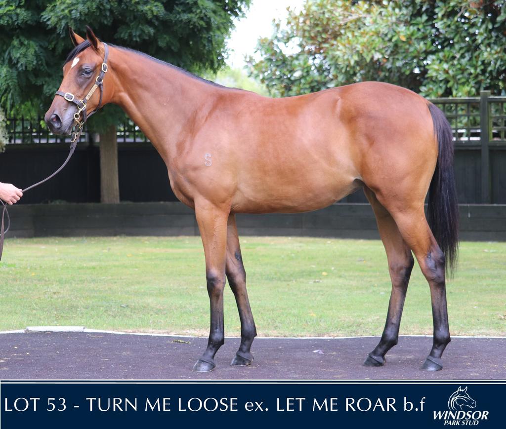 TURN ME LOOSE (NZ) (Bay 2011-Stud 2017). Champion Sprinter & Middle Distance Horse in NZ in 2015-16. 7 wins-1 at 2-from 1200m to 1600m, NZ$321,250, A$1,309,100, VRC Emirates S., Gr.1, New Zealand Two Thousand Guineas, Gr.1, MRC Futurity S., Gr.1, MVRC Schweppes Crystal Mile, Gr.2. Related to SW Fairy Heights (Ascot Fillies Mile, Gr.1), SW Dantsu Prius, etc. His oldest progeny are yearlings. 1st dam Let Me Roar , by Rip Van Winkle. 6 wins in succession from only 7 starts 1200m to 1400m, NZ$87,435, Te Aroha JC Team Wealleans H., BOP RC NZB Insurance Pearl Series H., Waikato RC ANZ at Te Rapa H., 3d ARC Easter S., Gr.2 . Sister to Lubaya , half-sister to LION TAMER . This is her first foal. 2nd dam LIONESS, by Generous. Unraced. Half-sister to Blue Grass . Dam of 9 named foals, 8 to race, 6 winners, inc:- LION TAMER (Storming Home). Joint Top of 2010-11 Australasian 3YO Classification (Ext.). 6 wins-3 at 2-1100m to 2500m, NZ$90,375, A$1,234,000, Victoria Derby, Gr.1 , MRC Underwood S., Gr.1 , ARC Champagne S., L , NSW Tatt's RC Ming Dynasty H., L , Counties Challenge S., L , WRC Carpet One 2YO H., 2d MVRC AAMI Vase, Gr.2 , 3d Waikato RC Star Way S., L , 4th Hawkes Bay Makfi Challenge S., Gr.1 . Let Me Roar (Rip Van Winkle). 6 wins. See above. Lubaya (Rip Van Winkle). 3 wins 1360m to 1600m to 2018-19, Manawatu RC Summer Cup, Hawkes Bay Mulcaster H., 3d Manawatu Breeders, Gr.3 . Botti. 2 wins-1 at 2-at 1200m, 1755m to 2018-19, 4th Wanganui Guineas, L . Queen of Lions. Unraced. Dam of 4 winners- Savapak. 2 wins at 1600m, 2200m, NZ$76,496, to 2018-19, ARC Barfoot & Thompson H., 2d ARC Dunstan Feeds Stayers Final. 3rd dam BLUE SATIN, by Pompeii Court. 2 wins at 1400m, 1670m. Half-sister to Blue Music . Dam of 8 named foals, 7 to race, 3 winners, inc:- Blue Grass (Postponed). 3 wins to 2000m, 3d Taranaki 2YO Classic, Gr.3 . 4th dam (MY) BLUE DENIM , by A Chara. 10 wins-2 at 2-1000m to 3200m, NZ$136,835, A$261,000, STC HE Tancred S., Gr.1 , AJC Queen Elizabeth Randwick S., Gr.1 , Auckland Cup, Gr.1 , Rotorua Challenge S., Gr.3 , 2d VRC Melbourne Cup, Gr.1 , AJC Sydney Cup, Gr.1 , VATC Sandown Cup, Gr.2 , ARC Mitchelson Cup, L , 3d AJC Oaks, Gr.1, ARC Royal S., Gr.2 , STC Storm Queen S., Gr.2, Manawatu RC Eulogy S., Gr.3 , Manawatu Breeders' S., Gr.3 . Dam of 8 foals, 7 to race, all winners, inc:- Blue Music (Western Symphony). 2 wins at 2 at 1000m, 1050m, 2d New Zealand Oaks, Gr.1 , ARC Championship S., Gr.2 . Dam of 3 winners- Indianapolis (Oregon). 4 wins 1650m to 3200m, A$82,360, STC Oyster Bay H., 2d Queensland Cup, L . Magic Blue. Winner at 1600m, 3d CJC Superstrike Seeds H. Grandam of- HARRIS TWEED (Montjeu). Head of The 2008-09 NZ 3YO Free H. 4 wins 2000m to 2500m, NZ$83,600, A$1,338,400, STC Tulloch S., Gr.2 , VRC Bart Cummings H., L , 2d Australian Derby, Gr.1 , MRC Caulfield Cup, Gr.1 , ARC New Zealand S., Gr.1 , 3d AJC Sydney Cup, Gr.1 . |