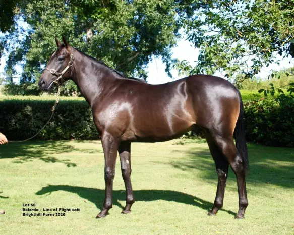 BELARDO (IRE) (Bay 2012-Stud in Ire. 2017, NZ 2017). Champion 2YO Colt in Europe in 2014. 5 wins-3 at 2-from 6f to 1m, ý894,666, ý9,000, Newbury Lockinge S., Gr.1, Newmarket Dewhurst S., Gr.1, Doncaster Mile, L, Newbury Washington Singer S., L, 2d Ascot Queen Elizabeth II S., Gr.1, Royal Ascot Queen Anne S., Gr.1. Half-brother to SW Berling and SP Diamond Sky. His oldest SH-bred progeny are yearlings. 1st dam LINE OF FLIGHT, by Bletchley Park. Unraced. Sister to Flight Path , half-sister to SCENIC SHOT . This is her fifth foal. Her fourth foal is an unraced 3YO. Dam of three foals to race, two winners- LONDON LINE - MOST BEAUTIFUL (H.K.) (g. by Blackfriars). 7 wins-2 at 2-1000m to 1500m, A$392,400, HK$5,132,525, to 2018-19, WATC Supremacy S., L , Fairetha S., L , Happy Birthday Aaron Rankine 2YO P., Crown Metropol P., HKJC Lamma Island H., Wong Chuk Hang H., Middle Bay H., 2d WATC Westspeed 2YO P.-twice, Westspeed 3YO P.-twice, HKJC Glasgow H., Causeway H., Kowloon Bay H., Luk Wu H., Lok Sin Tong Cup, 4th Western Australian Guineas, Gr.2 , WATC Perth S., L . Eitilt (g. by Choisir). Winner at 1400m. Sky Rumba (f. by Shrewd Rhythm). Placed at 3 in Aust. 2nd dam Sweepshot , by Dr Grace. 5 wins at 1200m, 1600m, A$107,425, WATC Cygnet H., Myer H., Tudor Mak H., Riverside H., Pago Escort H., 2d WATC Italian Festival H., Legal Cup, Wavenet International H., 3d WATC Hyperion S., Gr.3 , Trafalgar H. Dam of 6 foals, 5 to race, 4 winners, inc:- SCENIC SHOT (Scenic). Joint second on 2008-09 Australasian 4YO+ Classification (long). 17 wins-1 at 2 and 3 in succession-1000m to 2400m, A$3,097,855, VRC LKS Mackinnon S., Gr.1 , BTC Doomben Cup, Gr.1 -twice, QTC Brisbane Cup, Gr.2 , PJ O'Shea S., Gr.2 -twice, WATC CB Cox S., Gr.2 , GCTC AD Hollindale S., Gr.2 , BRC Members' H., L , WATC JC Roberts S., L , TJ Smith Trophy, L , Aquanita S., L , 2d VRC Turnbull S., Gr.1 , WATC Fruit 'n' Veg S., Gr.1 , BRC Eagle Farm Cup, Gr.2 , WATC Hyperion S., Gr.3 , Challenge S., L , 3d VRC Turnbull S., Gr.1 , WATC Kingston Town Classic, Gr.1 , WATC Derby, Gr.1 , BRC Eagle Farm Cup, Gr.2 , GCTC AD Hollindale S., Gr.2 , BRC Members' H., L , WATC Grandstand Cup, L , Birthday S., L , 4th VRC Australian Cup, Gr.1 , WATC Railway S., Gr.1 , BTC Doomben Cup, Gr.1 -twice, MRC Futurity S., Gr.1 , WATC Perth Cup, Gr.2 , MRC Sandown Classic, Gr.2 , QTC Brisbane Cup, Gr.2 , MRC Victoria Gold Cup, L , WATC Melvista S., L . Flight Path (Bletchley Park). 4 wins at 1200m, 1400m, A$206,925, WATC Magic Millions Perth 3YO Classic, Perth Racing Corporate Members H., Chasta Bellota H., 3d WATC Champion Filies S., Gr.3 . Dam of 3 winners- Lunar Eclipse. 6 wins 1100m to 1500m, A$236,850, WATC Westspeed 3YO H., Schweppes Derby Day Raceday H., Neometals H., Perth Racing TV H., Book Your Xmas Function H., 2d WATC Westspeed 3YO H. Ultimate Success. 7 wins 1500m to 2200m, A$205,040, WATC Westspeed Stayers' Bonus H., Tabtouch.mobi H., 2d Broome Cup. Secret Empire. Winner at 1200m in Aust. Dam of 5 winners- On the Turps. 5 wins at 1000m, 1200m, A$118,355, to 2018-19, WATC Schweppes H., Perth Racing Membership H. |