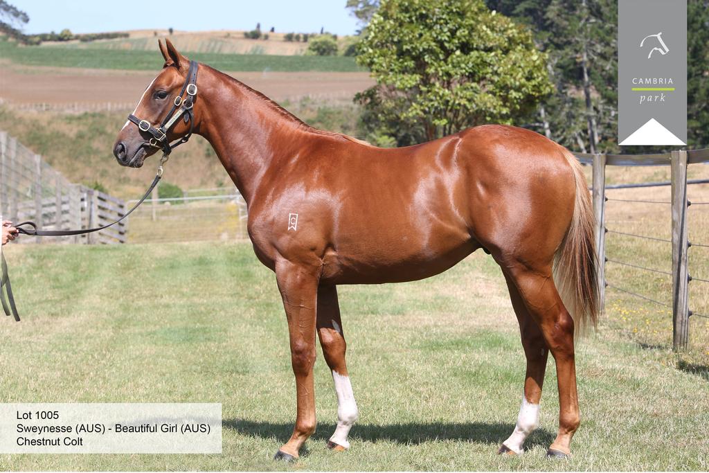 SWEYNESSE (AUS) (Bay or Brown 2011-Stud 2016). 4 wins-1 at 2-from 1400m to 1800m, A$612,900, ATC Gloaming S., Gr.3, Newcastle JC Spring S., Gr.3, ATC TAB Early Quaddie H., 2d ATC Randwick Guineas, Gr.1, Hobartville S., Gr.2, 3d ATC Spring Champion S., Gr.1, 4th ATC Rosehill Guineas, Gr.1. Half-brother to SW Rimraam (VRC Vanity S., Gr.3). Related to SW Designed For Luck, etc. His oldest progeny are 2YOs. 1st dam BEAUTIFUL GIRL, by Not a Single Doubt. Unplaced. Half-sister to MY MIDDI . This is her third foal. Her second foal is a 2YO. Dam of one foal to race. 2nd dam HIGH HONOUR, by Best Western. Placed at 3 in Aust. Dam of 9 foals, 7 to race, 4 winners, inc:- MY MIDDI (Belong to Me). 2 wins-1 at 2-at 1000m, 1400m, A$202,025, MRC Jayco Cup, L , 2d AJC San Domenico S., Gr.3 , STC Cadbury H., 3d AJC Sires' Produce S., Gr.1 , STC Todman Slipper Trial S., Gr.2 , AJC Skyline S., Gr.3 , 4th AJC Roman Consul S., Gr.2 . Yulefest. 2 wins at 1200m, 2d Hakodate Sponichi Sho. Producer. Nobel Laureate - Chief Pegasus (Mac.). 2 wins to 1300m in Aust. and Macau. I'mhighlydelighted. Winner at 1300m in Aust. Dam of 6 winners- My Lucky Baby (Conatus). 10 wins 1100m to 1500m in Macau, 3d Macau Sprint Trophy, L , 4th Macau Chairman's Challenge Cup, L . Bo Rossa. 10 wins 950m to 1690m, A$133,850, BRC Ambassador Travel H.,Ipswich TC Grandview Stud H., 3d BRC Ashgrove Cricket CentenaryH. Delighted Owners. 5 wins 1100m to 2013m, A$84,238, MRC Browns Sawdust & Shavings H., Bombora Downs Thoroughbred Services H. Alanajune. Winner at 1250m, SAJC Medallion Homes P. Music Lover. 10 wins-3 in succession-1540m to 2000m, 2d QTC Mayne HallH. Miss Quest. Raced once. Dam of 4 winners- Dances on Rainbows. 2 wins at 1200m, 1600m, 2d BRC David Jones H. 3rd dam THE CLOISTERS , by Godswalk. Winner at 2 at 1200m, A$83,460, AJC Keith Mackay H., L , 3d AJC Champagne S., Gr.1 , Flight S., Gr.1 , NSW Tatt's RC Furious S., L , 4th STC Canterbury Guineas, Gr.1 . Half-sister to Cherished (dam of LOVE AND MONEY ). Dam of 9 foals, 8 to race, 7 winners, inc:- Vestry. 3 wins to 1250m, AJC Gay Vista H., 4th AJC Angst H., L . Grandam of- SWISSTA (Swiss Ace). 4 wins-3 in succession-1200m to 1600m, ARC Great Northern Guineas, Gr.2 , Dunstan Rising Star Qualifier H. Erin. Winner at 1000m in Aust. Dam of 7 winners- Mega Lass (Bite the Bullet). Winner at 2 at 1000m, AJC Birmingham Sprint 2YO H., 3d AJC Keith Mackay H., L , 4th AJC Kindergarten S., Gr.3 . Rory's Nun. Winner at 800m in Aust. Grandam of- BIANCA JEWEL (Lion Heart). 5 wins-3 at 2-1010m to 1600m, A$520,300,BRC Princess S., L , 2d BRC Gold Edition P., L , 4th BRC Lancaster S., L . KISS ME KATY (Mull of Kintyre). 4 wins at 2, 3 in succession to 1200m, QTC Sir Douglas Wadley H., L , 3d AJC San Domenico S., Gr.3 . Damof- Dream Kisses (Dream Ahead). 3 wins-2 at 2-at 1000m, 1200m, A$282,050, to 2018-19, 3d BRC Calaway Gal S., L , Mode P., L . |