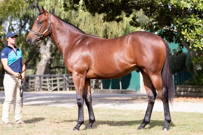SHOCKING (AUS) (Bay 2005-Stud 2011). 7 wins from 1300m to 3200m, VRC Australian Cup, Gr.1. Sire of 212 rnrs, 109 wnrs, inc. SW Fanatic (New Zealand Oaks, Gr.1), Surprise Baby, Chocante, The Hassler - Circuit Hassler (H.K.), Shocking Luck - Zilong (H.K.), Formidable - Tianchi Monster (H.K.), Pure Pride, SP Vegas Jewel, Zelenski, Arctic Shock, Hello M'Lady, Camino Rocoso, Antonio Giuseppe, Megawatt, Kilowatt, etc. 1st dam CELEBRITY MISS , by Civics. 7 wins-3 in succession-1200m to 2100m, NZ$187,105, Rotorua Challenge P., L , ARC Crombie Lockwood H., Levin RC Ekraar, Echoes of Heaven & Giant's Steps H., Pakuranga HC Harrison Lane Mile H., Waikato RC Saddlery Warehouse Cambridge H., Matamata RC Mills Reef Winery H., 2d ARC Ellerslie Jewellers Cornwall H., Bidvest H., Hawkes Bay Trinity Hill H., 3d Hawkes Bay Livamol Classic, Gr.1 , BOP RC Kiwifruit Cup, Waikato RC Twilight Meeting H., 4th Rotorua Challenge P., L . This is her second foal. Her first foal is a 2YO. 2nd dam CLASSIC DAME, by Classic Fame. 5 wins 1400m to 1670m, Avondale JC Peter Smith & Winky Foley H., Counties RC Pukekohe Printing Works H., Paeroa Cup. Dam of 2 named foals, 1 to race, 1 winner, inc:- CELEBRITY MISS (Civics). 7 wins. See above. 3rd dam AL BE NIF TE, by Alibhai. 2 wins at 1150m, 1200m, Rotorua RC Cantabria S. Dam of 9 named foals, 8 to race, 5 winners, inc:- Classic Dame. 5 wins. See above. Bugle Boy. 3 wins at 1600m, 1800m, Matamata RC New World H., 2d Avondale JC Crombie Lockwood (NZ) Ltd H., Taranaki RC Fairdale Stud Riviera H. Southern Gal. 2 wins at 1200m, 1600m, 3d WRC Nobilo Wine Group Juvenile H., BOP RC Te Whakapono Dialysis Appeal Trust 3YO H. Golden Street. Winner at 1400m in Malaysia. (Lord) Kandahar. Winner at 1000m in Aust. 4th dam FEARLESS STEPS, by Without Fear. 2 wins at 1400m, 1650m, ARC Travel New Zealand H., 2d ARC Radio Pacific H. Half-sister to RUMPUS ROOM . Dam of 7 foals, 6 to race, 1 winner, inc:- Al be Nif Te. 2 wins. See above. 5th dam DOWNSTAIRS, by Golden Plume. Winner at 1000m in Aust. Sister to UPSTAIRS , Star Trek (dam of APARANGI ). Dam of 9 foals, all raced, 7 winners- RUMPUS ROOM (Chamozzle). 11 wins-3 at 2-1000m to 1400m, A$81,890, SAJC Spring S., Gr.2 , VRC Fujisan Welter H., BATC Flying H., MVRC Windarra H., Arundel H., SAJC Manning H., VATC Attley H., Moondah P., WATC Blue Grass Quality S., November Welter H., 2d WATC Winterbottom S., Gr.2, SAJC Craven Mild Cup, Gr.3 . Pomposa. Winner at 1400m. Dam of 2 winners- McHale (Prince of Praise). 8 wins 1150m to 2040m, A$134,905, MVRC Country Cup, 2d MRC Heatherlie H., L , 3d MRC Our Maizcay H. |