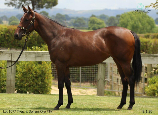 TIVACI (AUS) (Bay 2012-Stud 2017). 6 wins from 1000m to 1600m, A$992,250, to 2016-17, ATC All Aged S., Gr.1, VRC CS Hayes S., Gr.3, Sunshine Coast Guineas, Gr.3, VRC Kensington S., L, 2d VRC Bobbie Lewis H., Gr.2, UCI S., L, Pakenham RC Australian Seed & Turf H., 3d VRC Cantala S., Gr.1, MRC Toorak H., Gr.1, 4th ATC TJ Smith S., Gr.1, BRC Fred Best Classic, Gr.3. His oldest progeny are yearlings. 1st dam DOMANI ORO, by Don Eduardo. Unplaced. Half-sister to SWORN TO SECRECY , Bear Heart - Kick Serve (H.K.), One Nite Stand , Tenko , Accidentallyinlove (dam of GUNS AT FIVE ). This is her third foal. Her second foal is a 2YO. Dam of one foal to race- Red and Gold (g. by Redwood). Winner at 1400m in 2019-20 in Aust. 2nd dam HEARTACHE, by Casual Lies. Placed. Three-quarter-sister to MARROK , half-sister to Review (dam of APPEAL PROCESS ). Dam of 11 named foals, all raced, 7 winners, inc:- SWORN TO SECRECY (Keeper). 3 wins 1200m to 1600m, NZ$12,450, A$149,800, ATC Emancipation S., Gr.2 , 2d Canberra Guineas, L , ATC Galaxy Dining Room H., 3d ATC Phar Lap S., Gr.2 . Producer. One Nite Stand (Cullen). 7 wins 1000m to 1400m, NZ$92,448, Counties RC The Parish H., Rotorua RC Jesters at Koutu Corner H., 2d ARC NZ Bloodstock Insurance H., 3d CJC Canterbury Breeders' S., L . Producer. Bear Heart - Kick Serve (H.K.) (Bertolini). 4 wins-2 at 2-1000m to 1650m, HKJC Sauternes Cup, 3d ARC Champagne S., L , CJC Welcome S., L . Tenko (Shinko King). 3 wins-1 at 2-850m to 2100m, BOP RC Rhys Mischefsky-Bayleys H., 3d Otago RC Champagne S., L . Producer. Sworntoperfection. 4 wins at 1600m, 2100m, ARC Specsavers H., Waikato RC Ready to Run Sale H. Producer. Heart of Darkness. 4 wins 1200m to 1600m, Waikato RC PGG Wrightson GrainH. Accidentallyinlove. Raced once. Dam of 6 winners- GUNS AT FIVE (Duelled). 9 wins-3 in succession-1600m to 2500m,NZ$231,890, A$15,820, New Zealand St Leger, L , Marton Cup, L , Rotorua Challenge P., L , 2d Feilding Gold Cup, L , 3d Wellington Cup, Gr.2 , CJC New Zealand Cup, Gr.3 , Waikato Gold Cup, Gr.3 . Fantastic Honour (Any Suggestion). 2 wins at 2 at 1000m, NZ$215,025, Levin RC 104.2 More FM 2YO H., 2d ARC Eclipse S., Gr.3 , Karaka Million, RL , Wanganui JC Fordell O'Leary S., L . Producer. 3rd dam CHALEYER , by Covetous. 5 wins-1 at 2-1000m to 2800m, A$479,340, AJC St Leger, Gr.2 , Adrian Knox S., Gr.3 , 2d AJC Sydney Cup, Gr.1 , STC Kingston Town S., Gr.2 , AJC Chairman's H., Gr.3 . Dam of 14 foals, 13 to race, 6 winners,inc:- Waiknotme. 3 wins 1150m to 2130m, CJC Halls Refrigerated Transport H. Review. Unraced. Dam of 4 winners- MARROK (Casual Lies). 5 wins 1200m to 1600m, NZ$83,825, Wellington Guineas, Gr.2 , WRC Daily Waste H., 4th BTC Chairman's H., Gr.3 . Concert Girl. Placed at 3 in Aust. Dam of 4 winners- MUSIC MAGNATE (Written Tycoon). 9 wins-3 in succession-1000m to 1400m, A$1,230,025, BRC Doomben Ten Thousand S., Gr.1 . |