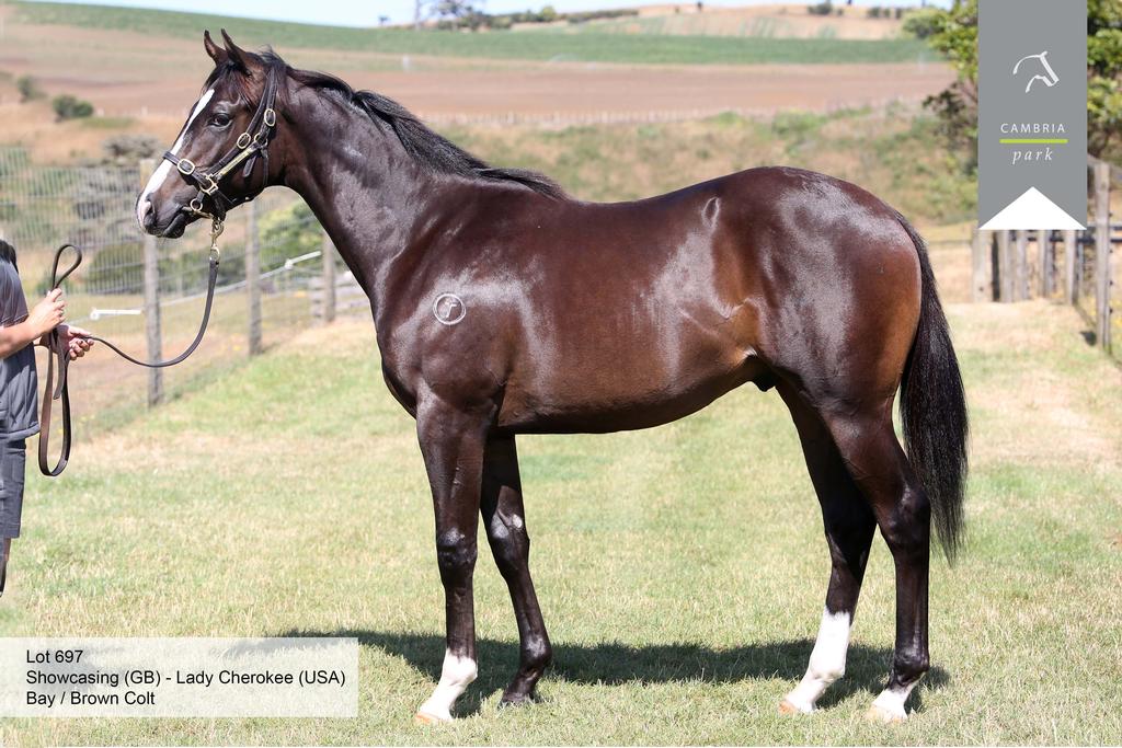 SHOWCASING (GB) (Bay 2007-Stud 2011). 2 wins at 2, York Gimcrack S., Gr.2. Leading NZ Sire of 2YOs in 2014-15. Sire of 683 rnrs, 389 wnrs, 40 SW. His SH-bred progeny inc SW (My) Xpression (WRC Wakefield Challenge S., Gr.2), Showboy - Jade Fortune (H.K.), Cylinder Beach, Bit Lippy, Caorunn, Carnival, etc. His NH-bred progeny inc SW Quiet Reflection (Royal Ascot Commonwealth Cup, Gr.1), Advertise, etc. 1st dam LADY CHEROKEE, by Cherokee Run. 4 wins at 5½f, 6f in U.S.A. Half-sister to Virginia Pride , Holy Flapper (dam of FIESTA ). This is her ninth foal. Her eighth foal is a 2YO. Dam of five foals to race, two winners, inc:- Lord and Master (g. by Mastercraftsman). 4 wins 1400m to 2100m, Waikato RC Allied Security H., 3d ARC Westinghouse H. Lady Sequoyah (f. by Align). 2 wins at 1600m in 2018-19. Brightlign (g. by Align). Placed. Indian Giver (g. by Fastnet Rock). Placed at 3 in Aust. 2nd dam FLAPPER DANCER, by Fappiano. 2 wins at 8½f, 9f in U.S.A. Half-sister to TAP DANCE CITY , CAREZZA (dam of FREEDOM'S DAUGHTER ). Dam of 14 foals, 13 to race, all winners, inc:- Virginia Pride (Virginia Rapids). 13 wins-3 in succession-7f to 8½f, US$331,375, 2d Louisiana Downs Independence H., L , Retama Park TurfBreeders' Cup H., 3d Louisiana Downs Barksdale H., L , Bossier City H., L . Holy Flapper. 3 wins 6f to 1m, Santa Anita Allowance. Dam of 3 winners- FIESTA (Speightstown). 5 wins at 5f, 6f, Suffolk Downs Jill Jellison Memorial Dash S., L , Churchill Downs Allowance. Dance Along. Winner at 1200m in Argentina. Dam of- Dance Jump (Jump Start). 2 wins at 2000m in Argentina, 3d San Isidro Clasico de la Provincia de Buenos Aires, Gr.2 . 3rd dam All Dance , by Northern Dancer. Winner at 1600m in France, 2d Atlantic City Pageant H., L . Half-sister to WINNING COLORS , Shareek . Dam of 12 foals, 11 to race, 8 winners, inc:- TAP DANCE CITY (Pleasant Tap). 12 wins 1800m to 2500m, 1,084,221,000¥, Japan Cup, Gr.1 , Hanshin Takarazuka Kinen, Gr.1 , Kyoto Daishoten, Gr.2 , Tokyo Racecourse Renewal S., L , Chukyo Kinko Sho, L -3 times, Hanshin Asahi Challenge Cup, L , 2d Nakayama Arima Kinen, L -twice, Nikkei Sho, L , 3d Hanshin Takarazuka Kinen, Gr.1 . Sire. CAREZZA (Caro). 5 wins 1100m to 1700m, Meadowlands Montclair State College S., L , 2d Meadowlands Violet H., Gr.3 , Longchamp Prix de Liancourt, L , 3d Deauville Prix de la Calonne, L . Dam of 6 winners- FREEDOM'S DAUGHTER (Saint Ballado). 2 wins at 2 at 5f, 6f, Saratoga Schuylerville S., Gr.2 . Yonder (Rahy). 3 wins 1m to 17f, 2d Philadelphia Park Liberty Bell S., L . Elizaveta (Quiet American). 2 wins at 6f, 8¼f, 2d Philadelphia Park Cozy Lace S., L . Producer. Carocita. 2 wins at 8½f, 9f, 3d Delaware Park George Rosenberger S. Damof- AIBHILIN (Sky Mesa). 2 wins at 2 at 4½f, 5½f, Laurel Selima S., L . |