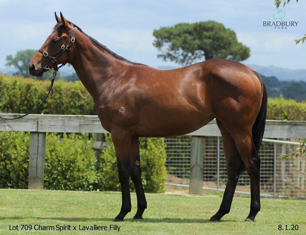 CHARM SPIRIT (IRE) (Bay 2011-Stud GB 2015, NZ 2015). 6 wins-1 at 2, Ascot Queen Elizabeth II S., Gr.1. Leading NZ First Season Sire in 2018-19. Sire of 177 rnrs, 85 wnrs. His oldest SH-bred progeny are 3YOs and inc SW Aretha (Matamata Breeders S., Gr.2), Fascino, SP Heirborn, Jager Bombed and of Sansom, Moreno, Intimidate, Peloton, etc. His NH-bred progeny inc SW Kick On, Yourtimeisnow, SP Charming Kid, etc. 1st dam LAVALLIERE, by Medaglia d'Oro. Unplaced. This is her third foal. Her second foal is a 2YO. Her first foal is an unraced 3YO. 2nd dam Upper Echelon , by Fusaichi Pegasus. 2 wins-1 at 2-at 1200m, 1400m, A$183,380, AJC Macau Jockey Club Trophy H., Empyrean 2YO H., 2d AJC Melaleuca 2YO H., Best Bets H., STC Bride to be Diamond Day H., 3d QTC Sires Produce S., Gr.2 , STC Hobartville S., Gr.2 , AJC Adrian Knox S., Gr.3 , STC Epona S., L , 4th STC Winter S., L . Half-sister to Governance , Kukla . Dam of 5 named foals, all raced, 2 winners, inc:- Eschiele. 6 wins 1000m to 1788m, A$199,835, to 2018-19, ATC Tab.com.au H., 2d ATC McGrath Estate Agents H., 4th BRC Grand Prix S., Gr.3 . Oblique Line. 5 wins 1000m to 1750m to 2019-20 in Aust. 3rd dam Nahayan , by Zabeel. 2 wins at 1600m, NZ$99,350, A$59,000, 2d New Zealand One Thousand Guineas, Gr.1 , Avondale Guineas, Gr.2 , ARC Glenmorgan H., 3d New Zealand Derby, Gr.1 , STC Ranvet S., Gr.1 , NSW Tatt's RC Chelmsford S., Gr.2 , VATC Coongy H., Gr.3 , BOP RC Owens Road H., 4th New Zealand Oaks, Gr.1 . Dam of 7 named foals, 6 to race, 5 winners- Upper Echelon (Fusaichi Pegasus). 2 wins. See above. Governance (Flying Spur). Winner at 2 at 1250m, A$75,200, STC Freeway Hotel Artarmon H., 2d MVRC Red Anchor S., Gr.3 , 3d VRC Hilton S., L . Kukla (Pins). 2 wins at 1209m, 1600m, A$90,660, MVRC Melbourne Signage Concepts H., 2d MRC Twilight Glow S., L . Stone in His Shoe. 4 wins 1200m to 1740m, SCTC Boss Maintenance H. Burton - Sichuan Boss (H.K.). 3 wins at 1600m, 1650m to 2018-19, HKJC Dandelion H., Yik Yam H., 2d MRC Ladbrokes H., HKJC Lantau Island H. 4th dam MEADOWAY, by Star Way. Unplaced. Three-quarter-sister to FIELD DANCER , JUST A DANCER , half-sister to Field Nymph (dam of BLANCHARD ). Dam of 11 foals, all raced, 5 winners, inc:- Nahayan (Zabeel). 2 wins. See above. 5th dam CONDUCT UNBECOMING, by Silly Season. Winner at 7f in Ireland. Dam of 10 foals, 8 to race, 5 winners, inc:- Field Nymph. Unraced. Dam of 13 winners- FIELD DANCER (Star Way). 9 wins 1200m to 2200m, NZ$429,565, A$17,300, ARC Easter H., Gr.1 , New Zealand S., Gr.1 . JUST A DANCER (Star Way). 8 wins-1 at 2-1200m to 3200m, NZ$171,275, A$973,510, AJC Sydney Cup, Gr.1 . Successful sire. |