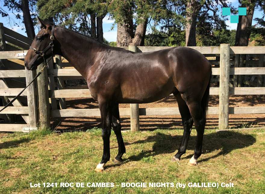ROC DE CAMBES (NZ) (Bay 2004-Stud 2010). 4 wins from 1800m to 2200m, Fukushima Radio Nikkei Sho, L. Sire of 139 rnrs, 75 wnrs, inc. SW Vin de Dance (New Zealand Derby, Gr.1), (He's) Our Rokkii, Consommateur, SP Trail Blazer, Reminisce, Wee Gilly, Ragnaar - Fast Ball (H.K.) and of My Paisann, (Our) Gravano, Roc That, Campobasso, Kauri Cove, Roc Wheeler, Nightcap, Dubaiinstyle, Keely Be, Roc de Bank, etc. 1st dam BOOGIE NIGHTS, by Galileo. Unraced. Half-sister to Global Dance (dam of SEE THE WORLD ), Lobola (dam of HANDFAST , RUSAMBO ). This is herninth foal. Her eighth foal is a 2YO. Dam of five foals to race, two winners,inc:- Salted Caramel (f. by Swiss Ace). 2 wins at 1200m, 1400m, 2d ARC Farewell to the Boss H., Avondale JC Sunday Markets H., BOP RC Dominator Garage Doors H., Sel Neal Builders H., Counties RC Mount Shop H., 3d Rotorua RC NZ First H. Wahlberg (c. by Darci Brahma). Winner at 1300m, 2d ATC Follow Twitter at ATC Racing H. Autopay (g. by Darci Brahma). Placed, 2d HKJC Sapphire H., 3d HKJC Ma On Shan H. 2nd dam LOVE DANCE , by Kaapstad. Second top filly on The 1994-95 NZ 3YO Free H. 4 wins 2000m to 2200m, NZ$320,025, A$89,000, Hawkes Bay Kelt Capital S., Gr.1 , Avondale Gold Cup, Gr.1 , Waikato RC Sir Tristram Fillies Classic, Gr.2 , 2d AJC Australian Oaks, Gr.1 , ARC Championship S., Gr.2 , Te Aroha JC New Zealand Thoroughbred Breeders' S., Gr.2 , ARC Ladies Mile, Gr.3 . Sister to Kape Dancer (dam of TIP THE WINK ), three-quarter-sister to MORVEN WARRIOR , half-sister to Hula Song , Dancing Hula (dam of I'VE GOT RHYTHM ). Dam of 11 named foals, 7 to race, 5 winners, inc:- Global Dance. Winner at 2, 2d MRC Shankhill Lass H. Dam of 4 winners- SEE THE WORLD (Danzero). 9 wins 1000m to 1300m, A$574,150, ATC Maurice McCarten S., L , Gosford RC Takeover Target S., L , 2d ATC Winter S., L , 3d ATC Sebring S., Gr.3 , Hall Mark S., L , Starlight H., L . Boys on Tour (General Nediym). 6 wins-1 at 2-1200m to 1600m, A$276,000, BRC Coca-Cola H., Gallopers H., 2d ATC Pago Pago S., Gr.2 , 3d BRC BTC Classic, Gr.3 , 4th ATC Champagne S., Gr.1 . Capital Raising. 4 wins 1300m to 1600m, A$86,250, 2d City Tatt's RC Tattersalls 2YO P., SAJC Super Sunday May 2YO H. Dam of 2 winners- GLOBAL THINKING (So You Think). 3 wins-1 at 2-900m to 1600m, NZ$84,100, Southland Guineas, L , 2d Otago RC Dunedin Guineas, L , 4th Whangarei RC Northland Breeders' S., Gr.3 . Lobola. Placed at 2, 2d STC Hyland Race Colours 2YO H. Dam of 7 winners- HANDFAST (Street Cry). 5 wins 1200m to 1400m, A$384,625, to 2019-20, ATC South Pacific Classic, L , 2d BRC The Phoenix S., L , SCTC Hampden S., L , 3d Canberra RC National Sprint H., L . RUSAMBO (Elusive Quality). 2 wins at 1200m, A$252,940, MVRC Mitchell McKenzie S., L , 2d MRC Blue Diamond Prelude (c&g), Gr.3 . Chipanda (Sepoy). Winner at 2 at 1200m, A$114,225, ATC Les Carlyon AC 2YO P., 3d ATC Widden S., Gr.3 , Pierro P., 4th BRC Lancaster S., L . Engagement (Street Cry). 3 wins in succession at 1250m, 1300m, A$139,435, ATC Lynch Contractors H., 3d ATC South Pacific Classic, L . |