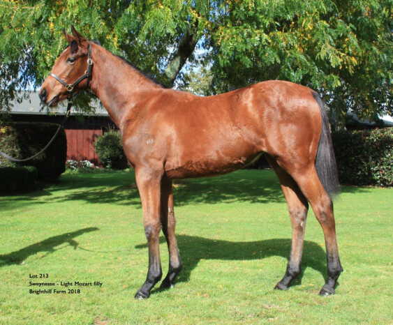 SWEYNESSE (AUS) (Bay or Brown 2011-Stud 2016). 4 wins-1 at 2-from 1400m to 1800m, A$612,900, ATC Gloaming S., Gr.3, Newcastle JC Spring S., Gr.3, ATC TAB Early Quaddie H., 2d ATC Randwick Guineas, Gr.1, Hobartville S., Gr.2, 3d ATC Spring Champion S., Gr.1, 4th ATC Rosehill Guineas, Gr.1. Half-brother to SW Rimraam (VRC Vanity S., Gr.3). Related to SW Designed For Luck, etc. His oldest progeny are foals. 1st dam LIGHT MOZART, by Mozart. Placed at 3 in GB. This is her seventh living foal. Her sixth foal is a yearling. Dam of five foals to race, two winners, inc:- Amber Rayne (f. by Tavistock). 2 wins-1 at 2-at 1000m, 1200m, 2d Rotorua RC New Zealand Bloodstock Insurance Pearl Series H.-twice, 3d ARC Bestaff S., Rotorua RC New Zealand Bloodstock Insurance Pearl Series H. Surfin' Safari (g. by Footstepsinthesand). Winner at 2, 2d Rome Premio Philyra. Show Myla (f. by Show a Heart). Placed in Aust. 2nd dam FOOTLIGHT FANTASY, by Nureyev. Winner at 7f, Epsom Sherwood S. Half-sister to Millennium Dash (dam of DASH TO THE FRONT, DASH TO THE TOP), Alligram (dam of KISSOGRAM). Dam of 11 named foals, all raced, 8 winners, inc:- Unscrupulous. 3 wins at 7f, 1m, Royal Ascot Buckingham Palace H. Lindop. 2 wins at 1m, 16½f, Newbury Kiwi Mike Stag Do S. Fantasy Ridge. Winner at 2 in GB. Dam of- Fantasy King. 6 wins from 1¾m to 17½f, Leopardstown Sandyford S. Dominant Dancer. Winner at 2, 3d Newmarket Racing Post S. Dam of- Dominant Fellow(Dehere). 4 wins-3 at 2-at 1000m, 1200m in Sweden, Taby Svealandlöpning, 3d Jägersro Sprint, L. 3rd dam MILLIGRAM, by Mill Reef. Third top filly on The 1986 2YO & 1987 3YO European Classifications. 4 wins-1 at 2-from 7f to 1m, £306,890, Ascot Queen Elizabeth II S., Gr.1, Goodwood Waterford Crystal Mile, Gr.2, Royal Ascot Coronation S., Gr.2, 2d Irish One Thousand Guineas, Gr.1, The One Thousand Guineas, Gr.1. Half-sister to Someone Special(dam of ONE SO WONDERFUL, ALNASR ALWASHEEK, RELATIVELY SPECIAL, RAUCOUS LAD). Dam of 10 foals, 8 to race, 5 winners, inc:- Millennium Dash. Winner at 10¼f in GB. Dam of- DASH TO THE FRONT(Diktat). 2 wins at 8¾f, 11f, Warwick Warwickshire Oaks, L, 2d Newmarket Fillies' H. Dam of- SPEEDY BOARDING(Shamardal). Champion Older Female in France & GB in 2016 (Int.). 5 wins from 2000m to 2100m, £176,805,â¬458,760, Chantilly Prix de l'Opera, Gr.1, Deauville Prix JeanRomanet, Gr.1, Saint-Cloud Prix Corrida, Gr.2, Newbury Lord Weinstock Memorial S., L, 2d Ascot British Champions Fillies & Mares S., Gr.1. DASH TO THE TOP(Montjeu). 2 wins-1 at 2-at 1m, 10¼f, £101,645, â¬23,475, Newcastle Hoppings S., L, 2d Yorkshire Oaks, Gr.1, 3d Ascot Fillies Mile, Gr.1, 4th Longchamp Prix Vermeille, Gr.1. Producer. Alligram. Unplaced. Dam of- KISSOGRAM(Caerleon). 3 wins at 1m, 1¼m, Newmarket Sun Chariot S., Gr.2, Sandown Atalanta S., L, 4th Goodwood Nassau S., Gr.1, Nassau S., Gr.2, Sandown Brigadier Gerard S., Gr.3. Producer. |