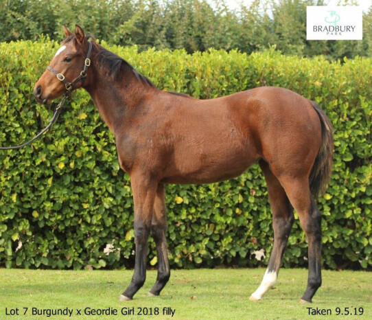 BURGUNDY (NZ) (Bay 2008-Stud 2013). 7 wins from 1200m to 1600m, Cambridge Breeders' S., Gr.3. Sire of 67 rnrs, 25 wnrs, inc. SW Dijon Bleu (Waikato RC Sir Tristram Fillies Classic, Gr.2), Hard Merchandize - Telecom Puma (H.K.), SP Bringer of War and of Smokin' Oak, Rosarito, Burgundy Belle, Nucleonic, Pinot Grey, Eva Dawn, Vincent, Divine Red, Flying Amiga, Hallelujah, Little Master, etc. 1st dam GEORDIE GIRL, by Towkay. 2 wins at 1200m, 1600m, WRC Stella Artois H., 2d ARC North Harbour Club Charitable Trust H., Matamata RC New World H., BOP RC Platinum Showhome H., 4th Wairarapa Thoroughbred Breeders' S., L . Sister to RAPID KAY , half-sister to KEKOVA . This is her fourth living foal. Her third foal is a 2YO. Dam of one foal to race- Locally Sauced (g. by Iffraaj). 6 wins at 2000m, 2100m, NZ$103,250, to 2017-18, North Canterbury Cup, 2d CJC Lindauer H., Gold Club H., 3d CJC Phil & Corin Murfitt H., Speight's Mid Ale H. 2nd dam Racing Waters , by Racing is Fun. 3 wins 1100m to 1400m, CJC Jetmaster Fireplace Quality H., Canterbury Draught Apprentice H., 2d CJC Canterbury Westland Trainers Association H., 3d Timaru S., L . Half-sister to FAIROSS . Dam of 6 foals, all winners- KEKOVA (Elusive City). 7 wins 1200m to 1600m, NZ$142,178, CJC Great Easter S., L , Wairarapa Thoroughbred Breeders' S., L , CJC Christchurch Casino H., Waikato RC Anexa Animal Health H., Manawatu RC McEntee Event Hire H., 2d CJC Canterbury Breeders S., L , 4th CJC Easter Cup, Gr.3 , Levin S., L . Producer. RAPID KAY (Towkay). 5 wins-1 at 2-1300m to 1600m, NZ$109,950, Taranaki RC Mason Appliances 4YO H., L , North Canterbury RC Canterbury S., L , Hawkes Bay Corn Exchange Juvenile S., CJC GH Murfitt Memorial H., 2d Hawkes Bay Highview S., Gr.3 , WRC Desert Gold S., Gr.3 , 3d WRC Captain Cook S., Gr.1 , Waikato Draught Sprint, Gr.1 , Avondale JC 2YO Fillies S., L , 4th Waikato RC Gasmate S., Gr.3 . Dam of 5 winners- Skittle. 5 wins at 1340m, 1400m, WRC Konami H. Cool Rapids. Winner at 1110m, BRC Coca-Cola Amatil P. 3rd dam MISS HARBOUR, by Sea Anchor. Unraced. Half-sister to BALLYBRIT , AVENGER . Dam of 6 named foals, 4 to race, 3 winners, inc:- FAIROSS (Pharostan). 9 wins 1400m to 2400m, NZ$123,030, ARC Mitchelson Cup, L , WRC Simply Food H., ARC Sleepyhead H., CJC Bells H. Racing Waters (Racing is Fun). 3 wins. See above. 4th dam BANBA, by Resurgent. Placed at 3. Half-sister to Tricky Marie . Dam of 13 named foals, 12 to race, 4 winners, inc:- BALLYBRIT (Wandering Eyes). Champion 2YO in NZ. 7 wins at 2 880m to 1200m, Great Northern Foal S., Gr.3, Avondale S., L, ARC Breeders' P.H., Ellerslie S.H., WRC Nursery H., 2d ARC Welcome S., L. Sire. AVENGER (Wandering Eyes). 6 wins-2 at 2-1000m to 1600m, Avondale S., L, 2d Manawatu Sires' Produce S., Gr.1, ARC Eclipse S., Gr.2. Sire. |