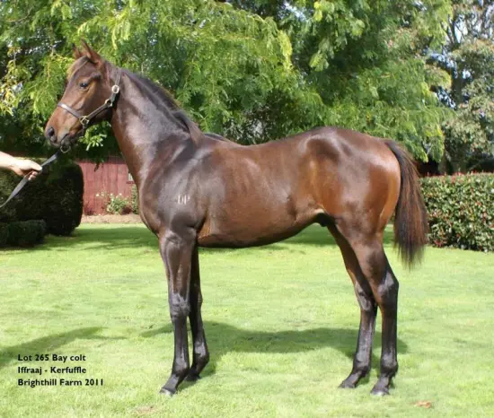 1st dam KERFUFFLE, by Kaapstad. Unplaced. Half-sister to ROYSYN, PASTEL, Temptation (dam of AL FAROUK). This is her first foal. 2nd dam ROYAL PROPOSAL, by Vice Regal. Unplaced. Half-sister to Asahi, Love Proposal (dam of THE VEEP). Dam of 13 named foals, 10 to race, 7 winners, inc:- ROYSYN(Bakharoff). Top of The 1995-96 NZ 3YO Free H. (1700m+). 7 wins from 1400m to 2400m, NZ$458,850, A$28,000, New Zealand Derby, Gr.1, ARC New Zealand S., Gr.1, Queen Elizabeth H., Gr.2, Wellington S., Gr.3, ARC South Auckland Ford H., 2d Avondale Gold Cup, Gr.1, Counties Cup, Gr.2, ARC Carbine Club H. PASTEL(Grosvenor). 4 wins from 1200m to 2000m, Ashburton RC Inglewood S., L, 2d Westland RC Miss Scenicland S., 3d Otago RC White Robe Lodge H., Gr.3, CJC Warstep S., L, Timaru Cup, L, 4th Southland RC New Zealand Bloodstock Breeders S., L. Temptation. 7 wins-1 at 2-to 1400m, CJC Sheraton Auckland H., Apprentices H., Mobil Centenary H., Waikouaiti RC Blue Riband H., 2d Otago Owners & Trainers Association H., Westland RC Hokitika Cup, 3d CJC Avon City Ford Open H., 4th Southland RC White Robe Lodge S., L. Dam of- AL FAROUK(Cape Cross). 7 wins from 1200m to 2150m, US$400, NZ$165,875, WRC Thompson H., Gr.3, North Canterbury RC Canterbury S., L, CJC Coupland's Bakeries Mile Southern Prelude, Waikouaiti Cup, Kumara Gold Nuggets, CJC Angus Meats H., 2d CJC Essential Linen H., Millennium Hotels & Resorts H., 3d CJC Canterbury Gold Cup, Gr.3, Easter Cup, Gr.3, Spring Classic H., L, North Canterbury Cup, Amberley Cup, CJC HSBC Salver. Red Offer. Winner at 2, WRC Expo TVNZ Celebrities Juvenile S. Governo. Winner at 1650m, 2d CJC Hutt Valley Cartage & Customs H., Akaroa Winery H., 3d CJC Hughes & Harris Racing Stables H. Next in Line. Winner at 1200m. Dam of- Next. Winner at 1600m in 2010-11, 2d MRC Harrolds H., 3d Waikato RC Loch Haven Thoroughbreds Fillies & Mares Final. Jenna. Unplaced. Dam of- Sennet - Shatin Win Win (H.K.). 2 wins-1 at 2-at 1000m, 1400m, MVRC St Steven 2YO H., HKJC Shing Mun River Channel H., 2d HKJC Sai Van Bridge H., 4th MVRC Mitchell McKenzie S., L. South Pacific. Unplaced. Dam of- Versace - Charmgold (H.K.). 3 wins-1 at 2-to 1400m to 2010-11 in NZ and HK, HKJC Fuzhou H., Craigengower Challenge Cup H., 2d HKJC Cooper H., Long Ke H., 3d HKJC Ascot H., Kwai Fong H. Viva Guy. 2 wins at 1650m to 2010-11, HKJC South Bay H., Pedder H., 2d HKJC Pak Wo H., Peng Chau H., 3d HKJC Yiu Tung H., Pak Tam au H. |