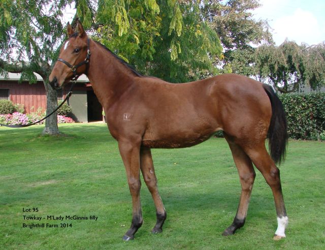 1st dam M'LADY MCGINNIS, by Monolith. Unraced. Half-sister to Trendy and True (dam of HIGH OCTANE). This is her fourth foal. Her third foal is a yearling. Her second foal is a 2YO. Dam of one foal to race- Paddy's Park (g. by Towkay). Winner at 1400m in 2014 in Malaysia. 2nd dam KATIE MCGINNIS, by Full Pocket. 3 wins-2 at 2, 2d Blue Ribbon Juvenile S. Dam of 11 named foals, 7 to race, 3 winners, inc:- Ease Hours. 9 wins from 1200m to 2100m, NZ$109,060, Hawke's Bay Hawkesbayracing.co.nz H., Marton JC Outback Trading Company H., Wanganui JC 92.8 More FM H., 2d WRC Galaxy S., Hawke's Bay Speights H., NRM Rural Supplies H., Just Commercials Partsworld H., WRC Copper Belt Lodge H., 4th Wanganui S., L. Minnie McGinnis. 2 wins-1 at 2-at 1000m, 1200m, WRC NZ Triple Crown 2YO H., Fayette Park H. Producer. Trendy and True. Unplaced. Dam of- HIGH OCTANE(Towkay). 9 wins from 1350m to 2300m, NZ$231,760, Manawatu Cup, Gr.3, BOP RC Tauranga S., Gr.3, ARC Radio Network H., Fruit World H., Dunstan Feeds Qualifier, Waikato RC Newstalk ZB H., WRC Douro Cup, 2d ARC Sharp H., 3d Feilding JC Anzac 1600 H., L, 4th ARC Nicolas Feuillatte S., Gr.3, Waikato RC Ag & Turf Sprint H., L, Counties RC Karaka Classic, L. 3rd dam KISS CURL, by Jacinto. 9 wins-2 at 2-in U.S.A. Half-sister to FREEDOM RING, Heart of Market (dam of MARSCAY, MAKARA). Dam of 9 foals, all raced, 6 winners, inc:- Kisses Full. 4 wins in U.S.A. Producer. Runnin' Greene. Winner in U.S.A. Dam of- Jacindra(Bold Ego). 7 wins-2 at 2, Fonner Islander H., Inaugural H., 2d Canterbury Hoist Her Flag S., L, 3d Ak-Sar-Ben Good Life S., L. 4th dam ACCROCHE COEUR, by Beau Max. Winner at 2 in U.S.A. Half-sister to Wiley Trade (dam of SUBZERO, CONFEDERATE LADY, BENSYND). Dam of 10 named foals, 9 to race, 7 winners, inc:- FREEDOM RING(Free America). 17 wins, Ascot Silver Cup S., L, 2d Ascot Downs Northeast Ohio S., L, 3d Ascot Silver Cup S., L. Heart of Market. Raced twice. Dam of- MARSCAY(Biscay). 8 wins-6 at 2-to 1400m, A$233,840, STC Golden Slipper S., Gr.1, AJC Hobartville S., Gr.2. Champion sire. Good Exchange. Unraced. Grandam of- ALACRITY(Grosvenor). 5 wins-1 at 2-from 1100m to 2400m, New Zealand Oaks, Gr.1, Waikato RC Sir Tristram Fillies Classic, Gr.2. |