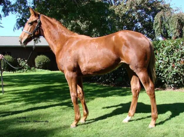 OCEAN PARK (NZ) (Bay 2008-Stud 2013). Horse of the Year in NZ in 2012-13. Champion Middle Distance Horse in AUS & NZ in 2012-13. 8 wins from 1200m to 2050m, NZ$343,925, A$2,529,000, MVRC WS Cox P., Gr.1, ARC New Zealand S., Gr.1, MRC Underwood S., Gr.1, Caulfield S., Gr.1. Out of a half-sister to the dam of SW Prince Kaapstad (ARC Easter H., Gr.1). Sire of Beerzatbernz, etc. His oldest progeny are 2YOs. 1st dam GLITTERATI, by Observatory. Unplaced. Three-quarter-sister to STAR CLUSTER, half-sister to TRICK OF LIGHT. This is her seventh foal. Her sixth foal is a yearling. Dam of three foals to race, inc:- Darci Glitter (g. by Darci Brahma). 2 wins at 1200m, 1400m to 2016-17, 3d ARC Tourism Ireland H., Southland RC Plumbers & Building Services H. Dylan's Star (g. by Dylan Thomas). Placed at 3 in 2016-17 in Aust. 2nd dam STARDOM, by Known Fact. Unraced. Half-sister to XAAR, DIESE(dam of SENURE, SPEAK IN PASSING, DEXTERITY), MASTERCLASS, ILE DE JINSKY, Didicoy(dam of DIDINA, ESPIONAGE, STAR CLUSTER), Esquire, Silver Star, Danthonia (dam of ZANTE), Victoriana (dam of VICTORIAN ORDER). Dam of 8 foals, 5 to race, 3 winners, inc:- TRICK OF LIGHT(Dansili). 6 wins from 1200m to 2000m, £2,597, A$236,970 in GB and Aust, SAJC Queen of the South S., Gr.2, MRC Select H., 2d VRC Matron S., Gr.3, 4th SAJC Rain Lover P., L. Producer. Supercharger. Unraced. Dam of- Amante Latino(Mujahid). 11 wins-2 at 2-from 1000m to 2150m, MilanPremio Mincio, 2d Milan Premio Gardone, L, 3d Milan PremioChiusura, Gr.3, Rome Premio Parioli, Gr.3, Milan Premio del Piazzale, L. Anonimo Veneziano(Compton Place). Champion 3YO Sprinter in Italy in 2009. 5 wins at 1200m, 1400m, Milan Premio Po, Premio Vignate, 3d Milan Premio Gardone, L, 4th Rome Premio Tudini, Gr.3. 3rd dam MONROE, by Sir Ivor. Joint third top filly on The 1979 Irish 2YO Free H. 3 wins-2 at 2-to 6f, Leopardstown Ballyogan S., Gr.3, 2d Phoenix S., Gr.1. Sister to GIELGUD, MALINOWSKI, Minnie Hauk, half-sister to BLUSH WITH PRIDE, Star of Bagdad. Dam of 18 foals, 17 to race, 14 winners, inc:- XAAR(Zafonic). Head of the 1997 European 2YO Classification. 5 wins-4 at 2-from 1200m to 1600m, £388,240, Newmarket Dewhurst S., Gr.1. Sire. DIESE(Diesis). 4 wins to 2100m, Saint-Cloud Prix Corrida, Gr.3. Dam of- SENURE(Nureyev). 7 wins-1 at 2-from 7f to 11f, Santa Anita Clement L Hirsch Memorial Turf Championship S., Gr.1. Sire. MASTERCLASS(The Minstrel). 4 wins-1 at 2, Deauville Prix Quincey, Gr.3. ILE DE JINSKY(Ile de Bourbon). 4 wins, Churchill Downs River City H., L. Didicoy(Danzig). 3 wins-2 at 2, 2d Phoenix Park Pearl Sprint S., L. Dam of- DIDINA(Nashwan). 5 wins, Hollywood Park Dahlia H., Gr.2. Grandam of- CITYSCAPE(Selkirk). 6 wins-1 at 2-from 1600m to 1800m, Meydan Dubai Duty Free, Gr.1, 2d Ascot Queen Elizabeth II S., Gr.1. Silver Star(Zafonic). Winner at 2, 3d Saint-Cloud Prix Coronation, L, 4th Deauville Prix de Saint-Cyr, L. Grandam of- CLOSE HATCHES(First Defence). 9 wins from 7f to 9f, US$2,707,300, Belmont Ogden Phipps S., Gr.1, Saratoga Personal Ensign S., Gr.1. |
