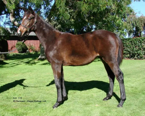 EL HERMANO (NZ) (Bay 2005-Stud 2009). Unraced. Brother to SW El Segundo. Sire of 69 rnrs, 32 wnrs, inc. SW Farm Boy (ARC Avondale Gold Cup, Gr.2), Underthemoonlight, SP El Pescado, El Pistola and of Meeska Mooska, El Disparo, El Luchador, Naughty Knuckles, El Bandido, Elroi, El Fernando, El Nino, Catarina, Laddie of Oakview, Worthiswaitngold, Affogato, El Tyson, Riley's Rocket, River Colour, All Wealth, Dominio, etc. 1st dam HAPPY ENDINGS, by Tavistock. Unraced. Half-sister to Pretty Special (dam of KONTIKI PARK). This is her first foal. 2nd dam SNAP, by Kingdom Bay. Joint Champion 3YO & NZ Filly of the Year. 11 wins-4 at 2-from 950m to 2400m, NZ$501,325, A$78,050, New Zealand One Thousand Guineas, Gr.1, New Zealand Oaks, Gr.1, Waikato Draught Sprint, Gr.1, Manawatu Sires' Produce S., Gr.1, Hawkes Bay Enerco S., Gr.2, Gold Trail S., Gr.3, Manawatu RC Eulogy S., Gr.3, MVRC Diamond Jubilee S., Gr.3, WRC TVNZ Magic Millions Fillies Classic, 2d Hawkes Bay Enerco S., Gr.2, Masterton RC Lowland S., Gr.3, 3d WRC Telegraph H., Gr.1, Otaki Maori RC WFA S., Gr.1, MVRC WH Stocks S., Gr.3, 4th Waikato Draught Sprint, Gr.1, Waikato RC Sir Tristram Fillies Classic, Gr.2, ARC Royal S., Gr.3. Sister to Repetition. Dam of 9 named foals, 8 to race, 4 winners, inc:- Snapshot. 6 wins to 1400m, NZ$84,385, to 2015-16, Te Aroha JC Team Wealleans H., ARC NB Holland Medal H., Matamata RC BNZ Partners H. Pretty Special. Raced twice. Dam of- KONTIKI PARK(Thorn Park). 8 wins from 1400m to 1800m, A$577,725, BRC Bernborough H., L, GCTC Magic Millions Stayers Cup, ATC Clubsnsw Spring Preview H., Warwick Farm 100 Club H., AJC Centennial Park H., TAB Quaddie Jackpot H., 2d ATC Villiers S., Gr.2, NSW Tatt's RC Tramway H., Gr.3, City Tattersalls Club Cup, L. 3rd dam CRACKLE, by Schweppeshire Lad. Unraced. Dam of 10 named foals, 8 to race, 5 winners, inc:- SNAP(Kingdom Bay). 11 wins. See above. Repetition(Kingdom Bay). 3 wins-1 at 2-from 1100m to 1600m, Manawatu RC Fairdale Stud 2YO H., Waikato RC The Commander H., 2d ARC Ellerslie Sires' Produce S., Gr.1, Welcome S., L, 3d Matamata Breeders' S., Gr.2, WRC Magic Millions Classic S., RL. Dam of- Eleda(Deputy Governor). 8 wins-1 at 2-to 1500m, NZ$7,500, A$214,900, BTC Zig Zag Foundation Quality H., QTC Lyndhurst Stud H., Ormiston College Quality H., BTC SITA Environmental H., QTC Central Cleaning Supplies H., 2d QTC Members' H., L, 4th WRC Wellesley S., L. 4th dam El Katrina, by El Mondo. 9 wins from 1400m to 2600m, MVRC Flowerfield H., VATC HR Way Welter H., Avondale JC Price H., 2d Great Northern Oaks, Gr.2, Avondale Championship S., Gr.2, 4th VATC Easter Cup, Gr.3, Werribee Cup, L. Half-sister to AVITT, Kitty's Dream (dam of KENSEI), Yumbalara (dam of RIVA GLEAM). Dam of 7 foals, 6 to race, 2 winners. |