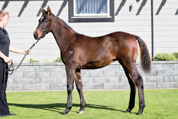 PINS (AUS) (Bay 1996-Stud 2000). 7 wins-1 at 2, VRC Australian Guineas, Gr.1. Leading NZ Sire (worldwide earnings) twice. Sire of 972 rnrs, 676 wnrs, 74 SW, inc. SW El Segundo (MVRC WS Cox P., Gr.1), Aerovelocity, Legs, Ambitious Dragon, Katie Lee, Porotene Gem, Econsul, A Touch of Ruby, Antonio Lombardo, Mackintosh, Legless Veuve, Shopaholic, Icepin - Regency King (H.K.), Rolling Pin, Gallopin, Lauren Tate, etc. 1st dam MY FIANCEE, by Snitzel. Placed at 3. Sister to ESTONIAN PRINCESS, half-sister to SCHILLING, Svita (dam of ASTARA). This is her second foal. Her first foal is a yearling. 2nd dam MEET MY SIS, by Prized. 2 wins at 1m in U.S.A. Half-sister to VARIETY SPICE. Dam of 11 named foals, 8 to race, 5 winners, inc:- SCHILLING(Bianconi). 3 wins-1 at 2-at 1400m, 1600m, A$386,520, MRC Sandown Guineas, Gr.2, 2d VRC CS Hayes S., Gr.3, Carbine Club S., Gr.3, 3d MVRC Alister Clark S., Gr.2. ESTONIAN PRINCESS(Snitzel). 3 wins at 1400m, 1600m, A$450,575, ATC James HB Carr S., Gr.3, Membership on Sale P., 2d ATC Angst S., Gr.3, GCTC Magic Millions Guineas, RL, ATC Festival S., L, GCTC Silk Stocking H., L, 4th ATC Villiers S., Gr.2, Scone RC Woodlands S., L. Kaapstad Lad. 2 wins at 1200m, 2000m, 2d Bendigo JC Blue Ribbon Cup. Know Each Other. 2 wins at 1400m to 2016, Singapore TC Kranji D S., Initiation P., 4th Singapore TC Aushorse Golden Horseshoe, L. Svita. Winner at 2050m in Aust. Dam of- ASTARA(Dalghar). 3 wins-2 at 2-from 1300m to 1600m, NZ$85,925, to 2016-17, ARC Soliloquy S., L, Champagne S., L, Ginde 2YO H., 4th Matamata Breeders' S., Gr.2. 3rd dam VARIETY SIS, by Macarthur Park. 6 wins, Fresno Yosemite S., L, 3d Bay Meadows San Jose H., L. Sister to VARIETY QUEEN(dam of VARIETY ROAD, VARIETY BABY), half-sister to TREASURE TRAIL, Silkys Captive. Dam of 13 named foals, 11 to race, 9 winners, inc:- VARIETY SPICE(Silveyville). 6 wins-2 at 2-at 1m, 8¼f, Pleasanton Senorita H., L, Golden Gate Lafayette H., L, Lakes & Flowers H., L, Santa Rosa Fair Director's H., L, 2d Golden Gate Sacramento H., LProducer. Bid for Elegance. Unraced. Dam of- Remember Boffi(Snowbound). 3 wins at 2, 3d Oak Tree Jack Goodman S., L, 4th Hollywood Park Willard L Proctor Memorial S., L. 4th dam CAPTIVATOR, by Princequillo. Winner in U.S.A. Dam of 13 foals, 12 to race, 11 winners, inc:- VARIETY QUEEN(Macarthur Park). 5 wins, Hollywood Park Honeymoon H., Gr.3, Senorita S., L, 2d Hollywood Park Princess S., Gr.3Dam of- VARIETY ROAD(Kennedy Road). 17 wins-1 at 2, US$964,540, Santa Anita San Felipe H., Gr.1, San Fernando S., Gr.1. Sire. VARIETY BABY(Kennedy Road). 9 wins-3 at 2, US$419,570, Santa Anita La Brea S., Gr.3, 2d Hollywood Starlet S., Gr.1. Producer. TREASURE TRAIL(New Policy). 8 wins, Boise Claiming S., L. |