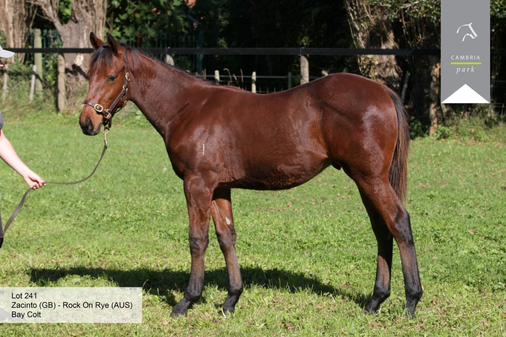 ZACINTO (GB) (Bay 2006-Stud 2012). 3 wins-1 at 2-at 7f, 1m, Goodwood Celebration Mile, Gr.2. Out of SP Ithaca. Sire of 28 rnrs, 12 wnrs, inc. SW Ugo Foscolo (New Zealand Two Thousand Guineas, Gr.1), Zigwig and of Navagio, Strowan, Monrecour, Odeon, Wize Act, High Distinction, Lambada, Pickup, Sidestep, Son of Zac and of the placegetters Dream Rich, Midsummer Magic, etc. His oldest progeny are 3YOs. 1st dam ROCK ON RYE, by Catcher in the Rye. 6 wins from 1400m to 2000m, 2d Otago RC Betty's Liquor Store H. This is her third living foal. Her second foal is a 2YO. Her first foal is an unraced 3YO. 2nd dam Beldale Blues, by Beldale Lear. 5 wins-1 at 2-from 1000m to 1600m, CJC Fitzgerald Arms Tavern H., 2d CJC Challenge S.H., Gr.3, Otago Breeders' S., L, CJC South Island Thoroughbred Breeders' S.H., L. Half-sister to Likable Will. Dam of 10 foals, 6 to race, all winners, inc:- Spinning the Blues. 4 wins at 1200m, 1400m in Aust. Blitz. 3 wins at 1100m, 1200m, Singapore TC Class 4 H.-twice. 3rd dam CELEMONDE, by Charmande. Winner at 2. Dam of 9 named foals, 6 to race, 3 winners, inc:- Likable Will(His Royal Highness). 13 wins to 1200m, A$246,890, SAJC Allan Scott Park Flying H.-twice, Sportingbet H., 3d SAJC Spring S., Gr.3. Beldale Blues(Beldale Lear). 5 wins. See above. 4th dam CELERITY GIRL, by Battle-Waggon. Placed at 2 in Aust. Half-sister to STAR OF THE KNIGHT(dam of STARCENT). Dam of 10 named foals, 8 to race, 6 winners, inc:- Charm Boy. 10 wins-4 at 2-from 1000m to 1900m, STC NSW Sports Club H., 4th ACT RC Black Opal S., Gr.2. Good Despatch. 4 wins-1 at 2-from 1150m to 2000m, TRC Derby Trial S. 5th dam CELEBRITY II, by Meadow Court. Unplaced. Half-sister to KATHY TOO, KATHYANGA, La Guise (dam of TORBELLINO), Aldona (dam of MANALDO), April Gold (dam of APRIL BLOOM, RARE GOLD). Dam of 8 foals, all raced, 2 winners, inc:- STAR OF THE KNIGHT(Sir Tristram). 7 wins-3 at 2-from 1200m to 1600m, QTC Sires' Produce S., Gr.2, Queensland Guineas, Gr.3. Dam of- STARCENT(Centaine). 5 wins-2 at 2-from 950m to 1600m, Hawkes Bay Gold Trail S., Gr.3, 2d NZ One Thousand Guineas, Gr.1. Producer. Professionelle. Winner at 1400m in Aust. Grandam of- VANBRUGH(Encosta de Lago). 5 wins-1 at 2-from 1200m to 2000m, A$731,125, to 2016-17, ATC Spring Champion S., Gr.1. Night Star. Unraced. Grandam of- SACRED STAR(Flying Spur). Champion Sprinter in NZ. 9 wins-1 at 2-from 1200m to 1900m, to 2015-16, Waikato Sprint, Gr.1. |