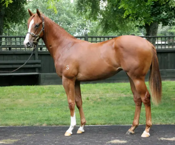 1st dam SYMPATHY, by Show a Heart. Raced once. Half-sister to SPURRED ON, LIVE THEATRE - ASALI(H.K.). This is her third foal. Her second foal is a 2YO. Her first foal is an unraced 3YO. 2nd dam KISSES OF GOLD, by Broad Reach. 2 wins at 2, BATC Sprite 2YO Quality S., 2d QTC M Ryan H. Half-sister to EUREKA JEWEL(dam of SERMON). Dam of 8 foals, 7 to race, 5 winners, inc:- SPURRED ON(Flying Spur). 4 wins from 1300m to 2000m, A$245,540, AJC Frank Packer P., Gr.3, Carbine Club S., L, Chambers Cellars H., STC Tooheys New Night Racing H., 2d AJC Qantas H., Ashby Doble H., 3d AJC Exchange Hotel Balmain 2YO H., Newcastle JC Coca Cola Amatil 2YO Classic P., AJC Silver Saddle Brasserie H., De Bortoli Staff H. LIVE THEATRE - ASALI(H.K.) (King's Theatre). 6 wins from 1600m to 2200m, A$68,720, HK$2,678,500, Geelong RC Derby Trial S., L, MVRC Wedding Expo H., HKJC P&O Challenge Cup H., Churchill H., Guangzhou H., 2d Hong Kong Golf Club Centenary H., HKJC Wong Nai Chung Gap H., 3d HKJC Ladies' Purse H., 4th VRC Imperial Leather S., L. Breech. 5 wins at 1200m in Aust., Malaysia and Singapore, Selangor TC Class 1 H., Singapore TC Panasonic Viera S. Thundering Spur. 3 wins from 1400m to 1600m in Aust. Decant. 2 wins at 1200m, 1250m in Aust. Sneak a Kiss. Placed in Aust. Dam of- Blow a Kiss. 5 wins to 1300m to 2011-12, 2d BRC Skyracing.tv H. 3rd dam IMPOSING ANGEL, by Imposing. 3 wins at 1600m, 2000m, AJC Picture H., 2d AJC Electro H. Dam of 14 foals, 10 to race, 6 winners, inc:- EUREKAJEWEL(Semipalatinsk). 5 wins-2 at 2-from 1100m to 2000m, A$305,235, VRC AV Kewney S., Gr.2, AJC Adrian Knox S., Gr.3, SAJC Walter Brown S.H., L, VATC Schweppes Cup, L, Cendrillon 2YO H., 2d AJC Australian Oaks, Gr.1, MVRC Moonee Valley P., VRC November Rain 2YO H., 4th VRC Byron Moore S., L. Dam of- SERMON(Octagonal). 7 wins-1 at 2-from 1100m to 2500m, A$384,664, Cranbourne Cup, L, BRC Heineken H., MRC Rokk Ebony H., 3d STC Gloaming S., Gr.3, City Tatt's RC Ming Dynasty H., L. EurekaJack. 4 wins from 1400m to 2200m, A$118,550, to 2012-13, BRC Iona College H., 2d BRC Lighting H., Programmed Property Services H. Polar Queen. 2 wins at 1100m, 1200m, VRC Orsay H. Dam of- Encosta Tszyu(Encosta de Lago). 6 wins from 1400m to 2050m, A$223,725, BRC Hardy Brothers H., BTC Tenterfield Saddler P., QTC Optus 2d BRC Peter Gallagher S., L, 3d QTC JF Meynink S., L. Beautiful Sunday. 2 wins at 1200m, HKJC Cheung Sha H., Chevalier Network Solutions H., 2d HKJC Jat Ming H., 3d HKJC Tai Tam P. |