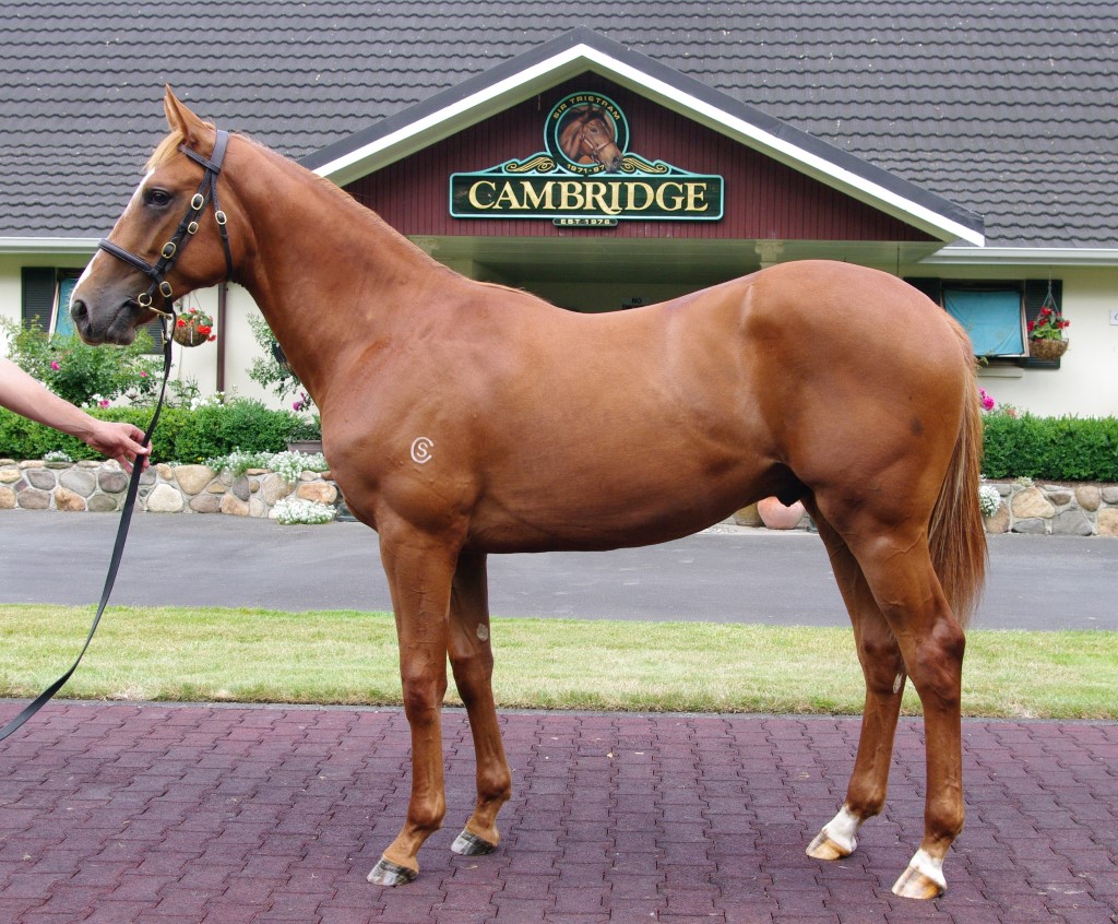 1st dam CARTIER GOLD, by Gold Brose. Unplaced. This is her fifth living foal. Dam of three foals to race, inc:- CHASE ME(g. by Storm Creek). 7 wins from 1400m to 2000m, S$1,006,970, Singapore Derby, Sgp-1, Singapore TC Chairman's Trophy, Sgp-2, Open H., Class 4 H.-3 times, 2d Singapore TC Class 3 H., Class 4 H., 3d Singapore TC Moonbeam Vase, Sgp-3, Patrick Shaw H., Macau Jockey Club Trophy, 4th Singapore TC Stewards' Cup, Sgp-2. 2nd dam NILE LARK, by Niniski. Winner at 2½m in GB. Half-sister to Come to Sea(dam of CADOUDAL), Asmar, Come Gailly (dam of COME SUMMER, BRIGHT BOUQUET). Dam of 8 named foals, 7 to race, 4 winners, inc:- Thirst Inn. 2 wins at 1600m, 3d WRC Tote Pub & Pizza Furnace H. Producer. Al Fatah. 2 wins at 1200m, 1600m, 2d Waikato RC Pencarrowstud.co.nz H. 3rd dam CAMARILLA, by Sayajirao. 2 wins at 1400m, Chantilly Prix de Bonnelles, Longchamp Prix Riviera. Half-sister to Cameline, Canne Ma Mie (dam of CALLISTHENE). Dam of 13 foals, 7 to race, 3 winners, inc:- Come to Sea(Sea Hawk). Winner at 2, 2d Chantilly Prix de Royaumont, Gr.3, 4th Longchamp Prix de Malleret, Gr.3. Dam of- CADOUDAL(Green Dancer). 2 wins at 2000m, 2400m, Longchamp Prix Hocquart, Gr.2, Saint-Cloud Prix Ajax, 2d Longchamp Prix Ganay, Gr.1, Prix d'Harcourt, Gr.2, 3d Longchamp Prix Greffulhe, Gr.2. Sire. Asmar(Prince John). 5 wins, 2d Newbury Stroud Green Hurdle, L. Come Gailly. Placed at 3 in France. Dam of- COME SUMMER(Junius). 14 wins-2 at 2, US$360,237, Churchill DownsClark H., Gr.3, Canterbury Derby, L, Canterbury Fort Snelling S., L. Sire. BRIGHT BOUQUET(Junius). 18 wins, US$247,447, Northlands Park Valleyview H., L, Rio Terrace H., L, Edmonton Distaff H., L. Producer. Mystic Moves. Placed at 3 in U.S.A. Dam of- QUICK TIP(Unaccounted For). 9 wins at 8½f, 9f, US$676,990, Churchill Downs Cardinal H., Gr.3, Tampa Bay Florida Oaks, Gr.3. Dam of- AGENT DI NOZZO(Ghostzapper). 8 wins from 6f to 8½f, US$444,846, to 2015, Indiana Downs Golden Bear S., L. Meadow Mystic. Unraced. Dam of- GLORIOUS MISS(Honour and Glory). 4 wins-2 at 2-at 6f, 6½f, Turfway Queen S., L, 3d Gulfstream Old Hat S., L. La Luminosa. Unraced. Dam of- ON THE FRITZ(Mahogany Hall). 5 wins at 5½f, US$237,407, Keeneland Clark County S., L, 3d Keeneland Stravinsky S., L. Camomilla. Unraced. Grandam of- STARKEY(Risk Me). 9 wins-4 at 2-to 1400m in France and Germany,Longchamp Prix d'Arenberg, Gr.3, Baden-Baden Scherping Rennen, L. |