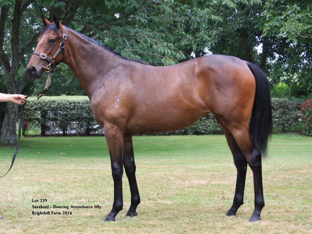 1st dam Dancing Attendance, by Danehill Dancer. 4 wins at 1600m, 1900m, NZ$36,350, A$80,030, ATC Ascot Club H., Chargrill Charlie's H., Georges River H., Matamata RC New World H., 2d WRC Trentham S., Gr.3, ATC Tabsportsbet H., 3d AJC Cranebrook P., ATC Rydges H., 4th Matamata RC Kaimai S., L. Half-sister to PRECEDENCE, The Raj. This is her first foal. 2nd dam KOWTOW, by Shadeed. Raced once. Half-sister to Upstage (dam of TAVISTOCK). Dam of 9 foals, 8 to race, 7 winners, inc:- PRECEDENCE(Zabeel). 10 wins from 1600m to 2600m, A$1,952,280, Moonee Valley Gold Cup, Gr.2-twice, VRC Queen Elizabeth S., Gr.3, BRC Premier's Cup, Gr.3, MVRC JRA Cup, Gr.3, STC NE Manion Cup, L, 2d MRC St George S., Gr.2, BRC Premier's Cup, Gr.3, ATC NE Manion Cup, L, VRC St Leger, L, 3d MRC Herbert Power S., Gr.2, Zipping Classic, Gr.2, GCTC AD Hollindale S., Gr.2, 4th VRC Australian Cup, Gr.1, MVRC Drake International Cup, Gr.2, Dato' Tan Chin Nam S., Gr.2. The Raj(Grosvenor). 4 wins from 1200m to 1600m, NZ$93,175, CJC New Zealand Horse Shoe Company H., 2d Manawatu Classic, Gr.3, Canterbury Gold Cup, Gr.3, North Canterbury RC Canterbury S., L, 3d New Zealand Two Thousand Guineas, Gr.1, Amberley Cup. Dancing Attendance(Danehill Dancer). 4 wins. See above. Amherst. 3 wins from 1300m to 2100m, WATC Westspeed Stayers' Bonus H., 2d WATC Call TAB to Bet 132 369 H., 3d WATC Perthracing.com.au H. Oakdale Royal. 4 wins from 1600m to 2400m, A$113,530, to 2014-15 in Aust. 3rd dam PEDESTAL, by High Line. Raced once. Half-sister to JUPITER ISLAND, PRECOCIOUS, PUSHY(dam of BLUEBOOK, MYSELF, FIRST), KRAYYAN, Picnicing, Putupon (dam of DANCEABOUT, POLE POSITION), Mrs Moonlight (dam of SOVIET FLASH). Dam of 9 foals, all raced, 4 winners, inc:- Diamond Look. 3 wins from 1400m to 2200m in GB, Bahrain and U.A.E, Nad al Sheba Derrinstown Stud Intikhab H., 3d Newmarket William Hill S.H. Worship. Placed at 3 in GB. Dam of- Bible Class. Winner at 1200m, 2d Avondale JC Auckland Glass H. Dam of- SLICE OF CLASS(Guillotine). 4 wins at 1200m, 1400m, NZ$105,886, to 2015-16, CJC Canterbury Breeders S., Gr.3, 4th WRC Thorndon Mile, Gr.1, Desert Gold S., Gr.3, CJC Warstep S., L. Upstage. Unplaced. Dam of- TAVISTOCK(Montjeu). Champion Sprinter in NZ on 2009-10. 6 wins-1 at 2-from 1100m to 1600m, NZ$333,025, A$286,375, Waikato Draught Sprint, Gr.1, Hawke's Bay Mudgway Partsworld S., Gr.1, VRC Blamey S., Gr.2, 2d WRC Thorndon Mile, Gr.1, MRC Vain S., L. Sire. |